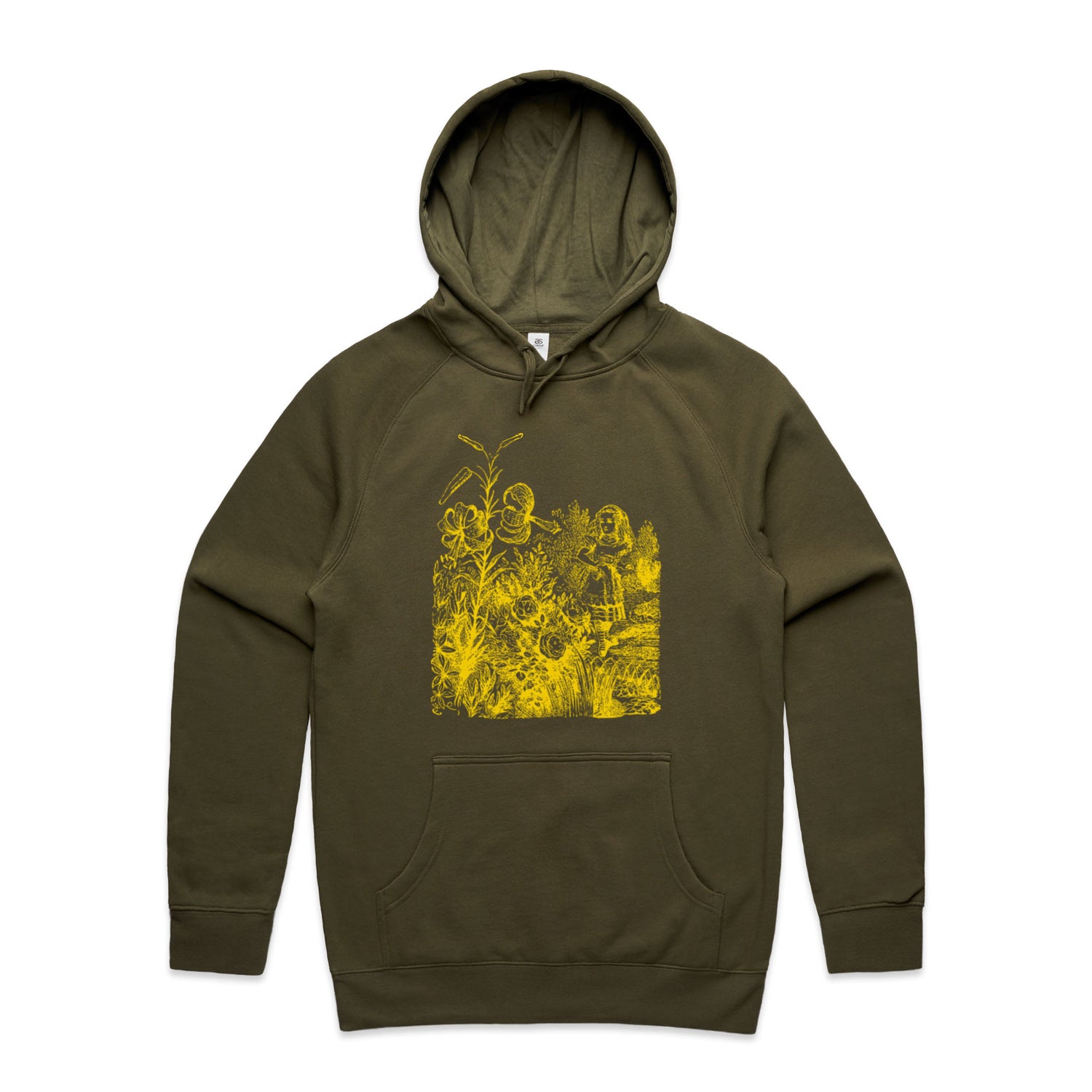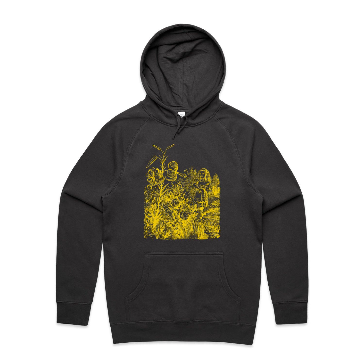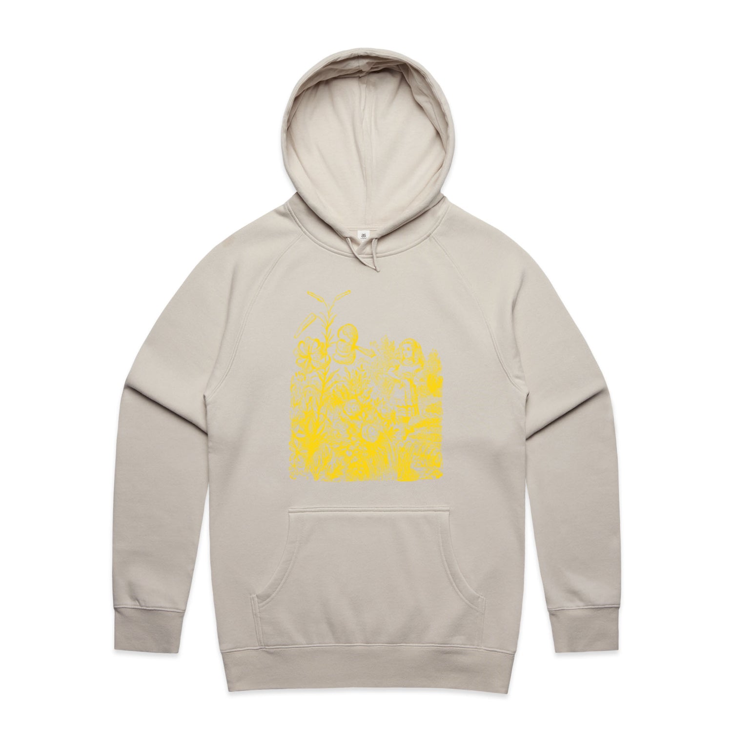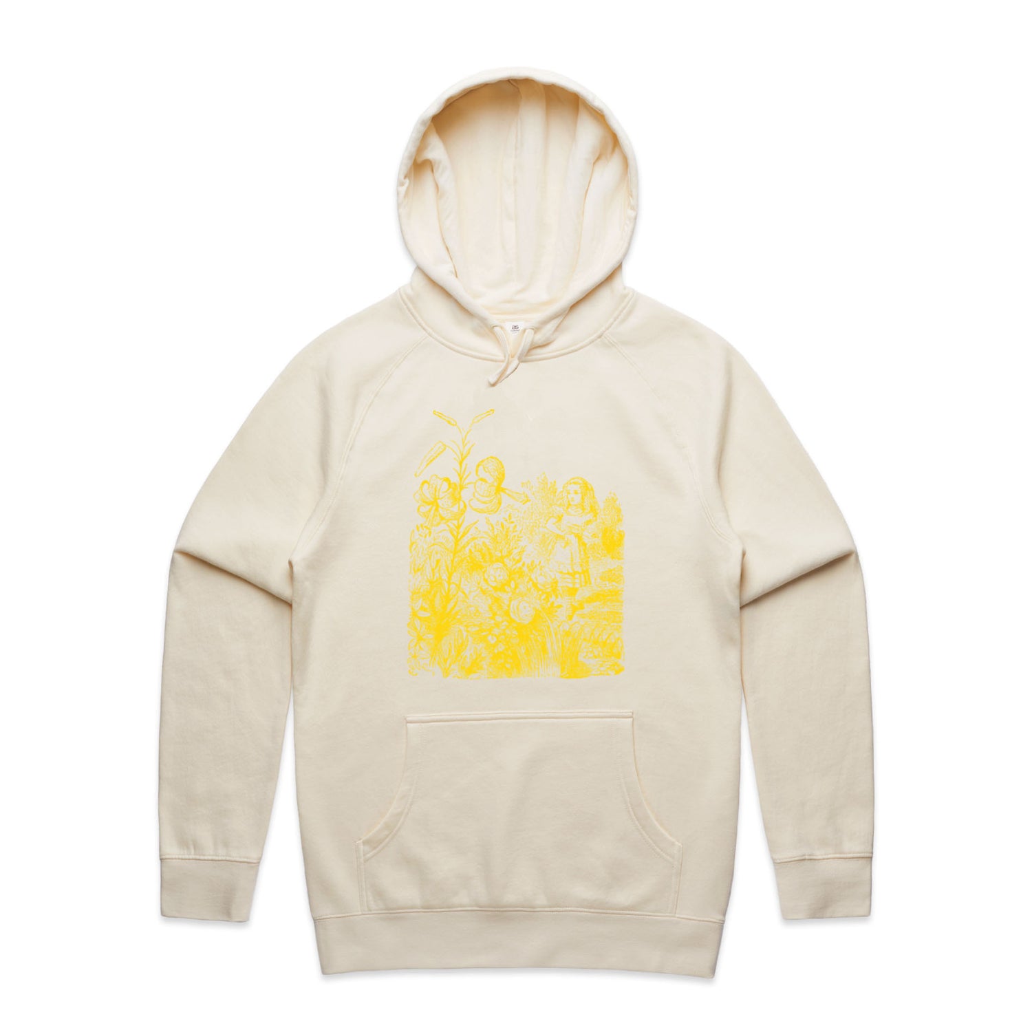 The Hoodies Alice in Wonderland - Garden of Live Flowers – Men's Hooded Sweatshirt is a high-quality men's hooded sweatshirt, printed with yellow ink on the trusted AS Colour Supply Hood 5101. With a regular fit and mid-weight feel, it's crafted from a premium blend of 80% cotton and 20% polyester anti-pill fleece, making it a durable and comfortable staple for any wardrobe. The pullover design features raglan sleeves, a lined hood with tonal drawcord, ribbed sleeve cuffs, and a roomy kangaroo pocket — all designed to keep you warm while looking effortlessly sharp.
