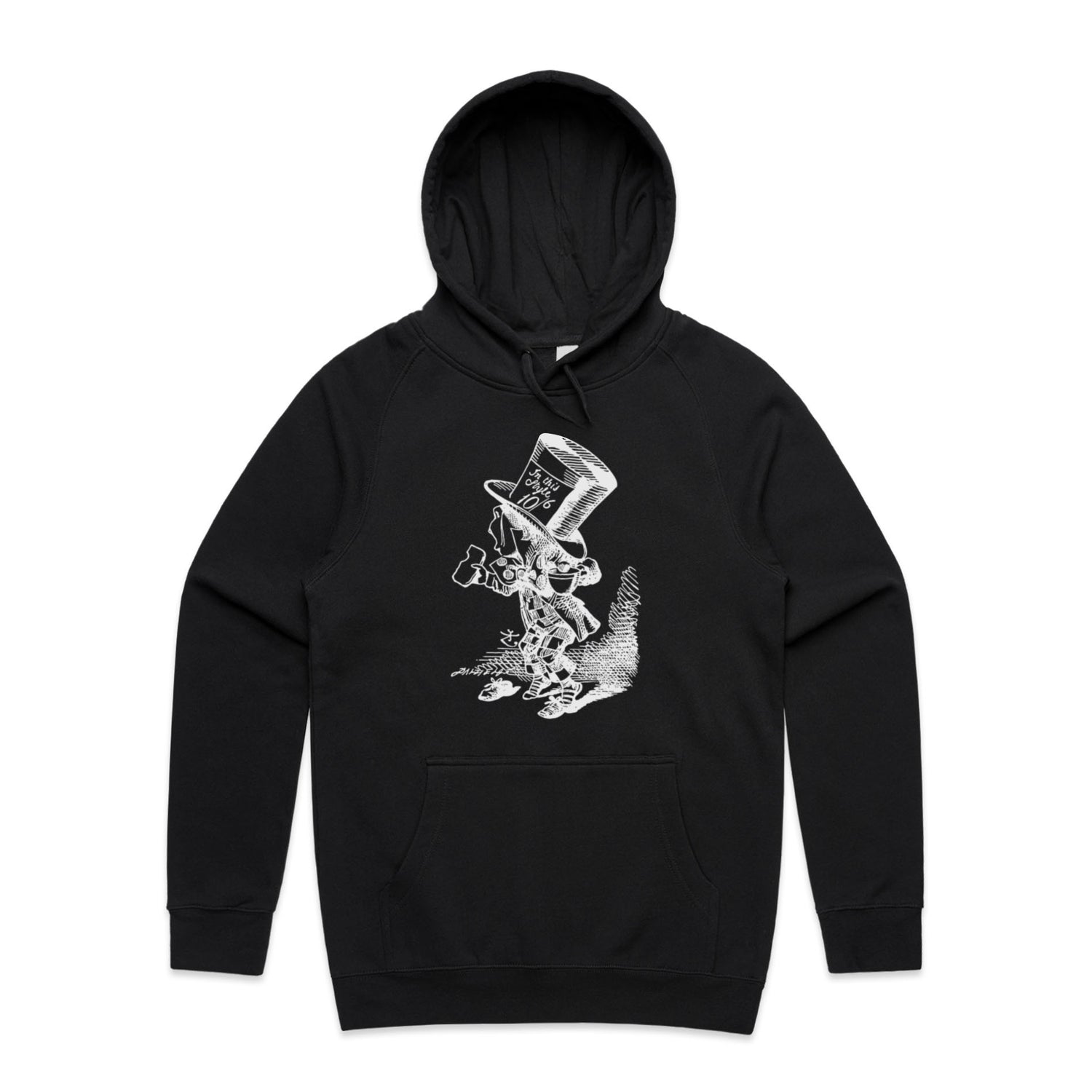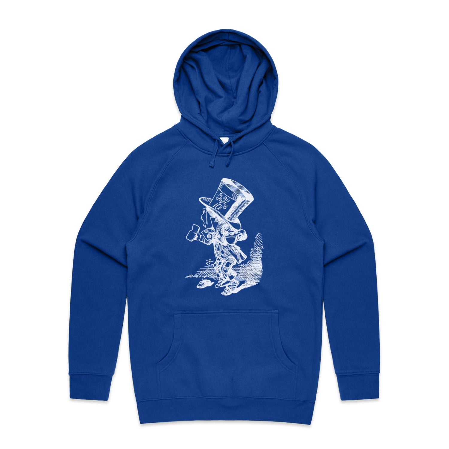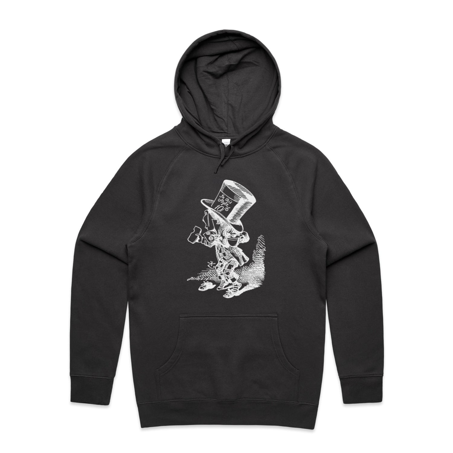 The Hoodies Alice in Wonderland - Madhatter – Men's Hooded Sweatshirt is a high-quality men's hooded sweatshirt, printed with white ink on the trusted AS Colour Supply Hood 5101. With a regular fit and mid-weight feel, it's crafted from a premium blend of 80% cotton and 20% polyester anti-pill fleece, making it a durable and comfortable staple for any wardrobe. The pullover design features raglan sleeves, a lined hood with tonal drawcord, ribbed sleeve cuffs, and a roomy kangaroo pocket — all designed to keep you warm while looking effortlessly sharp.