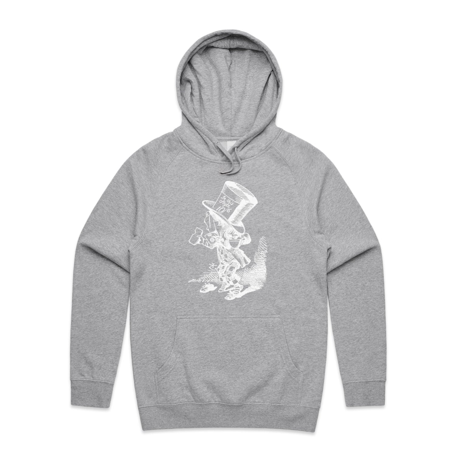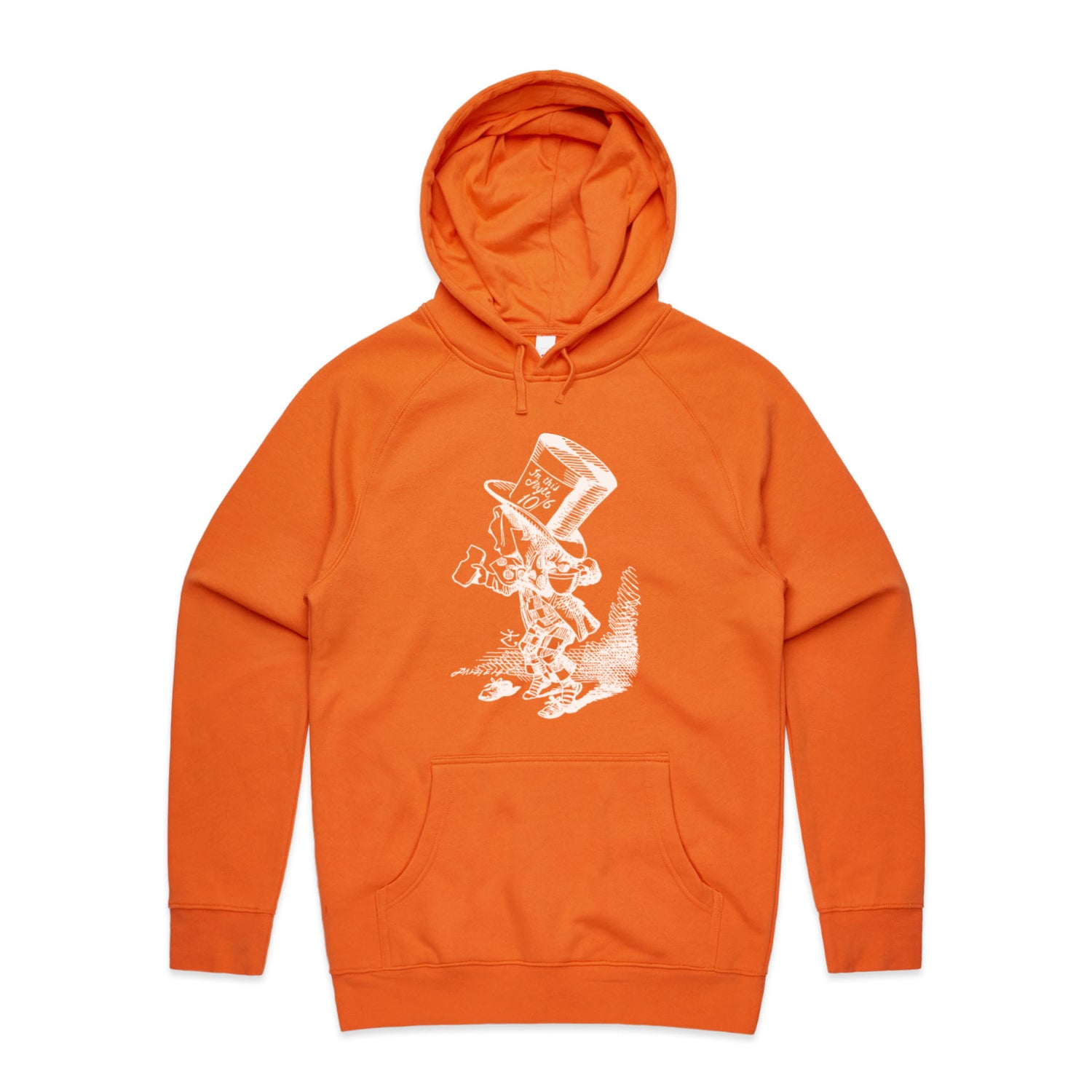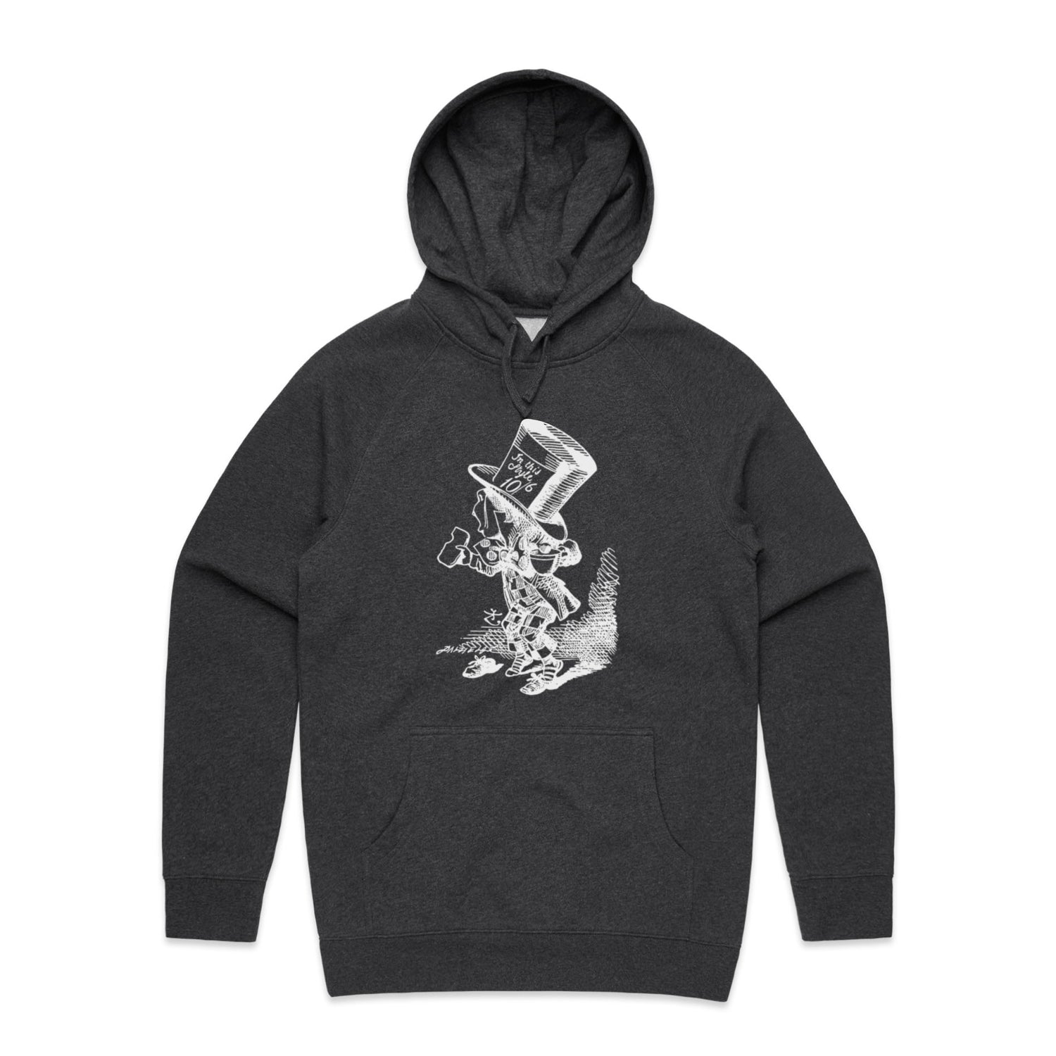The Hoodies Alice in Wonderland - Madhatter – Men's Hooded Sweatshirt is a high-quality men's hooded sweatshirt, printed with white ink on the trusted AS Colour Supply Hood 5101. With a regular fit and mid-weight feel, it's crafted from a premium blend of 80% cotton and 20% polyester anti-pill fleece, making it a durable and comfortable staple for any wardrobe. The pullover design features raglan sleeves, a lined hood with tonal drawcord, ribbed sleeve cuffs, and a roomy kangaroo pocket — all designed to keep you warm while looking effortlessly sharp.