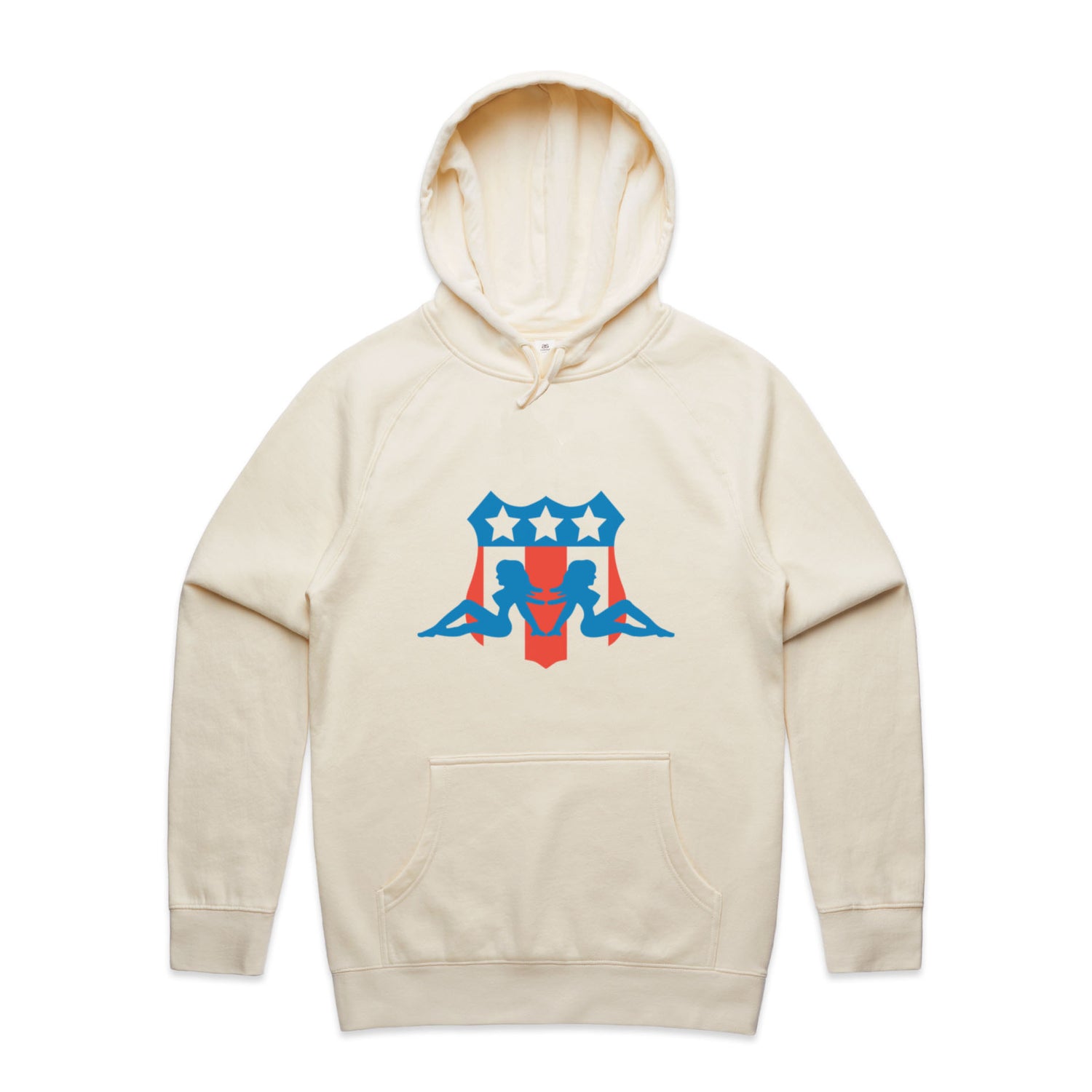 The Hoodies American Mudflaps – Men's Hooded Sweatshirt is a high-quality men's hooded sweatshirt, printed with multicoloured ink on the trusted AS Colour Supply Hood 5101. With a regular fit and mid-weight feel, it's crafted from a premium blend of 80% cotton and 20% polyester anti-pill fleece, making it a durable and comfortable staple for any wardrobe. The pullover design features raglan sleeves, a lined hood with tonal drawcord, ribbed sleeve cuffs, and a roomy kangaroo pocket — all designed to keep you warm while looking effortlessly sharp.