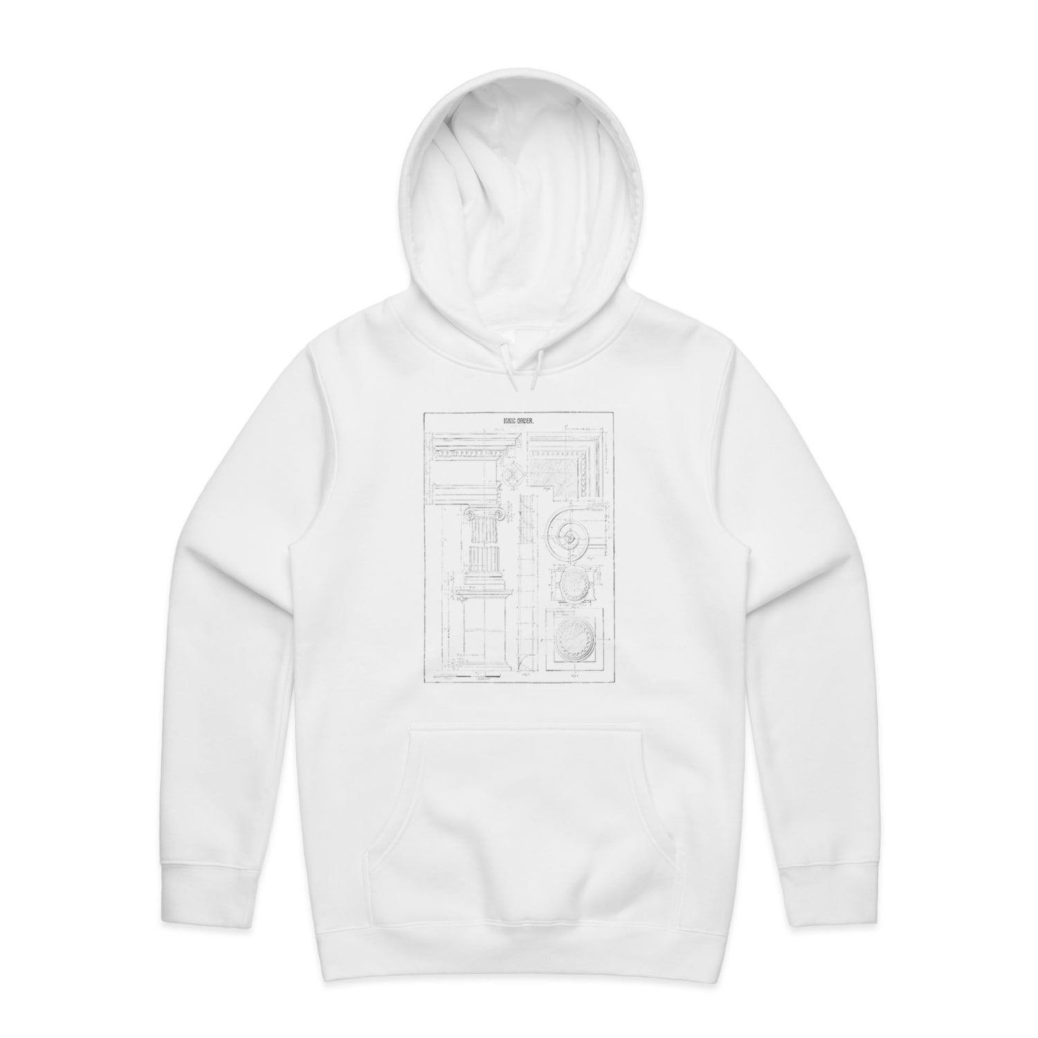 Unleash your inner architect with TheHoodie's Ionic Order masterpiece! This standout unisex hoodie is more than just an ordinary pullover—it's a celebration of iconic design and print perfection. Rocking a slick black print, this hoodie is your ticket to timeless coolness without breaking a sweat. Whether you're strutting down the city streets or chilling at your local cafe, this bad boy's got you covered with its regular fit and oh-so-comfy mid-heavy weight. Featuring a classic kangaroo pocket to stash your essentials and a lined hood for extra warmth, this eco-friendly piece brings both style and sustainability to the table. Pull it over, get on the move, and let the architectural vibes take you places!