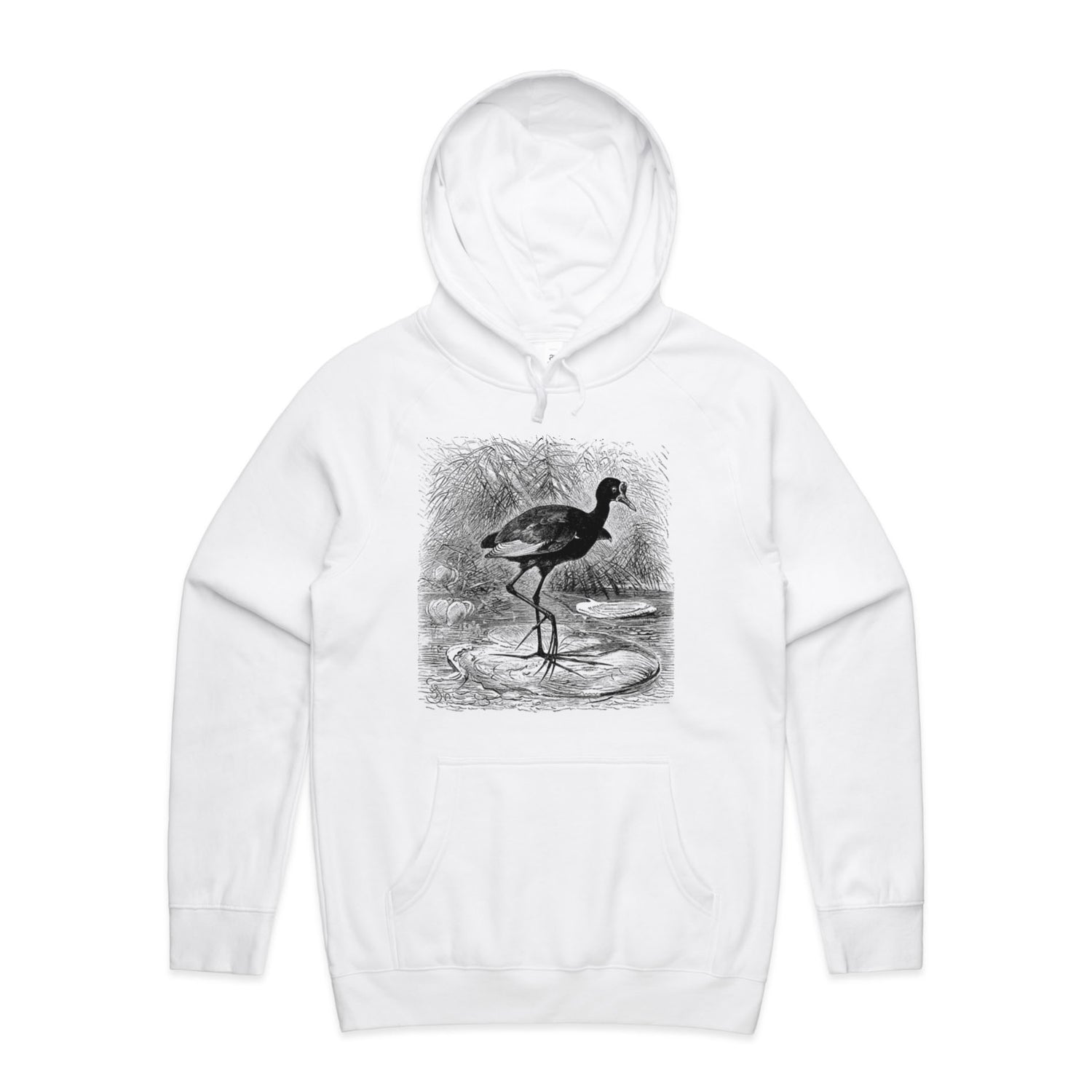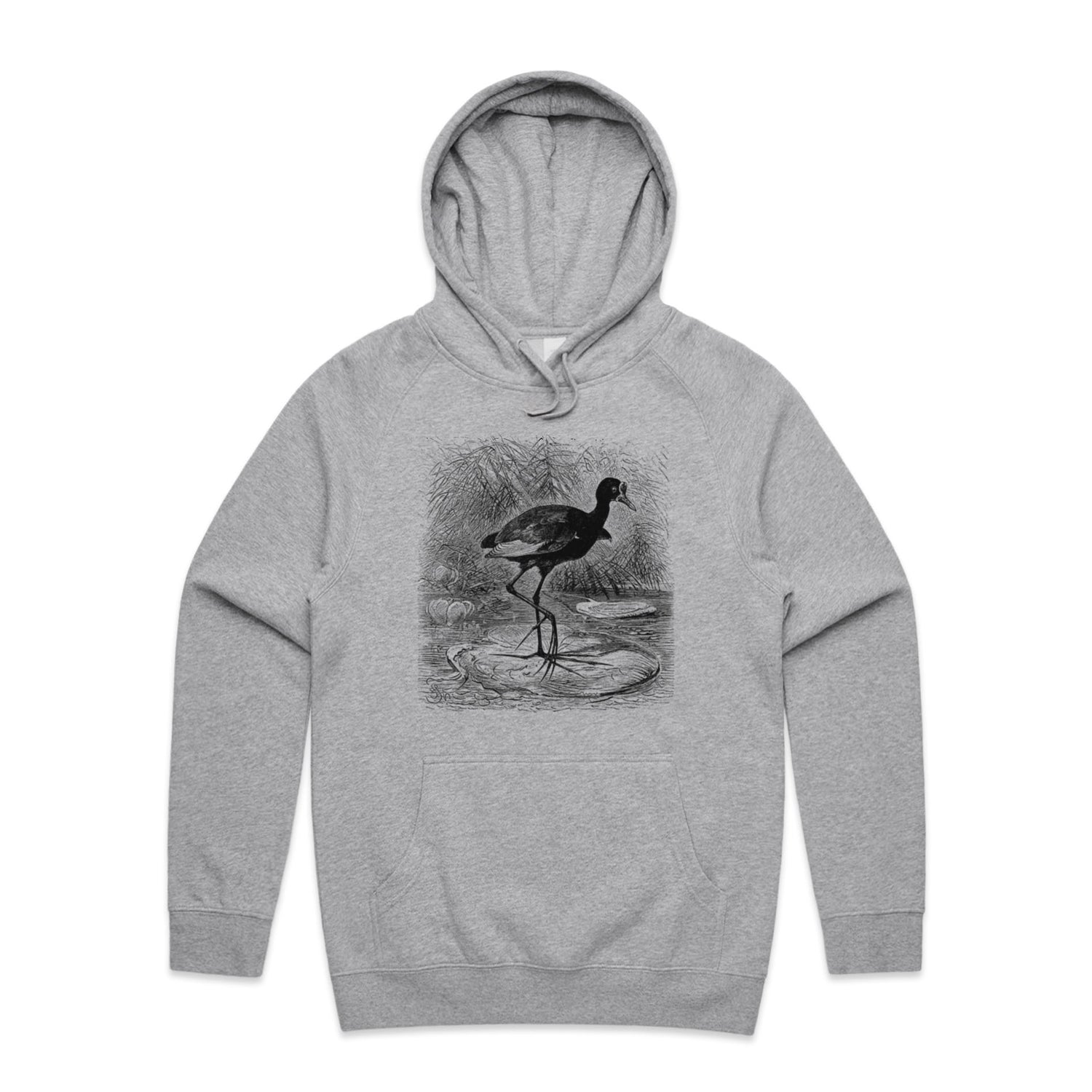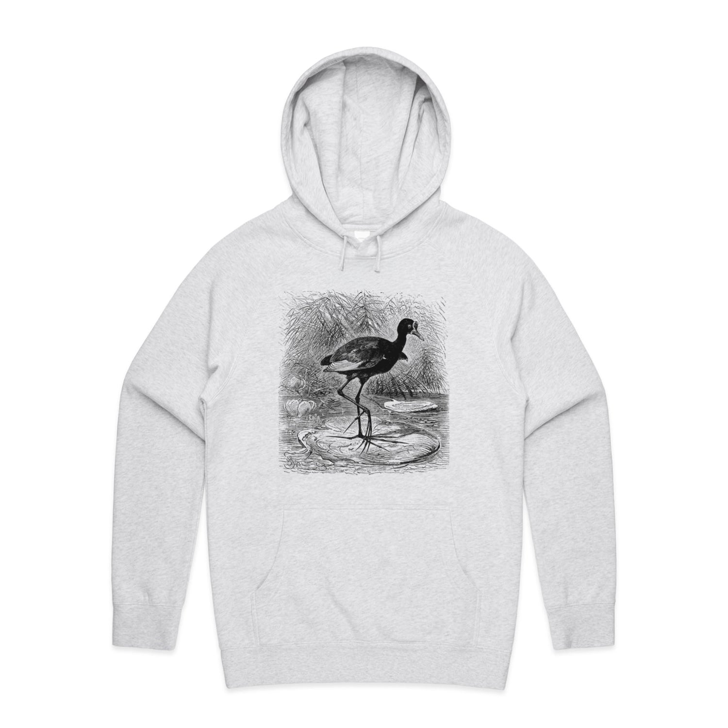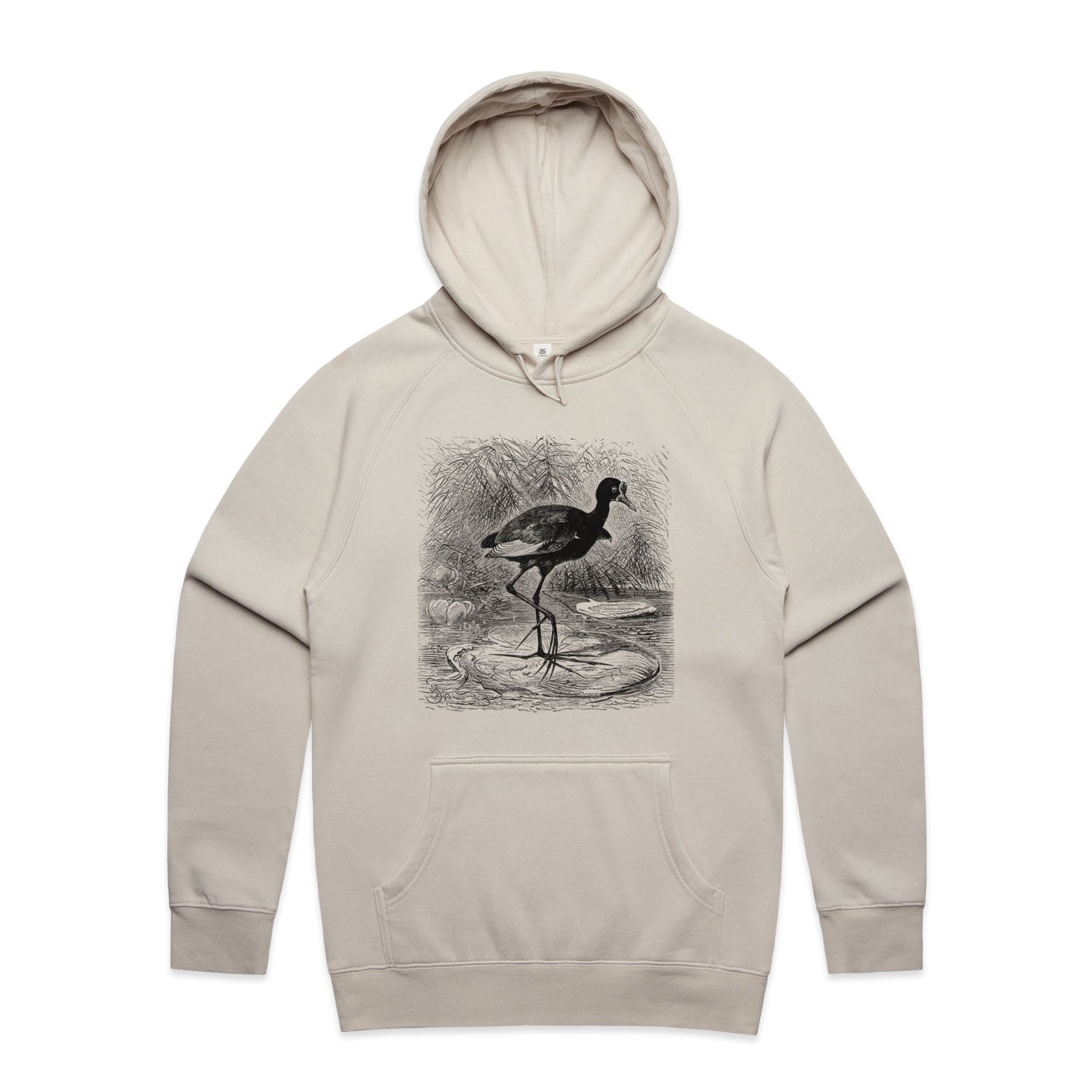The Hoodies Water Lily Bird – Men's Hooded Sweatshirt is a high-quality men's hooded sweatshirt, printed with black ink on the trusted AS Colour Supply Hood 5101. With a regular fit and mid-weight feel, it's crafted from a premium blend of 80% cotton and 20% polyester anti-pill fleece, making it a durable and comfortable staple for any wardrobe. The pullover design features raglan sleeves, a lined hood with tonal drawcord, ribbed sleeve cuffs, and a roomy kangaroo pocket — all designed to keep you warm while looking effortlessly sharp.