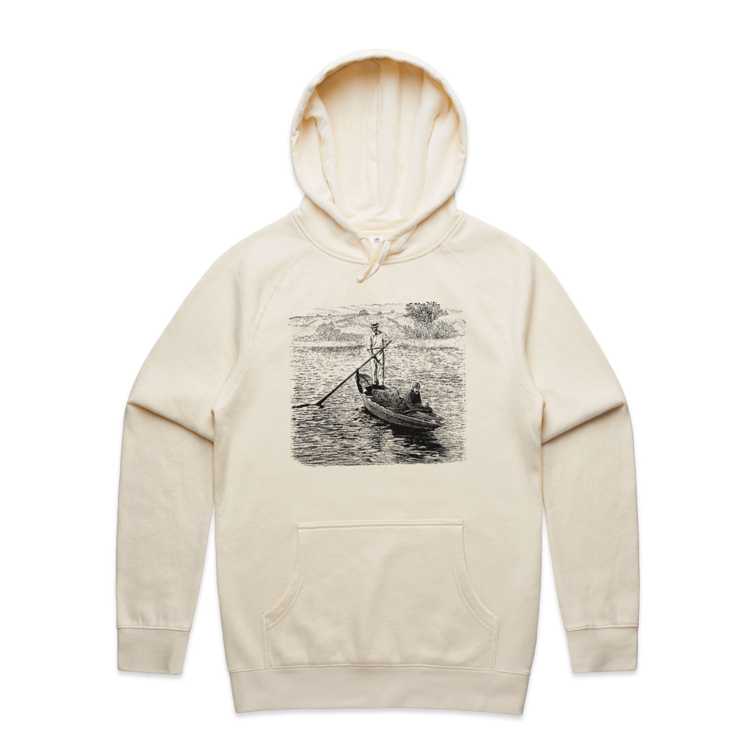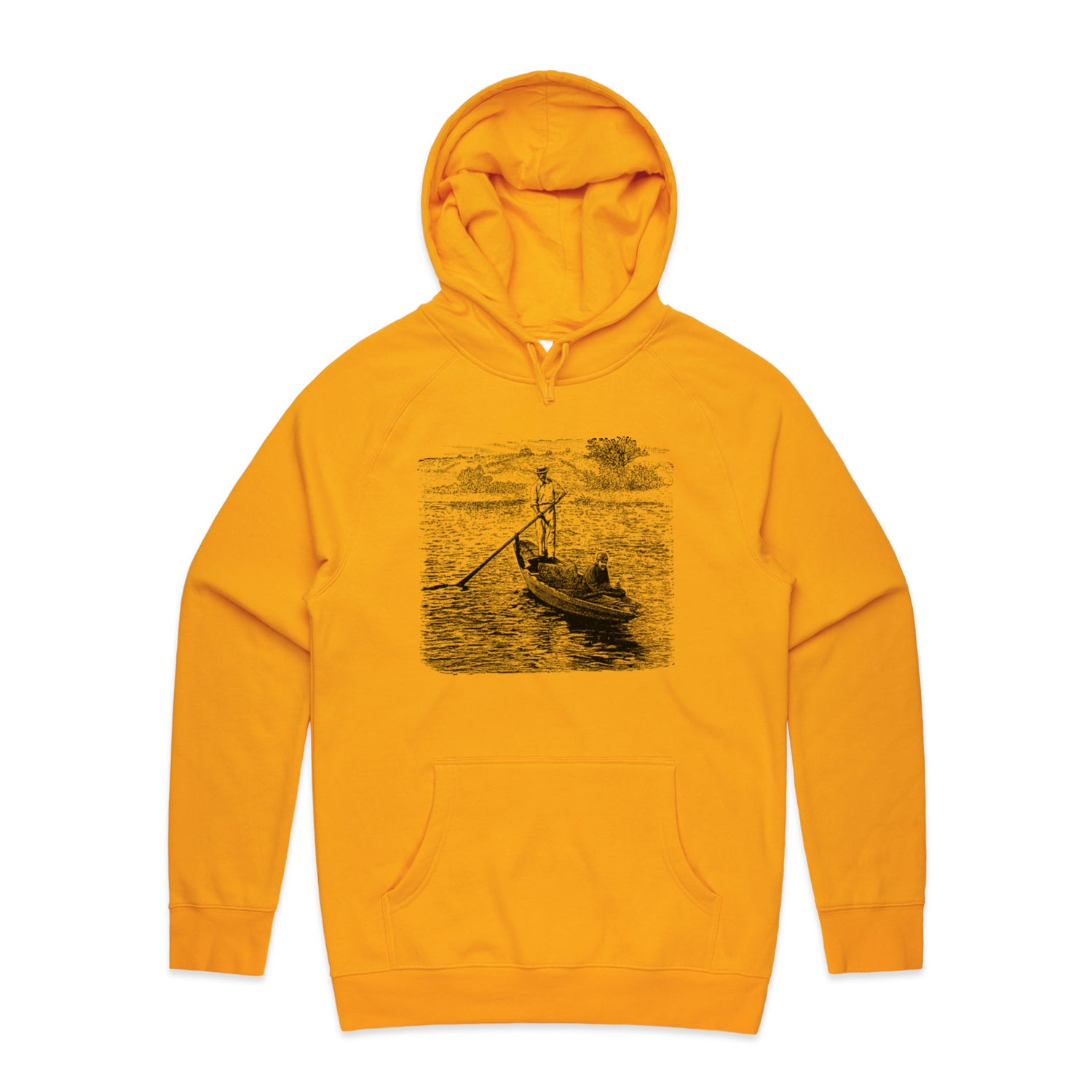 The Hoodies River Gondola – Men's Hooded Sweatshirt is a high-quality men's hooded sweatshirt, printed with black ink on the trusted AS Colour Supply Hood 5101. With a regular fit and mid-weight feel, it's crafted from a premium blend of 80% cotton and 20% polyester anti-pill fleece, making it a durable and comfortable staple for any wardrobe. The pullover design features raglan sleeves, a lined hood with tonal drawcord, ribbed sleeve cuffs, and a roomy kangaroo pocket — all designed to keep you warm while looking effortlessly sharp.