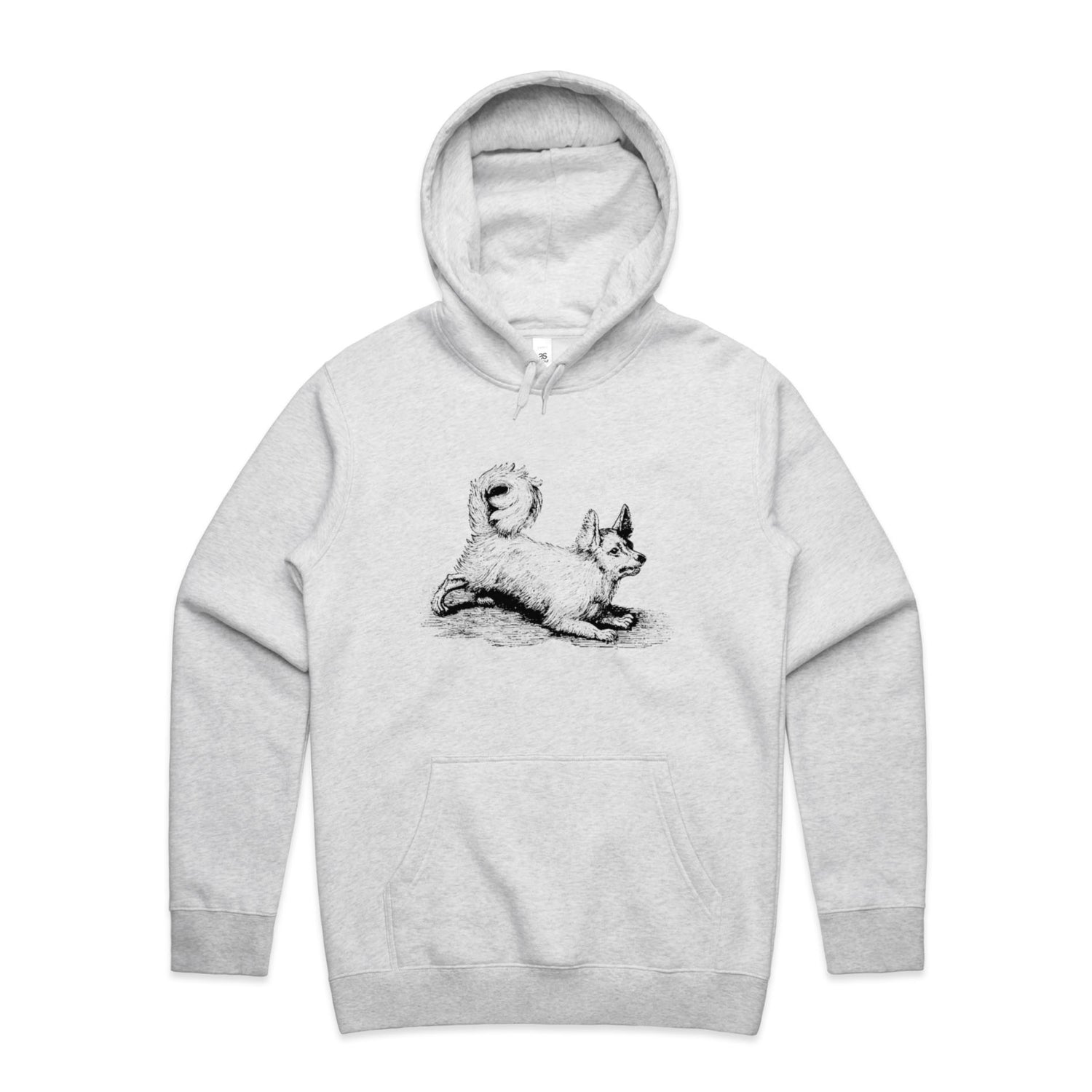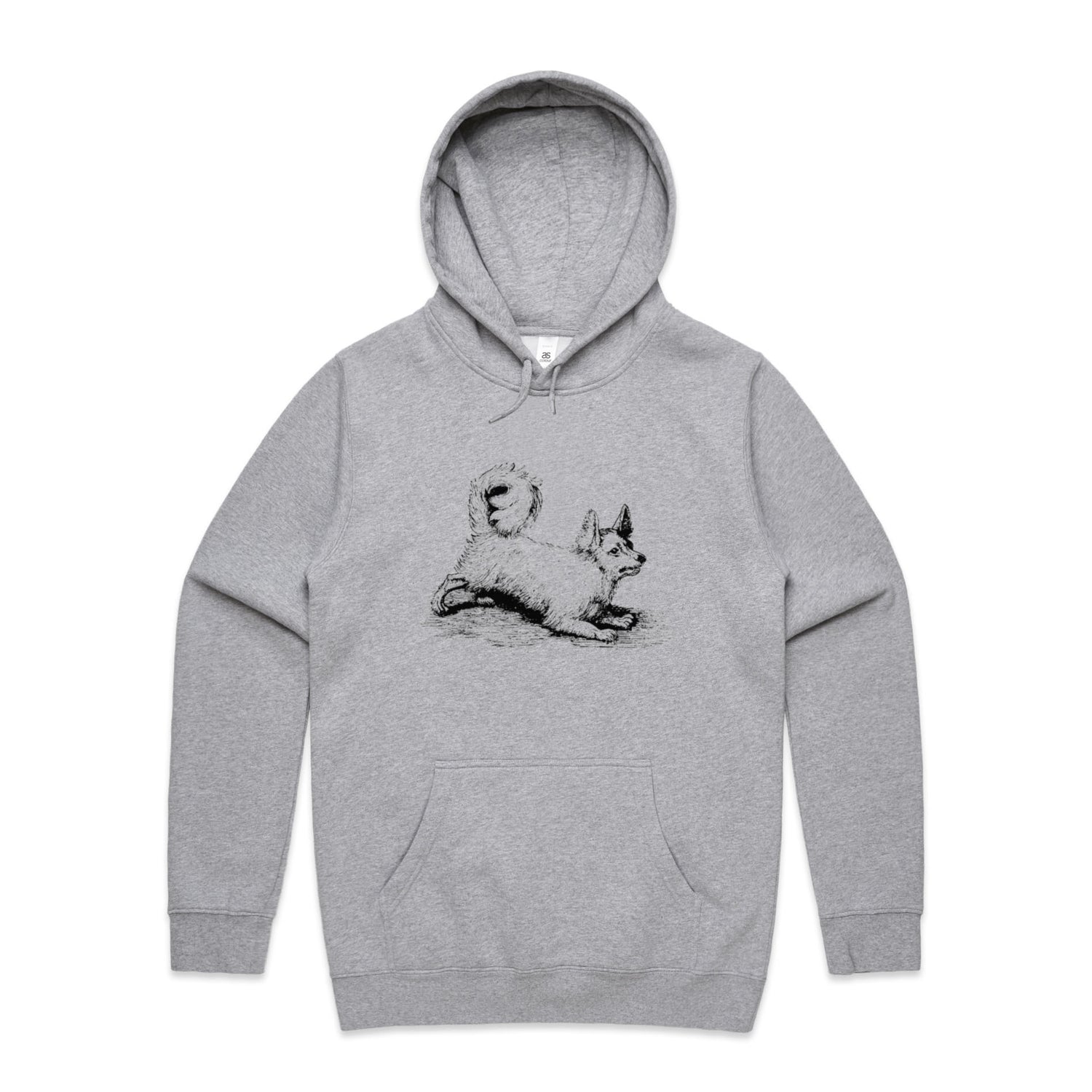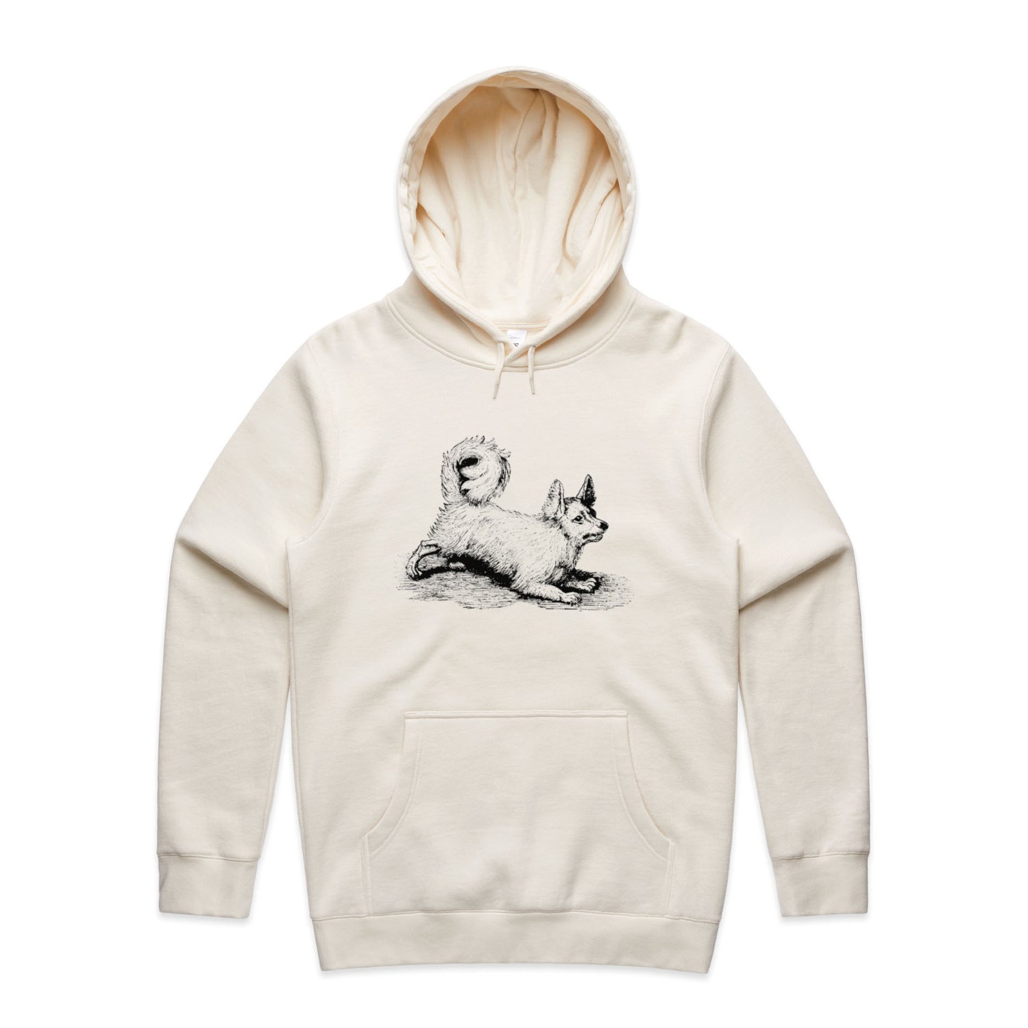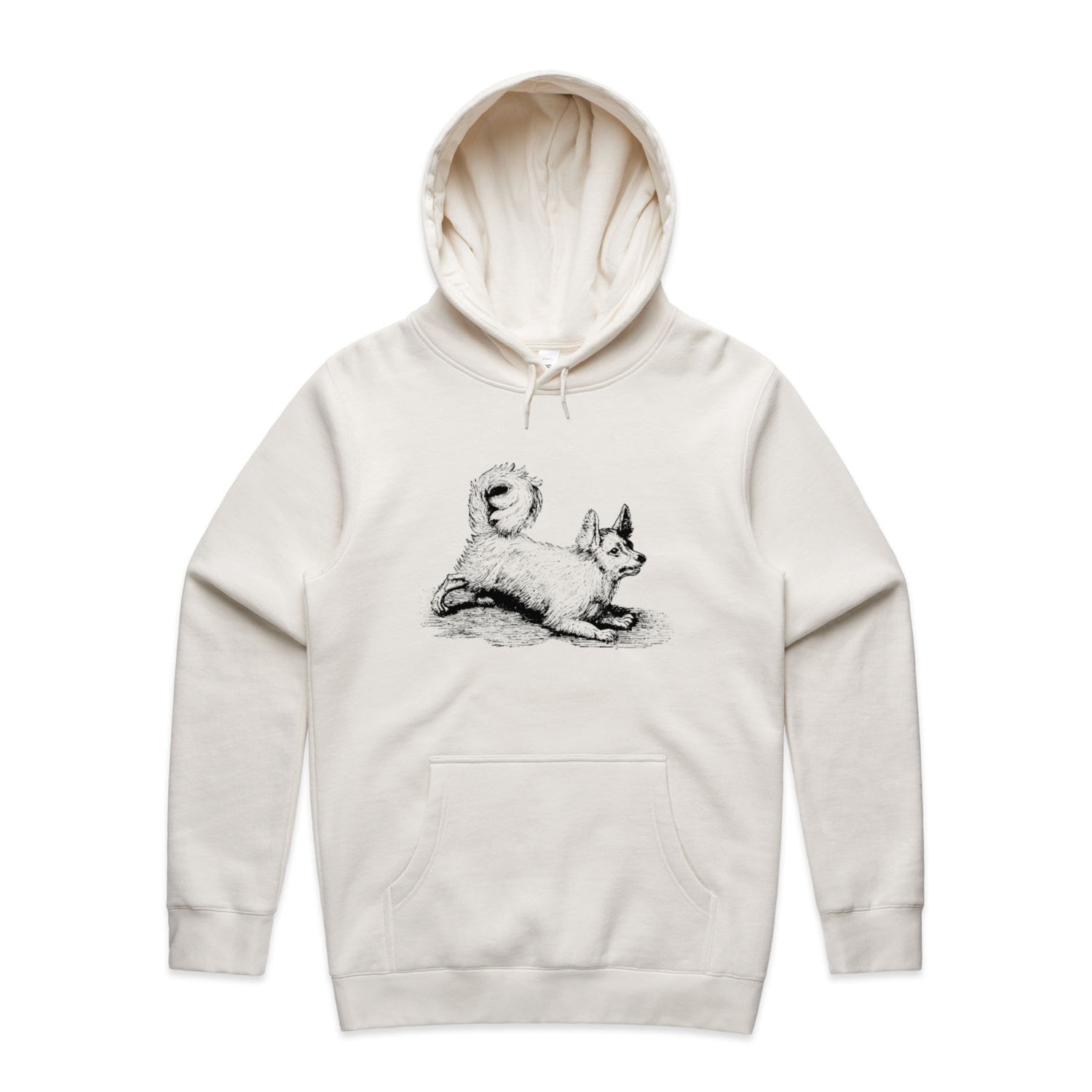 G'day legends, ready to add some canine coolness to your wardrobe? Meet TheHoodie's Playing Puppy – Unisex Hooded Sweatshirt in sleek black. This is no ordinary hoodie, it’s a fair dinkum slice of doggo heaven, complete with a playful puppy print that'll have you howling with joy – all in stunning black ink to match your wild side. Crafted from a comfy and eco-savvy cotton/poly blend, this mid-heavy weight beaut brings all the classic hoodie vibes with a pullover hood and generous kangaroo pocket for stashing your treats... or phone! Perfect for any paw-sessed pooch lover looking to stay cozy and stylish, from arvo dog walks to late-night snack runs. Slip it on, hit the streets, and let your playful pup spirit run free!