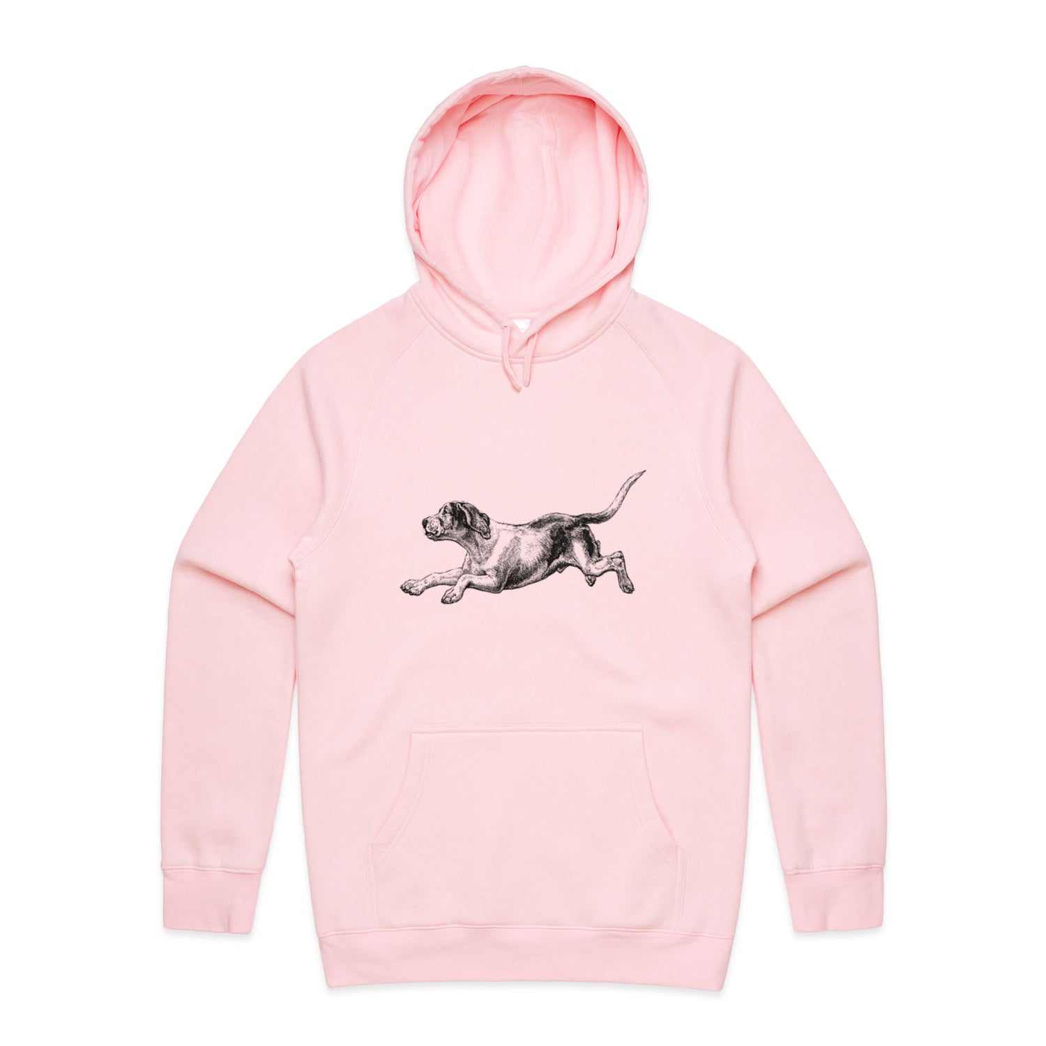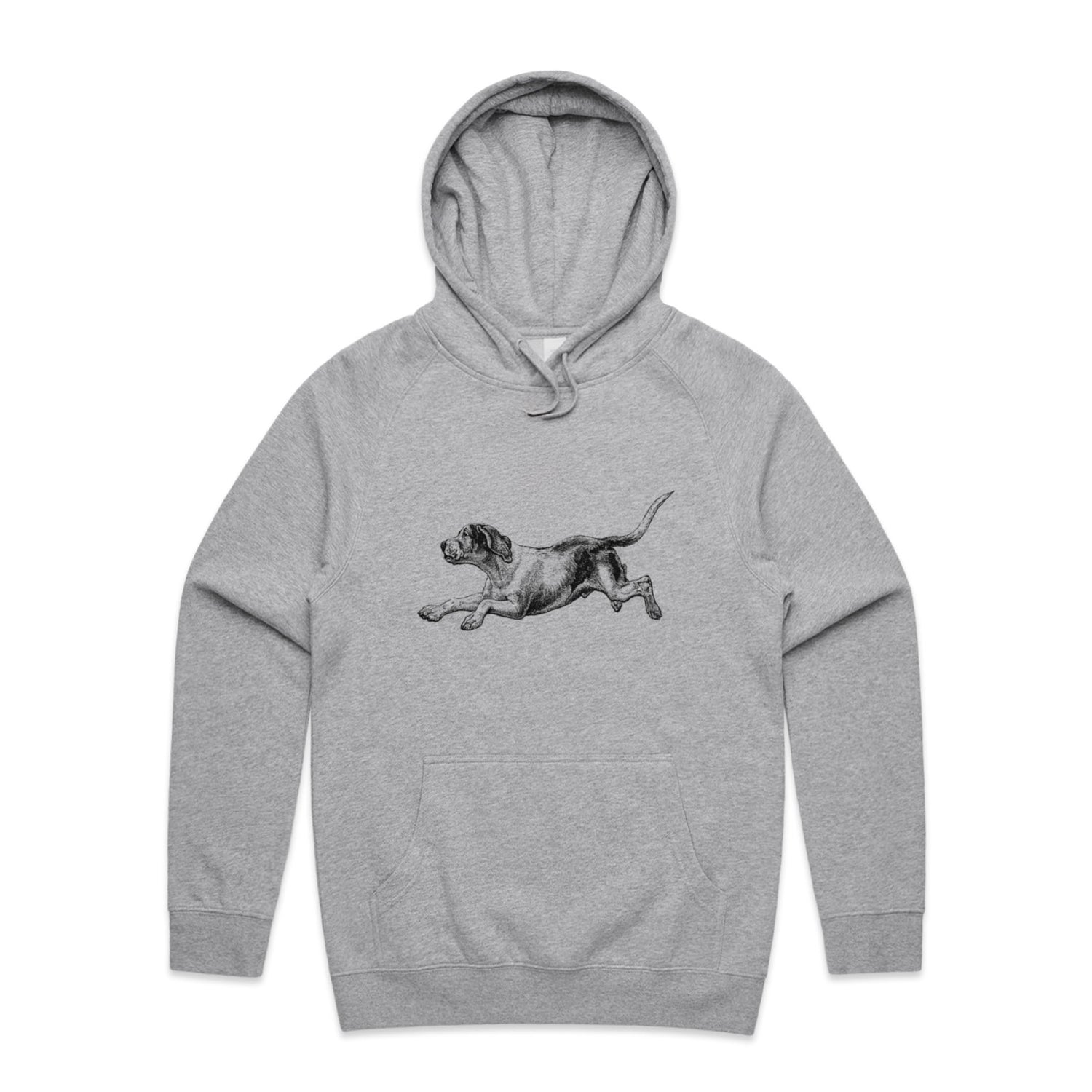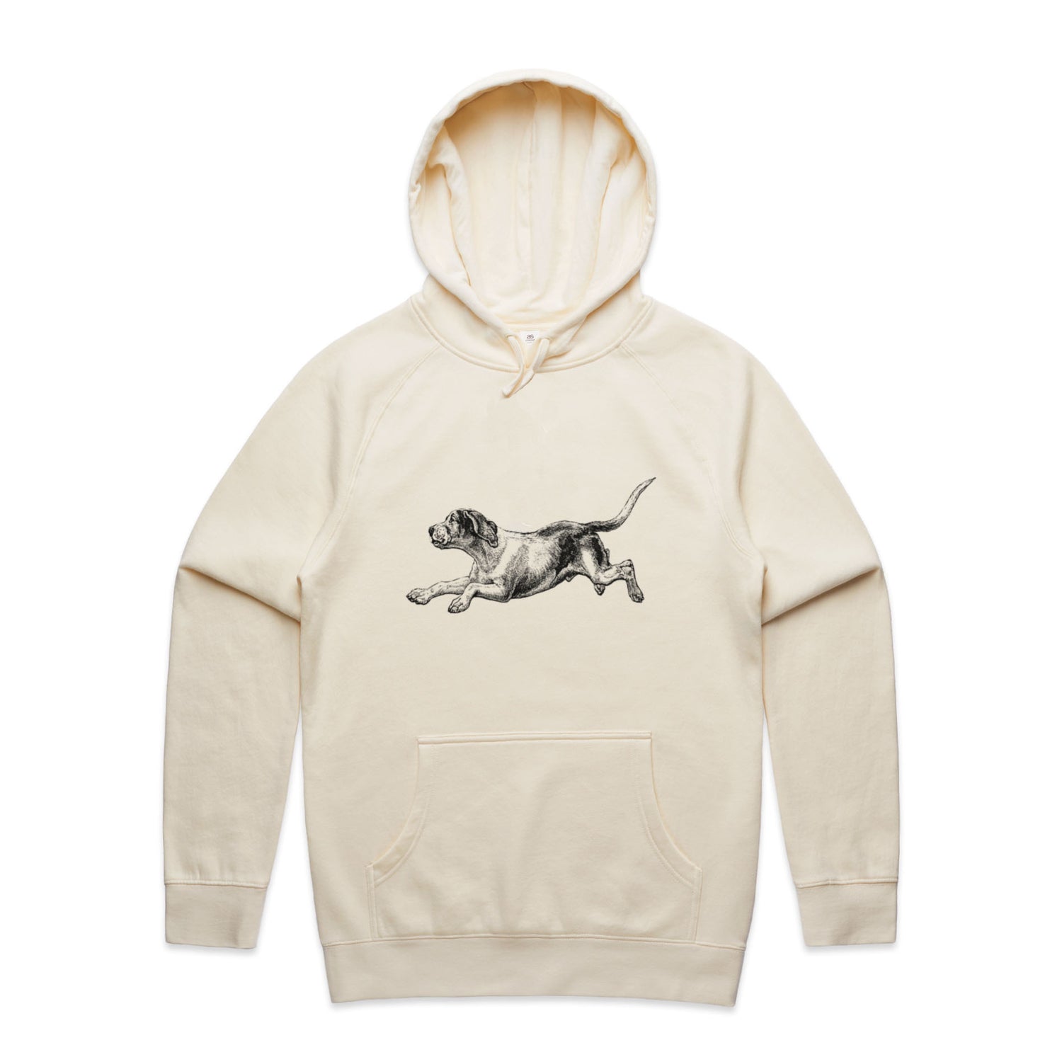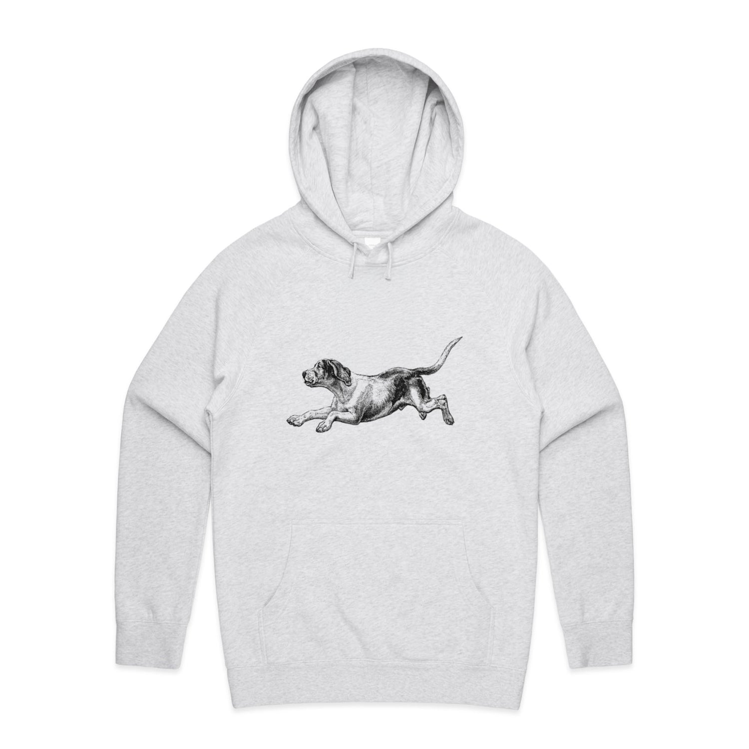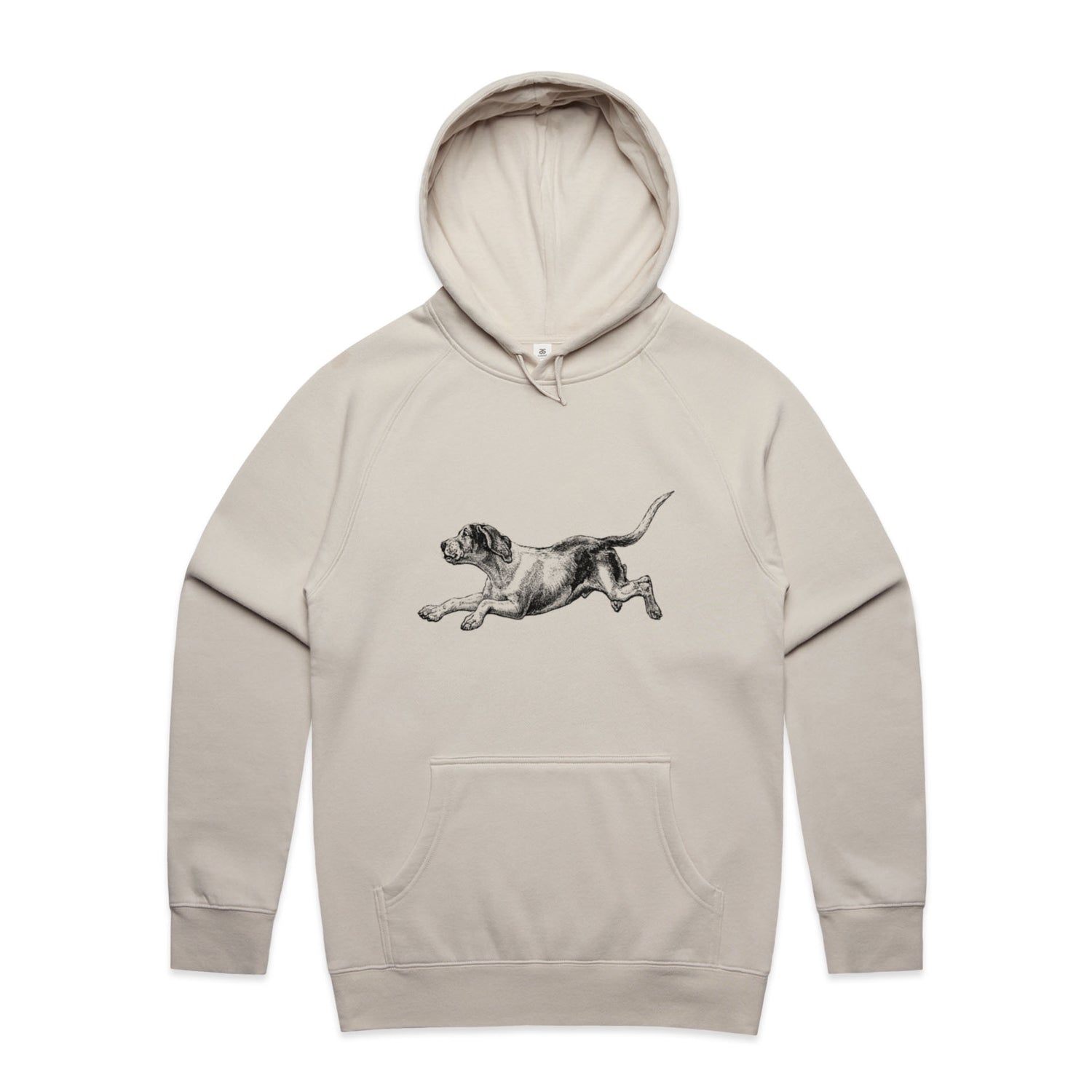 The Hoodies Running Hound – Men's Hooded Sweatshirt is a high-quality men's hooded sweatshirt, printed with black ink on the trusted AS Colour Supply Hood 5101. With a regular fit and mid-weight feel, it's crafted from a premium blend of 80% cotton and 20% polyester anti-pill fleece, making it a durable and comfortable staple for any wardrobe. The pullover design features raglan sleeves, a lined hood with tonal drawcord, ribbed sleeve cuffs, and a roomy kangaroo pocket — all designed to keep you warm while looking effortlessly sharp.