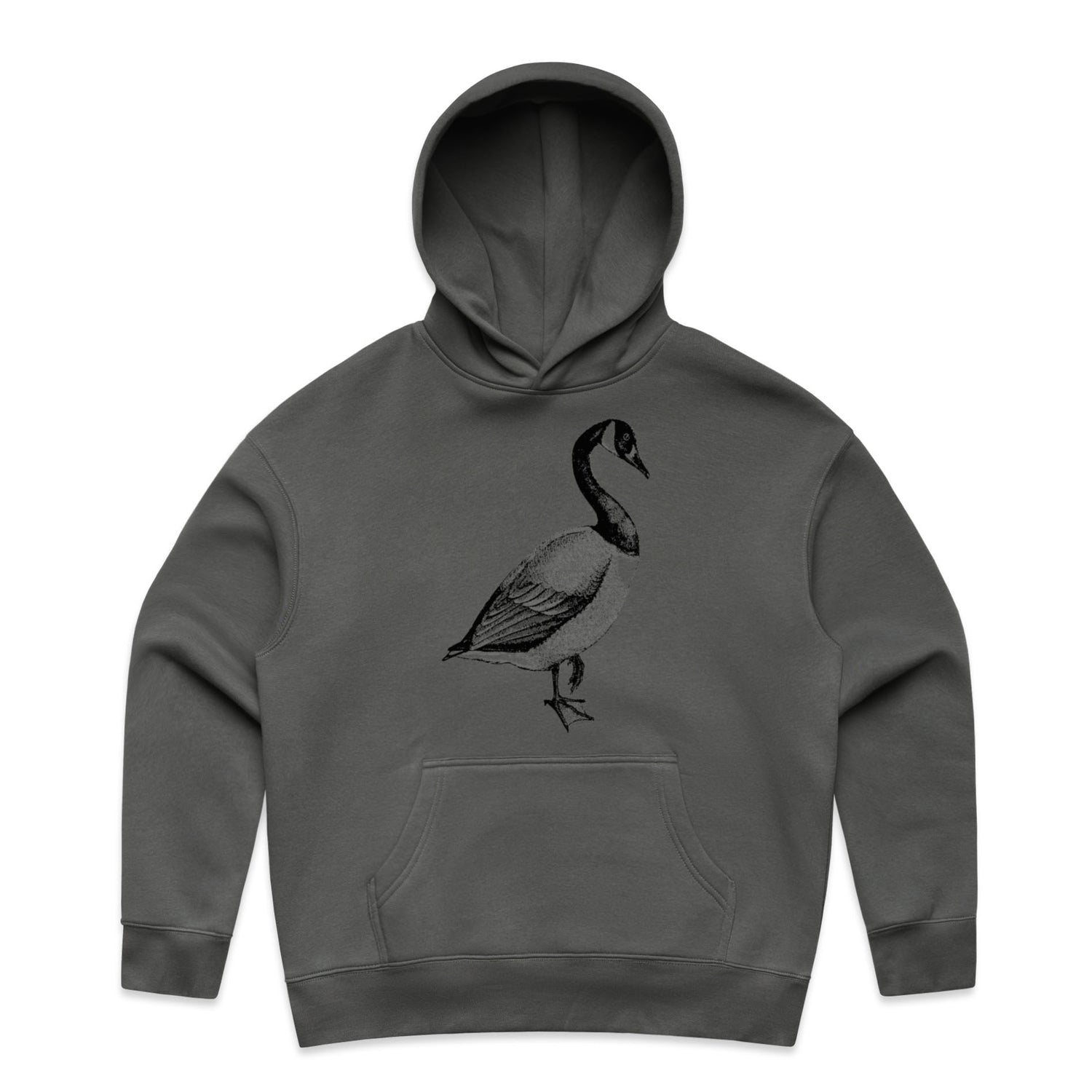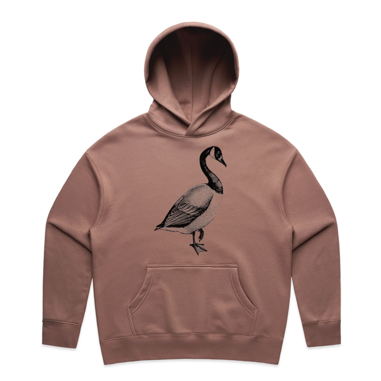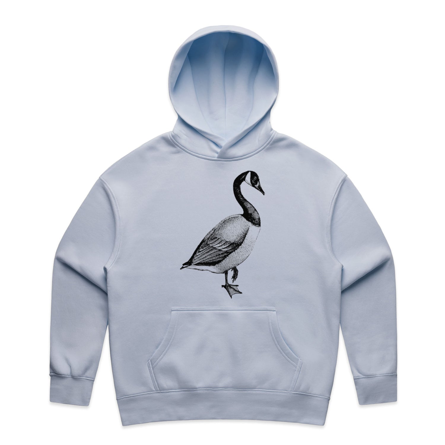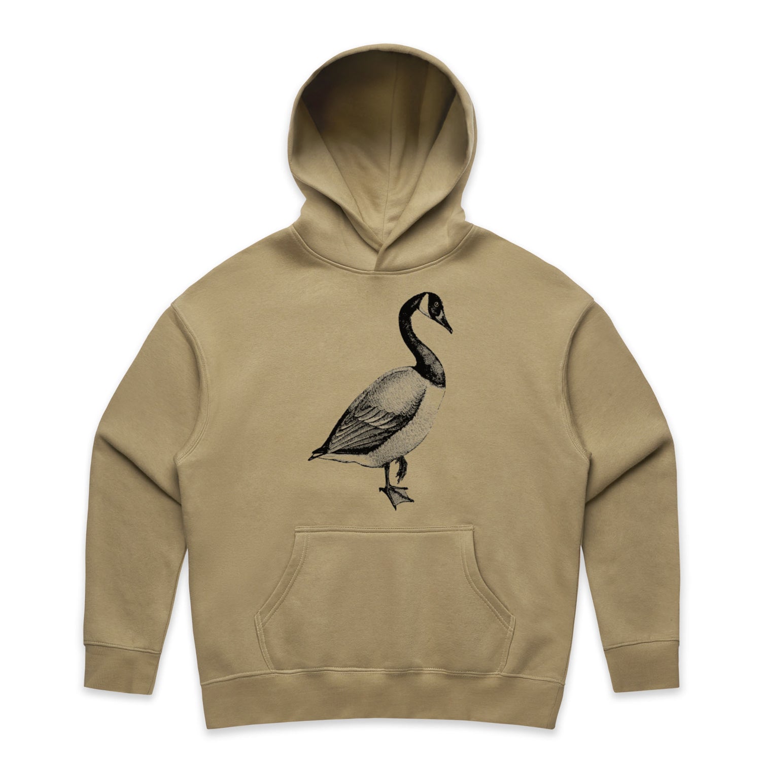 With its relaxed fit, you can snuggle up and let loose. It’s got a no-fuss pullover hood, drop shoulders that scream laid-back vibes, and a kangaroo pocket for all your snack-stashing needs. The little duck print comes splashed in bold black ink, so you can swagger with serious style.