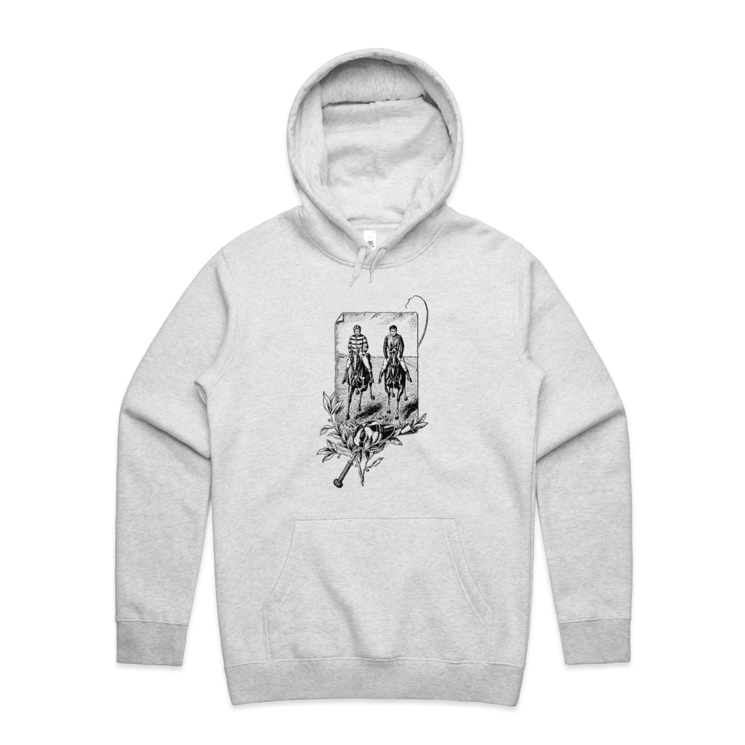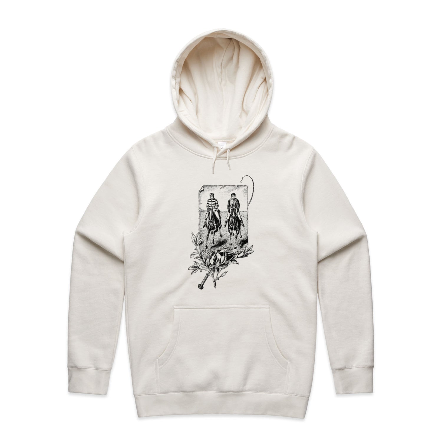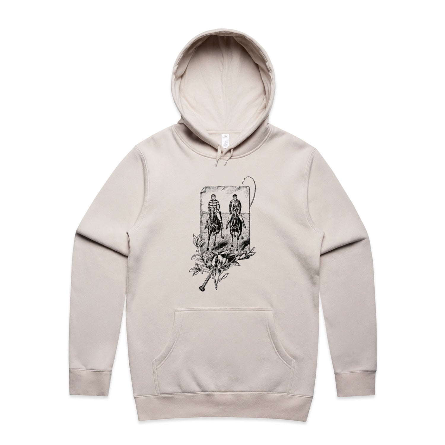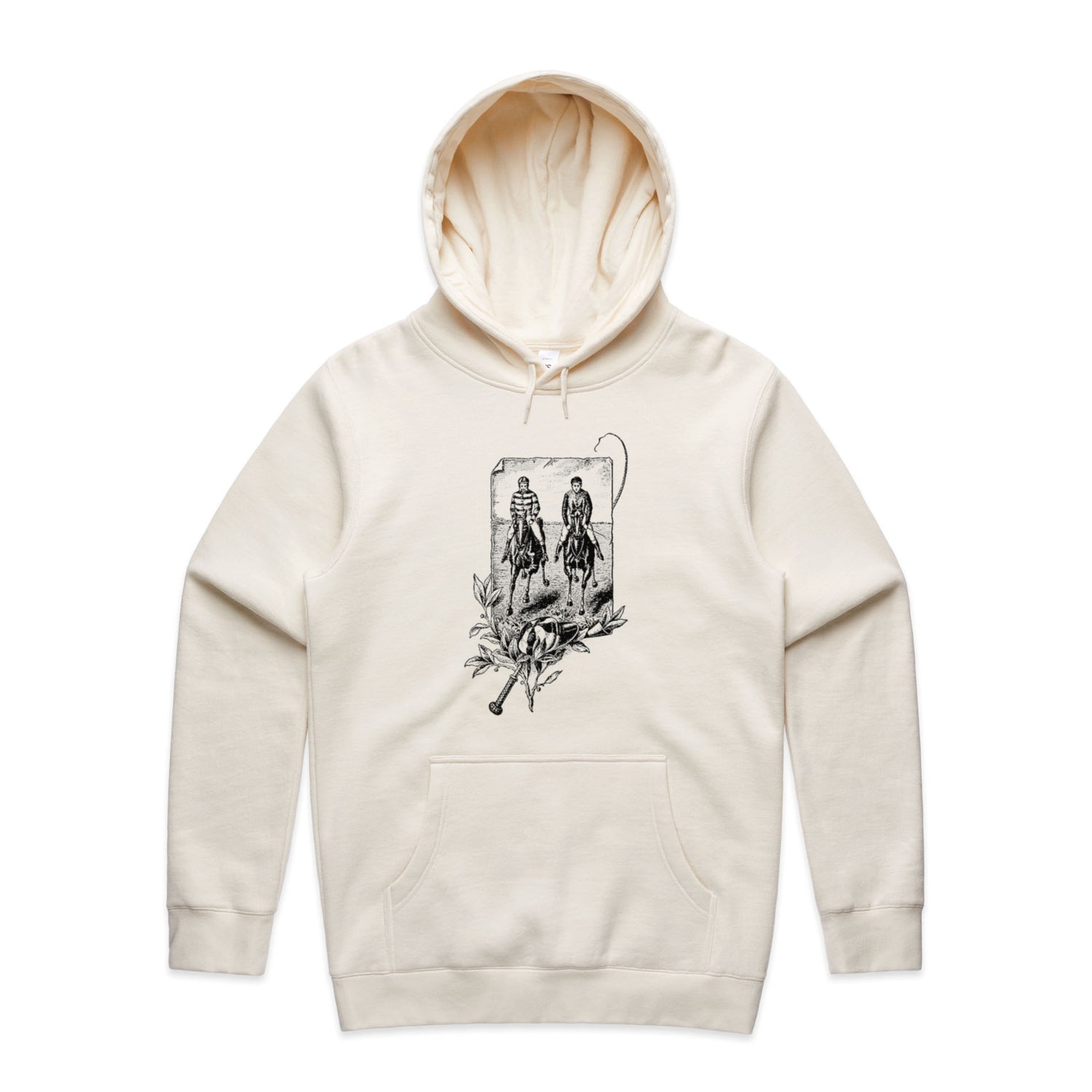 Hold onto your Akubra, 'cause this hoodie is galloping right into your wardrobe! Introducing the Jockey and Horse Unisex Hooded Sweatshirt, where your love for horses meets ultimate comfort. Irrespective of who’s wearing it, this beaut of a hoodie is stitched together with a blend of cotton and recycled polyester, making it soft enough for a nanna nap yet tough enough for a romp in the paddock. Just pull up the lined hood when the wind's howling like a dingo and stash your goodies in the kangaroo pocket – too easy! Emblazoned in bold black ink, this design is your trusty steed, whether you’re hitting the town or just horsing around. With its regular fit and ribbed cuffs, you won’t just be riding in style – you’ll be ruling the roost. Keep it eco-friendly and look fierce; that’s fair dinkum in anyone’s book!