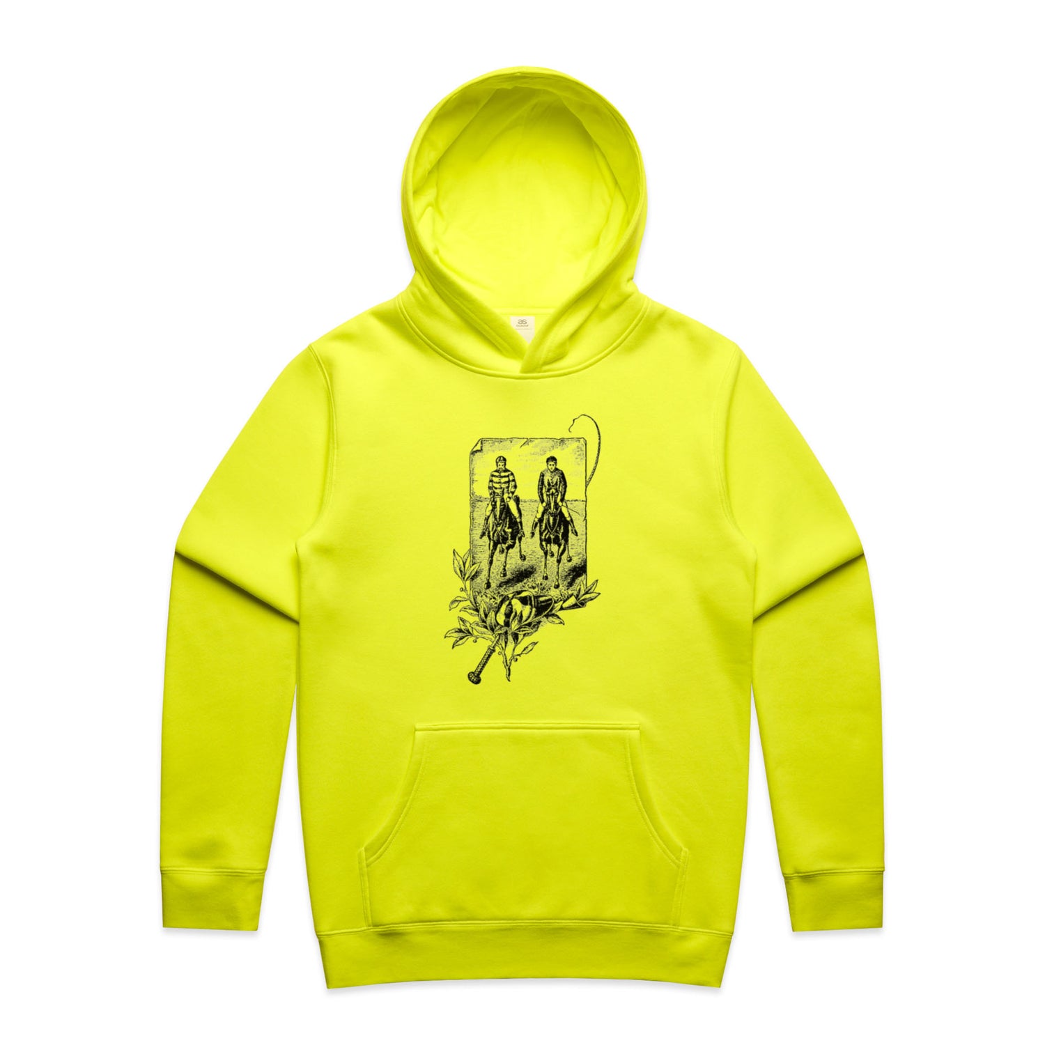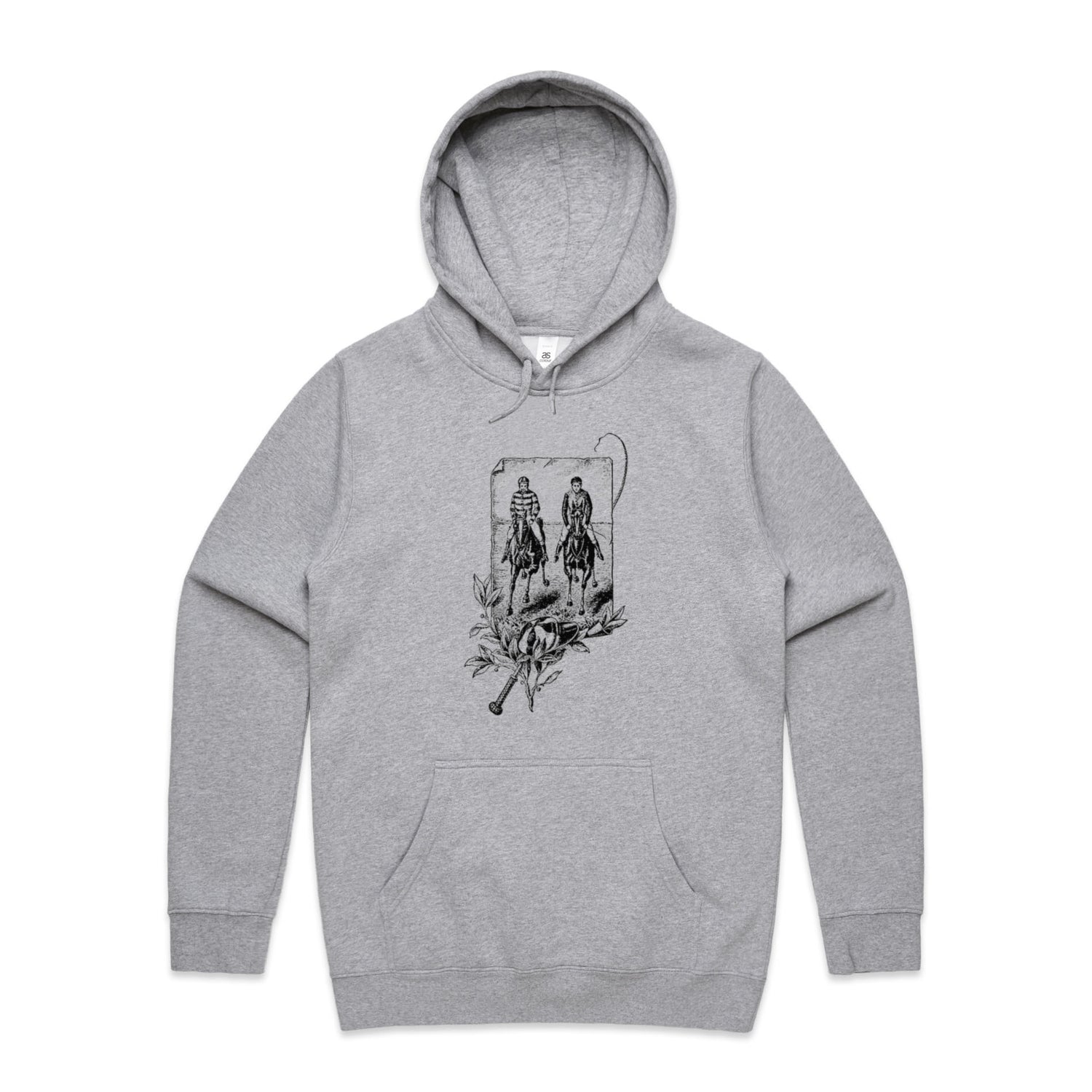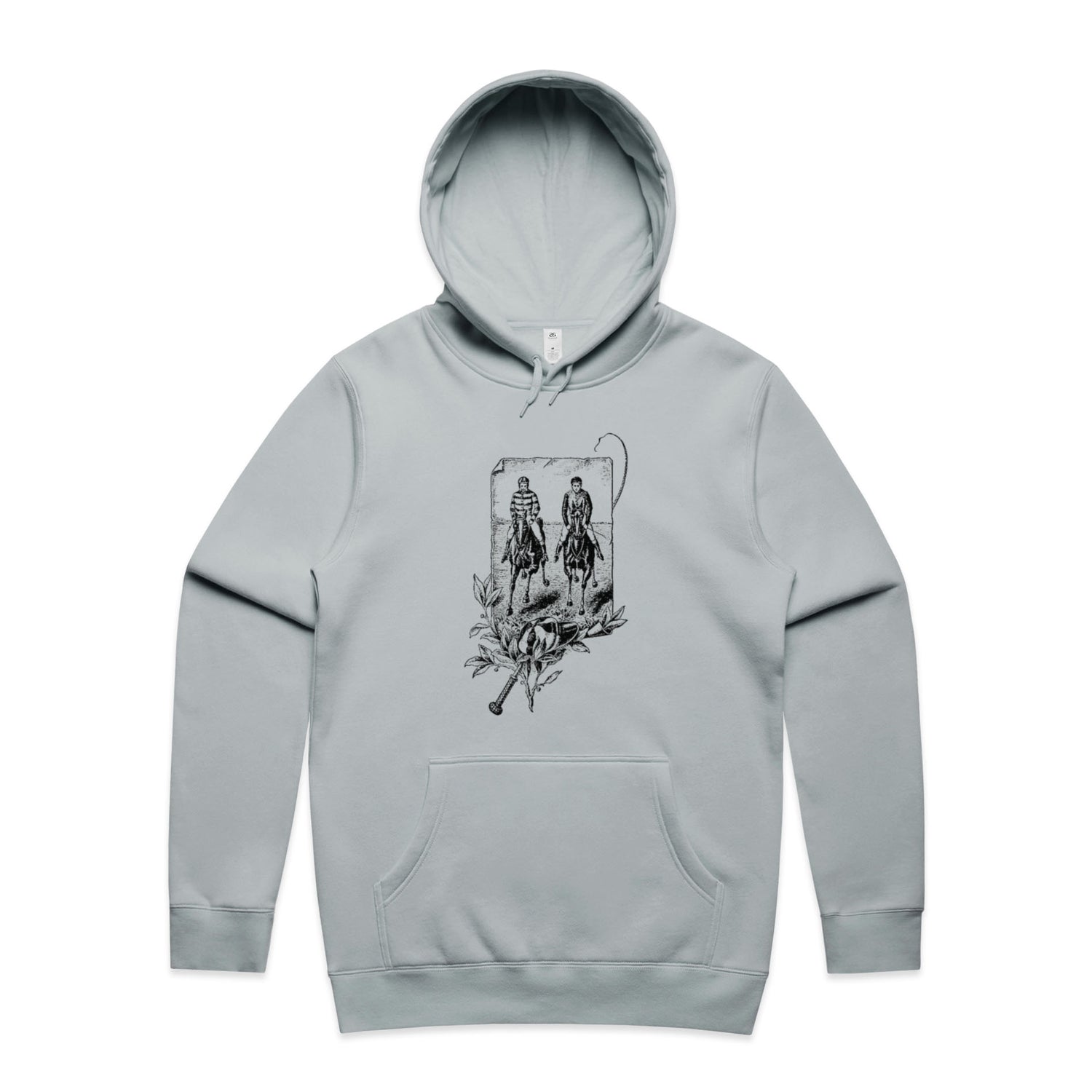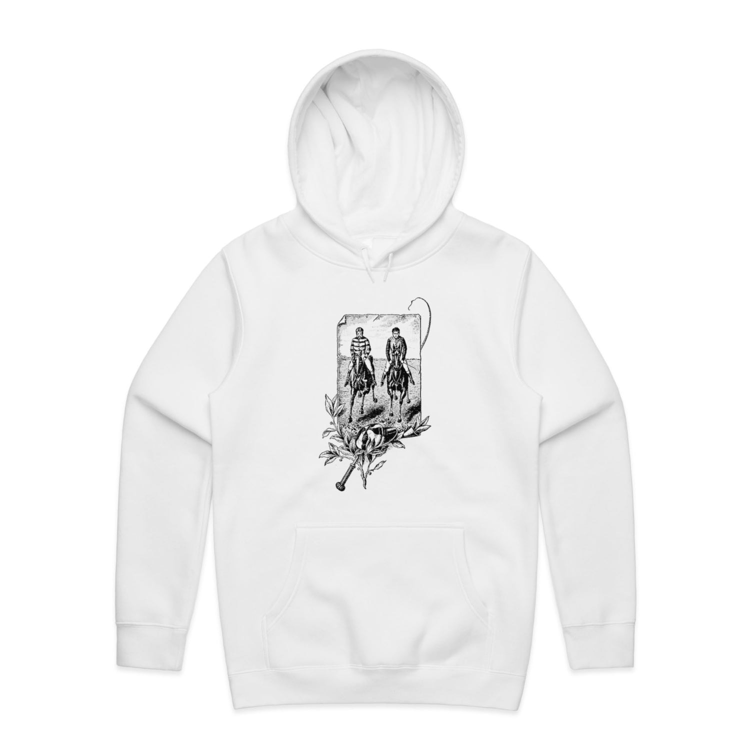 Hold onto your Akubra, 'cause this hoodie is galloping right into your wardrobe! Introducing the Jockey and Horse Unisex Hooded Sweatshirt, where your love for horses meets ultimate comfort. Irrespective of who’s wearing it, this beaut of a hoodie is stitched together with a blend of cotton and recycled polyester, making it soft enough for a nanna nap yet tough enough for a romp in the paddock. Just pull up the lined hood when the wind's howling like a dingo and stash your goodies in the kangaroo pocket – too easy! Emblazoned in bold black ink, this design is your trusty steed, whether you’re hitting the town or just horsing around. With its regular fit and ribbed cuffs, you won’t just be riding in style – you’ll be ruling the roost. Keep it eco-friendly and look fierce; that’s fair dinkum in anyone’s book!