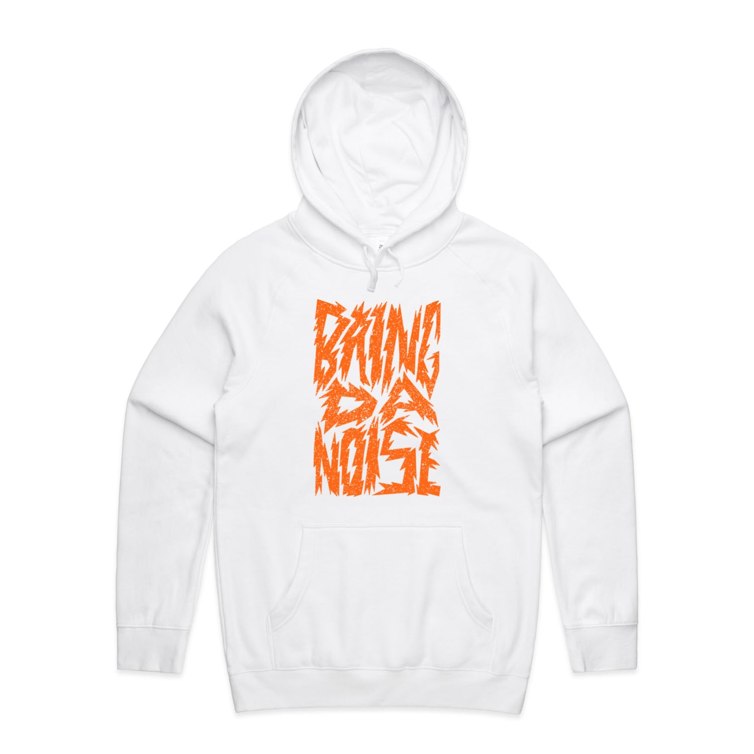 The Hoodies Bring Da Noise – Men's Hooded Sweatshirt is a high-quality men's hooded sweatshirt, printed with orange ink on the trusted AS Colour Supply Hood 5101. With a regular fit and mid-weight feel, it's crafted from a premium blend of 80% cotton and 20% polyester anti-pill fleece, making it a durable and comfortable staple for any wardrobe. The pullover design features raglan sleeves, a lined hood with tonal drawcord, ribbed sleeve cuffs, and a roomy kangaroo pocket — all designed to keep you warm while looking effortlessly sharp.