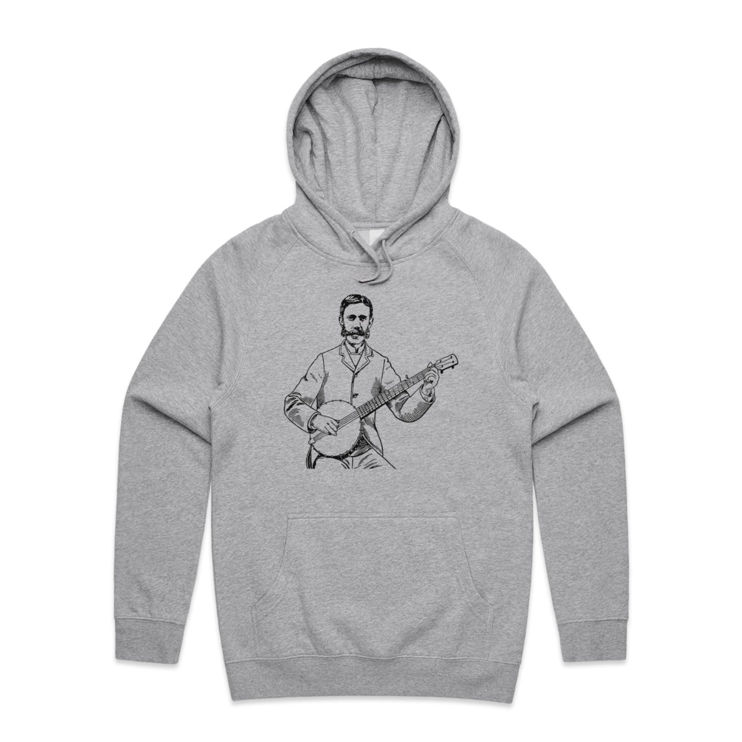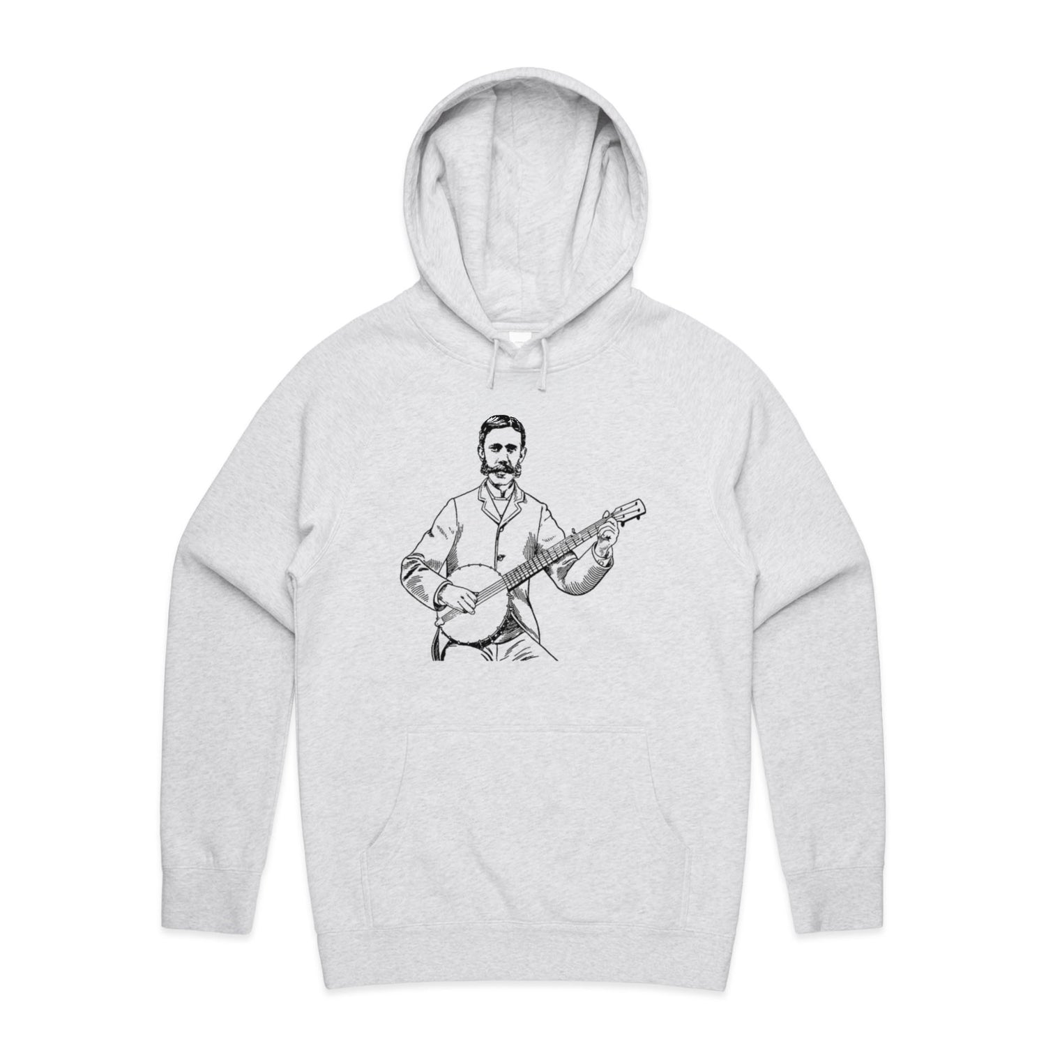The Hoodies Banjo Player – Men's Hooded Sweatshirt is a high-quality men's hooded sweatshirt, printed with black ink on the trusted AS Colour Supply Hood 5101. With a regular fit and mid-weight feel, it's crafted from a premium blend of 80% cotton and 20% polyester anti-pill fleece, making it a durable and comfortable staple for any wardrobe. The pullover design features raglan sleeves, a lined hood with tonal drawcord, ribbed sleeve cuffs, and a roomy kangaroo pocket — all designed to keep you warm while looking effortlessly sharp.