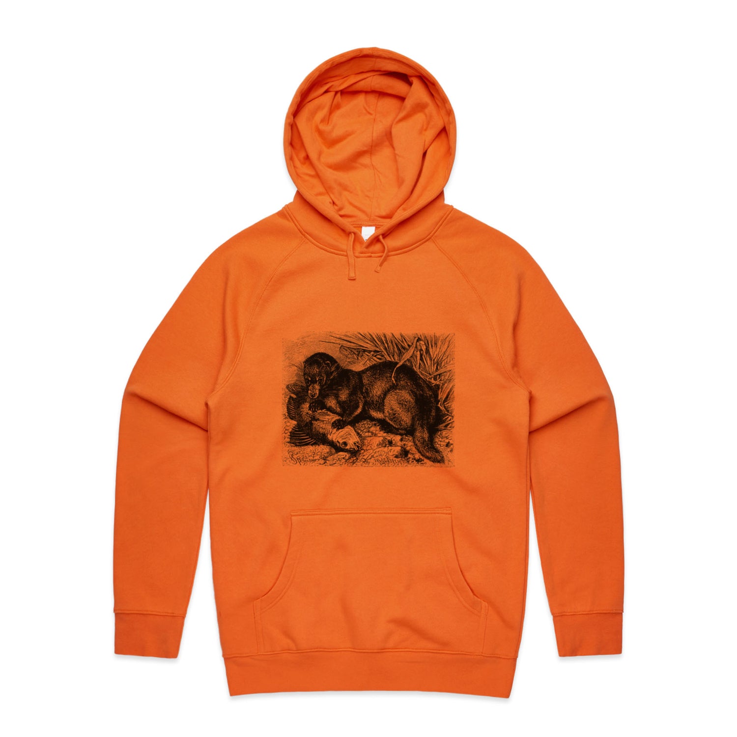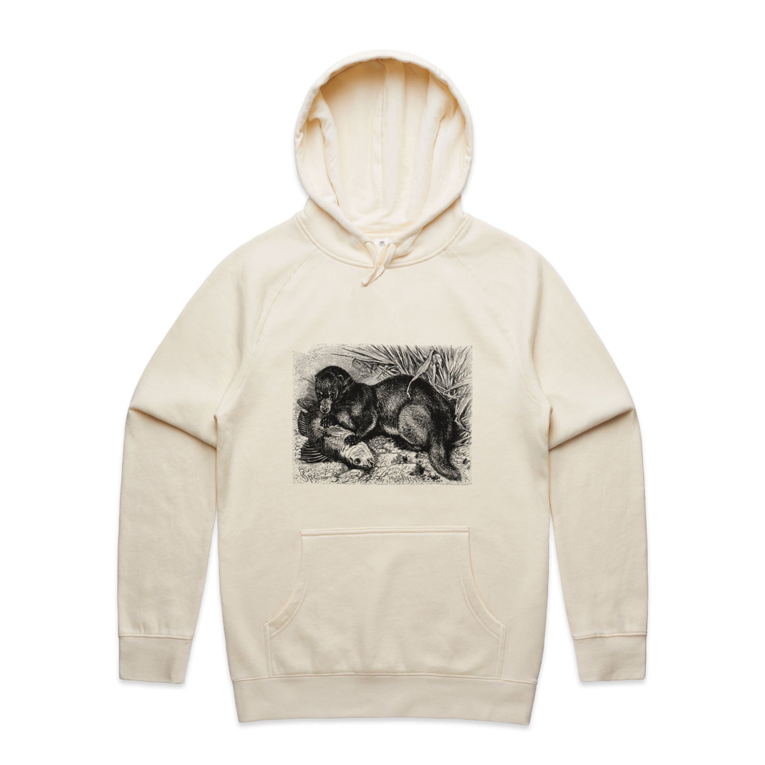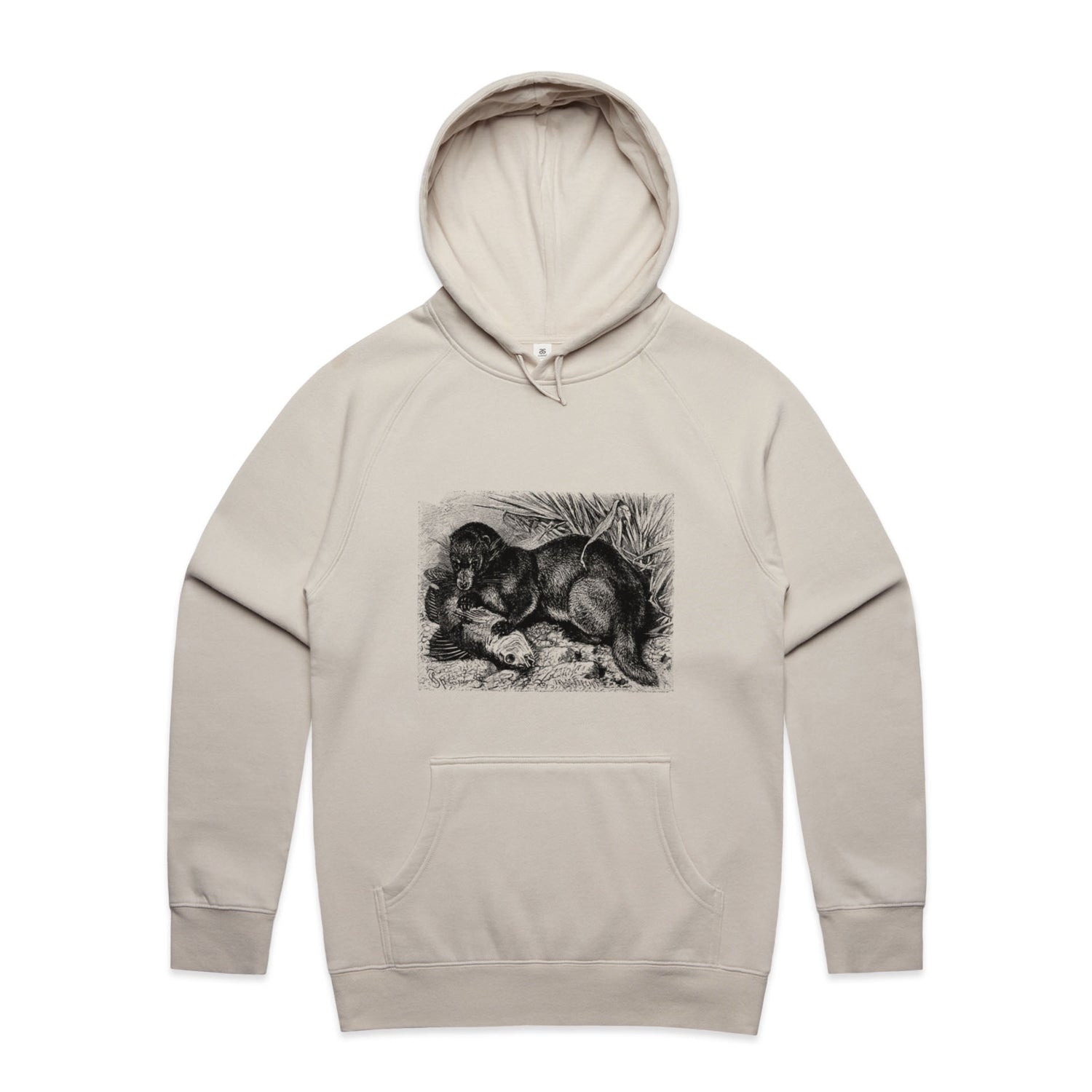 The Hoodies Otter with Fish – Men's Hooded Sweatshirt is a high-quality men's hooded sweatshirt, printed with black ink on the trusted AS Colour Supply Hood 5101. With a regular fit and mid-weight feel, it's crafted from a premium blend of 80% cotton and 20% polyester anti-pill fleece, making it a durable and comfortable staple for any wardrobe. The pullover design features raglan sleeves, a lined hood with tonal drawcord, ribbed sleeve cuffs, and a roomy kangaroo pocket — all designed to keep you warm while looking effortlessly sharp.