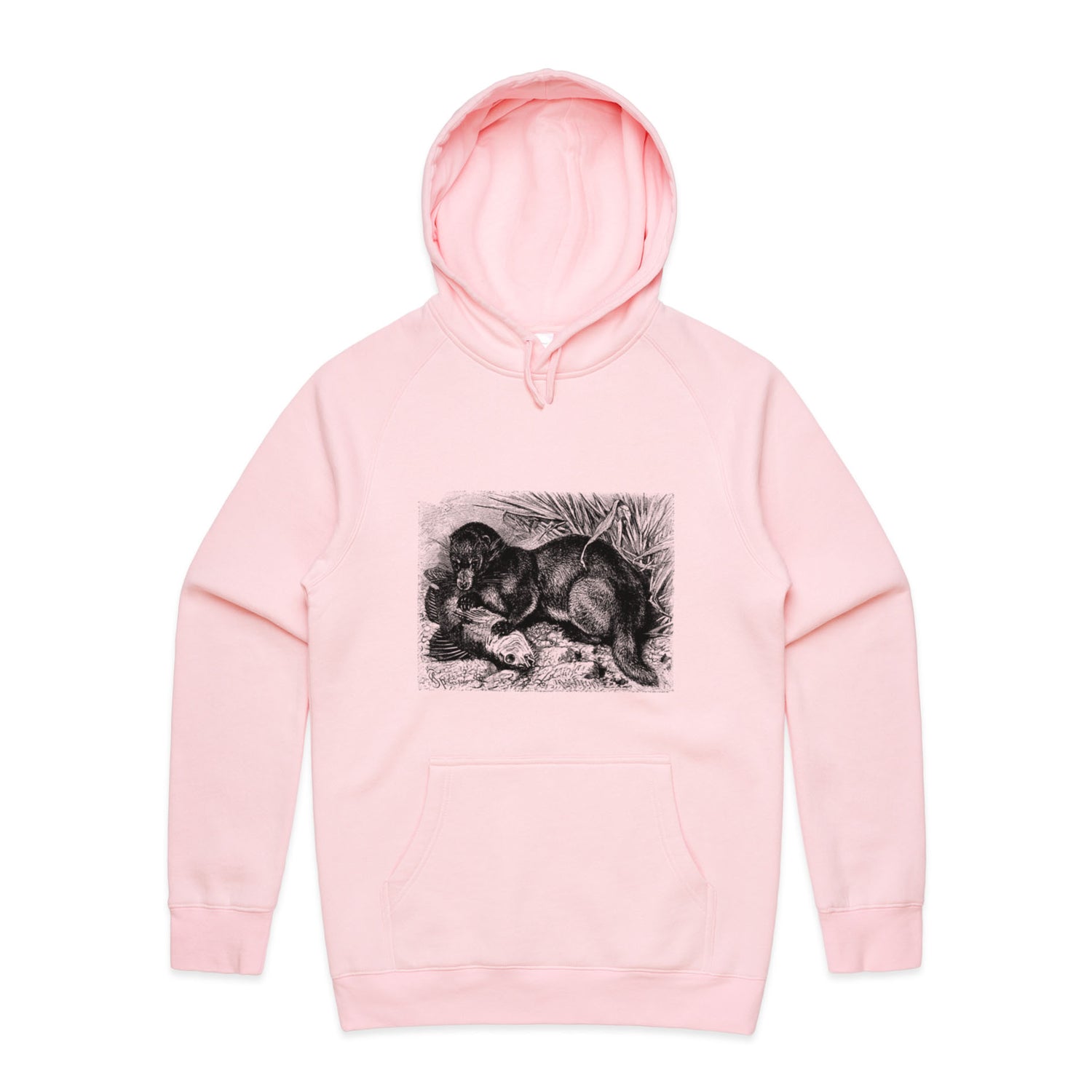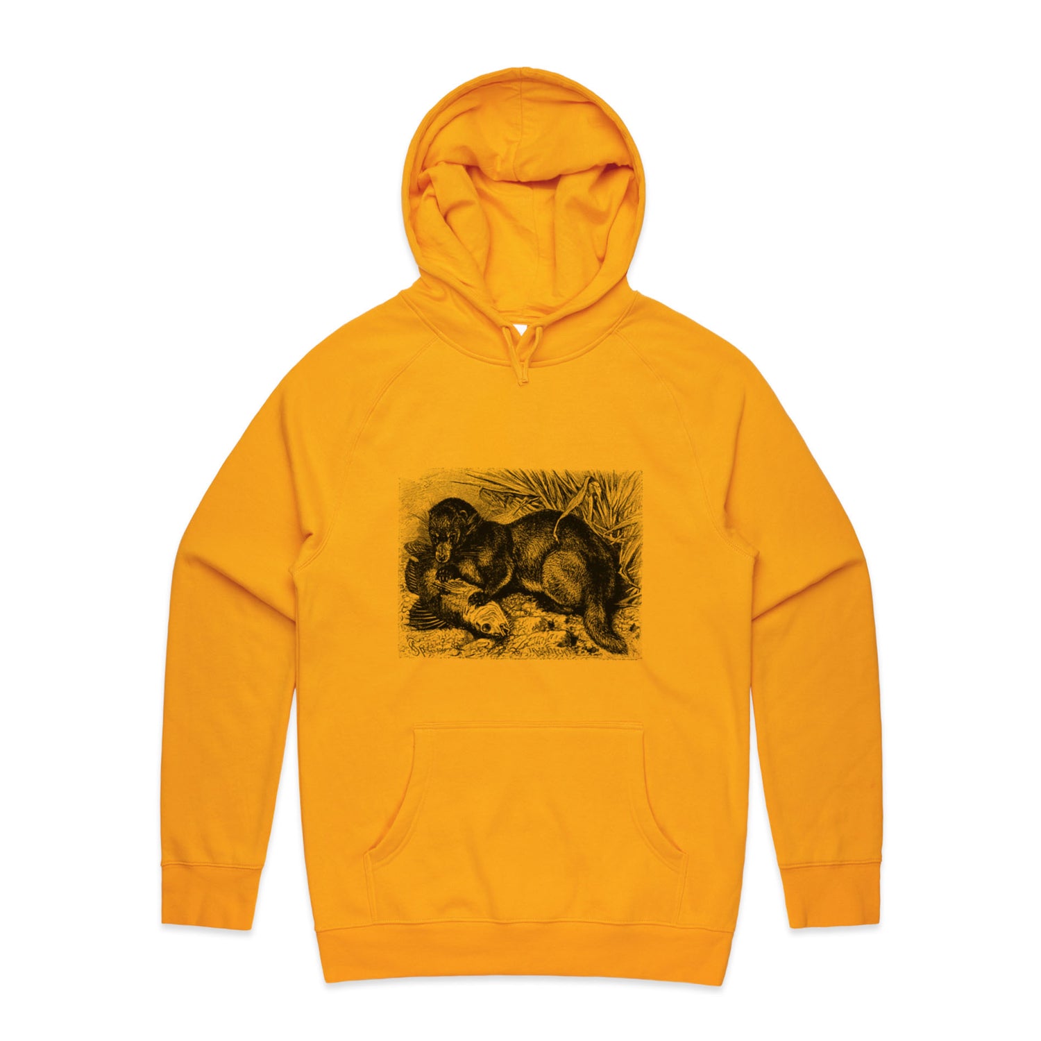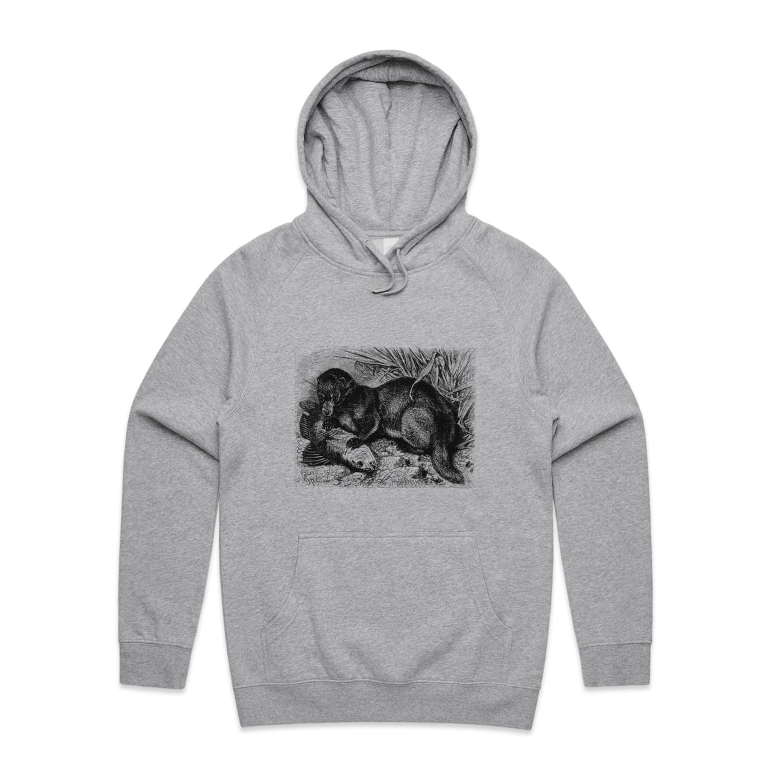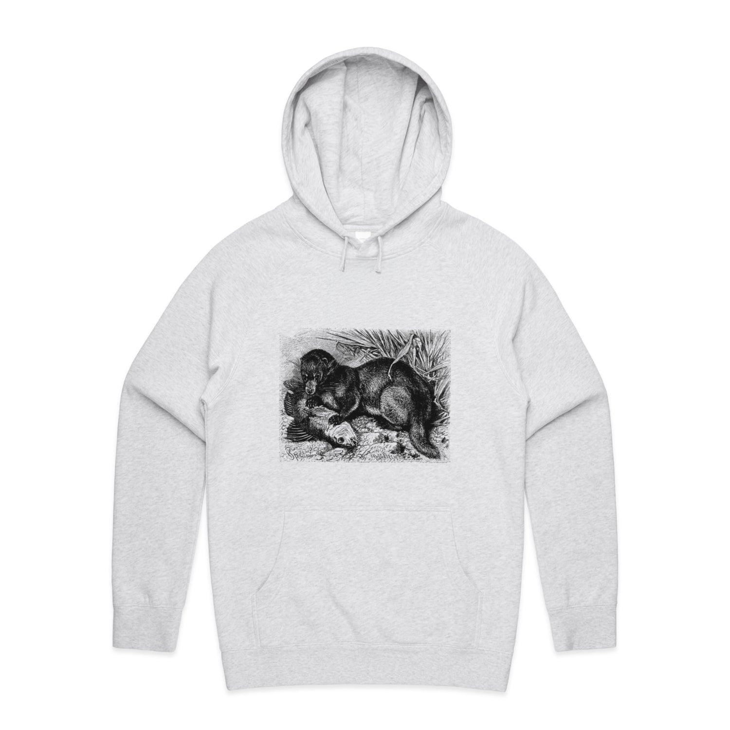 The Hoodies Otter with Fish – Men's Hooded Sweatshirt is a high-quality men's hooded sweatshirt, printed with black ink on the trusted AS Colour Supply Hood 5101. With a regular fit and mid-weight feel, it's crafted from a premium blend of 80% cotton and 20% polyester anti-pill fleece, making it a durable and comfortable staple for any wardrobe. The pullover design features raglan sleeves, a lined hood with tonal drawcord, ribbed sleeve cuffs, and a roomy kangaroo pocket — all designed to keep you warm while looking effortlessly sharp.