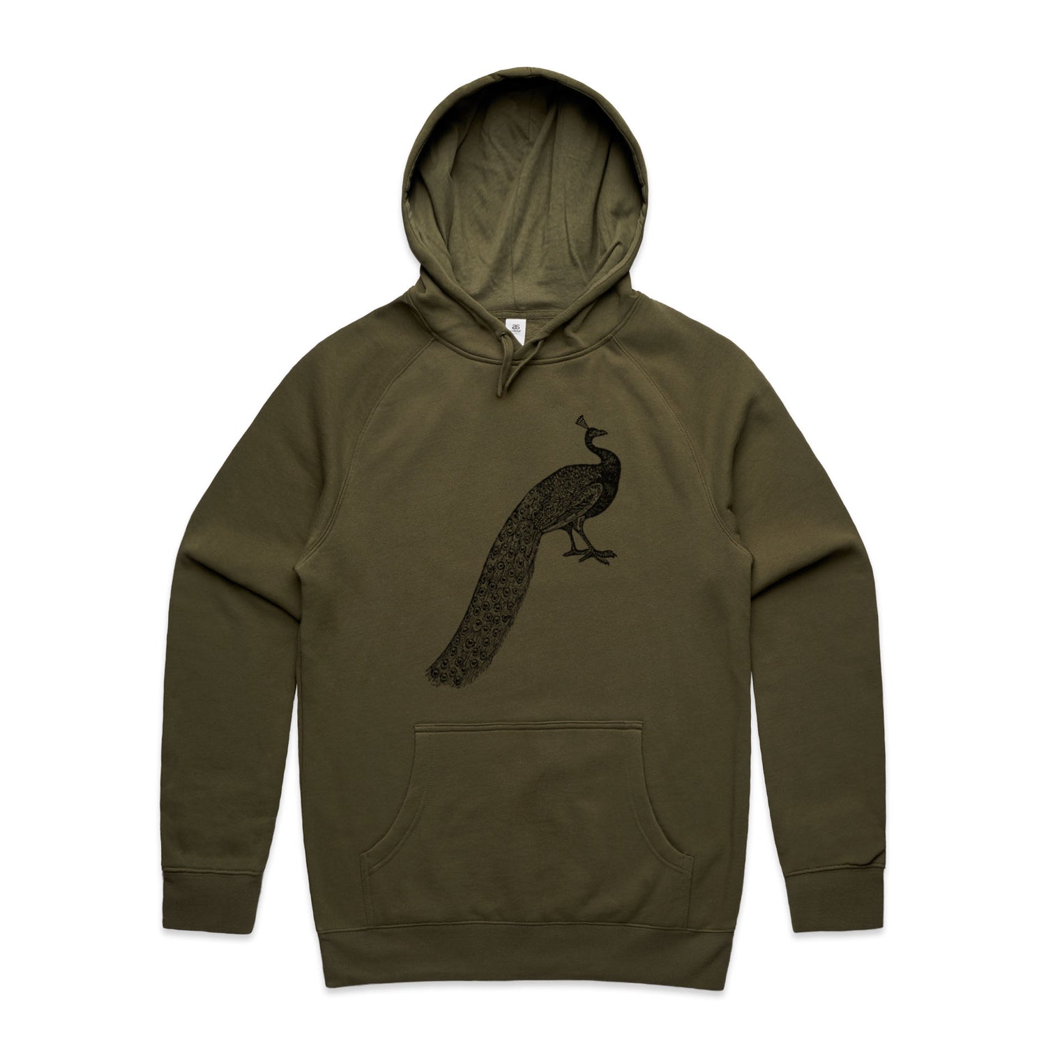 The Hoodies Peacock Tail – Men's Hooded Sweatshirt is a high-quality men's hooded sweatshirt, printed with black ink on the trusted AS Colour Supply Hood 5101. With a regular fit and mid-weight feel, it's crafted from a premium blend of 80% cotton and 20% polyester anti-pill fleece, making it a durable and comfortable staple for any wardrobe. The pullover design features raglan sleeves, a lined hood with tonal drawcord, ribbed sleeve cuffs, and a roomy kangaroo pocket — all designed to keep you warm while looking effortlessly sharp.