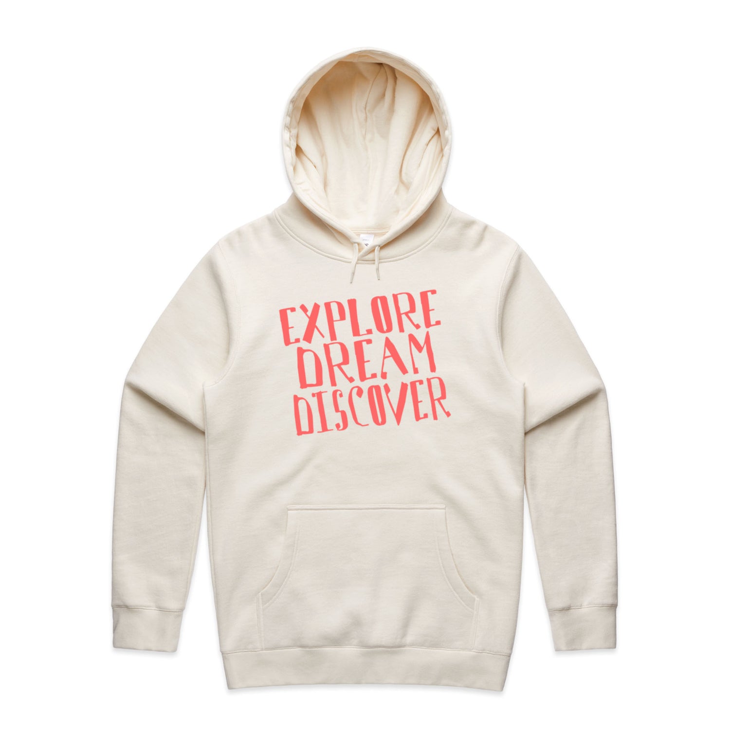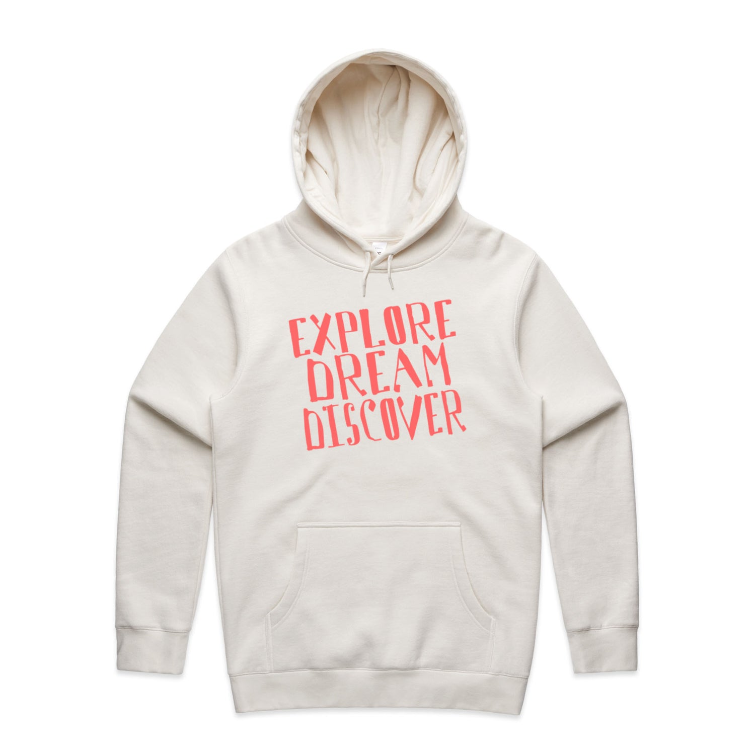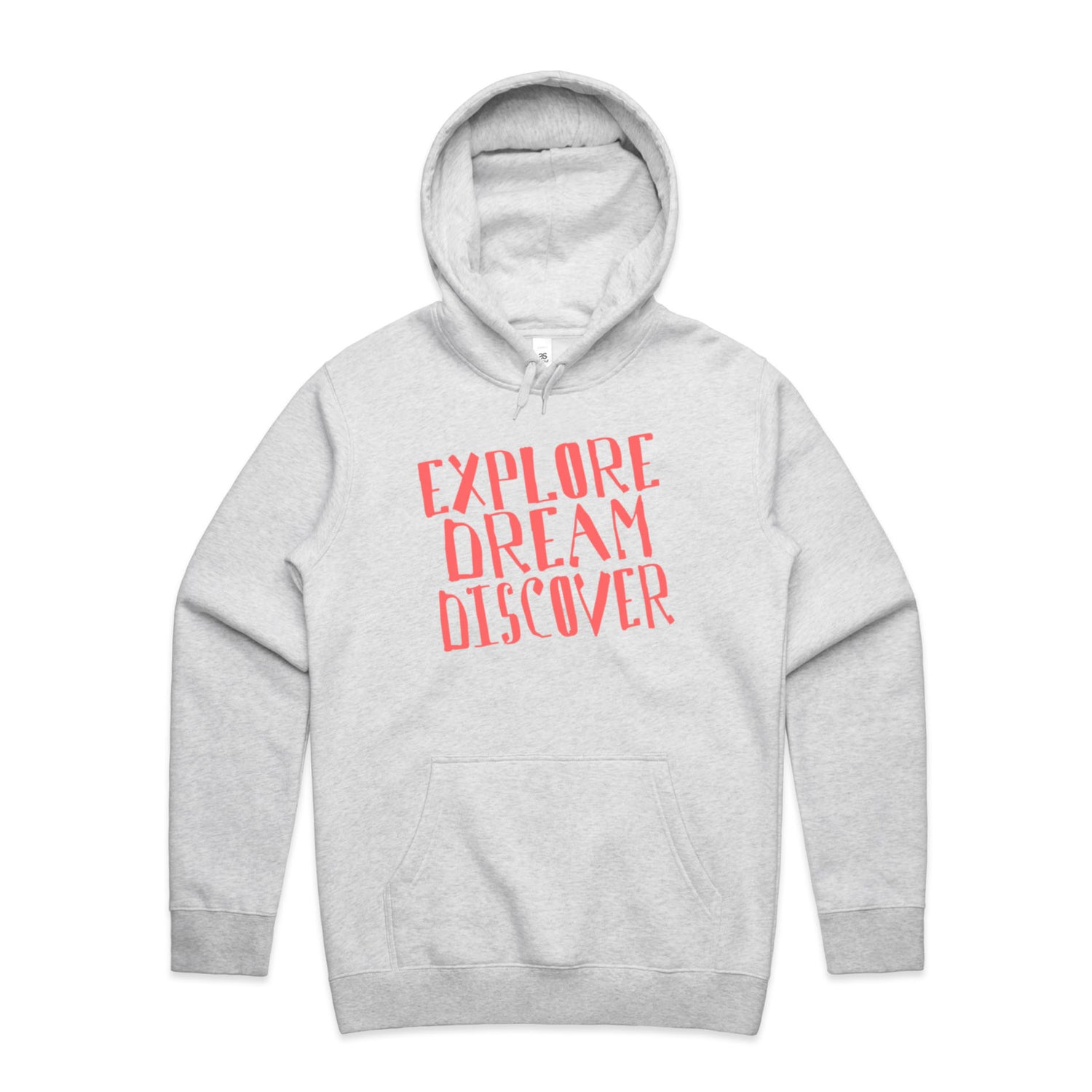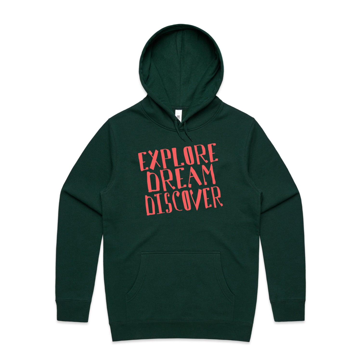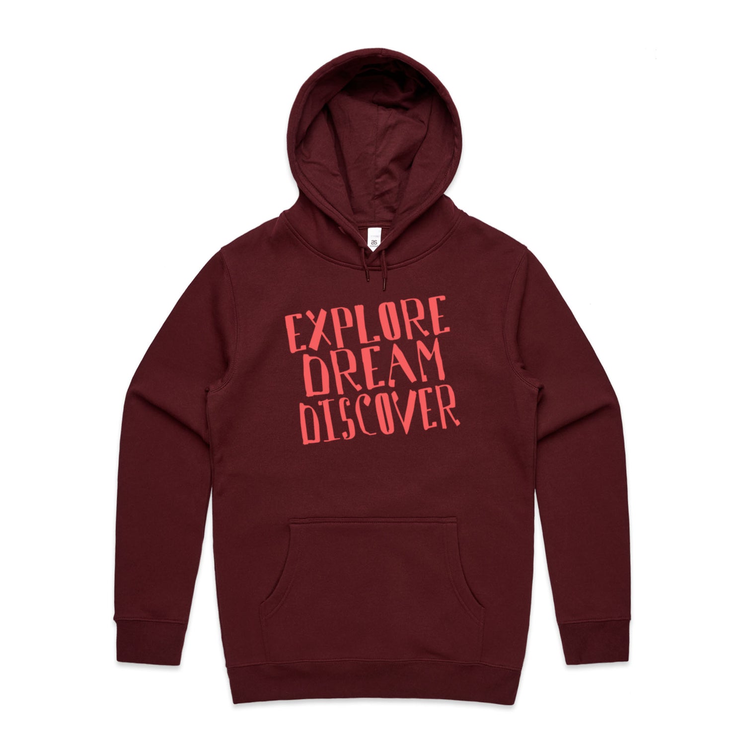 Unleash your inner explorer with TheHoodie's "Explore Dream Discover" Unisex Hooded Sweatshirt! Not just your run-of-the-mill jumper, this bad boy’s got the adventure vibes turned up to eleven with its snazzy print in a bold red ink that’s as vibrant as the Aussie sunset. Perfectly suited for dreamers and doers, it’s crafted from an eco-friendly fabric blend that lets you hit the road without a hitch or a worry for the planet. Whether you're roaming the streets or chilling under the stars, the roomy kangaroo pocket and lined hood are there to store your secrets and keep your noggin snug. Slide into this mid-heavyweight wonder, and let those travel inspo quotes do the talking while you focus on conquering the world, one step at a time. It's the perfect mash-up of comfort and conscience, ready for any adventure that calls your name!