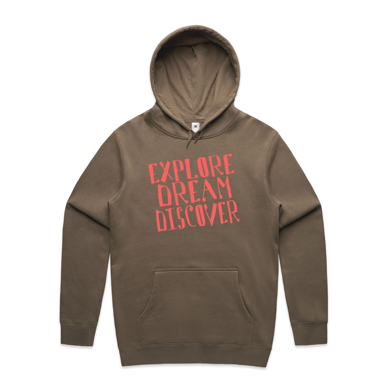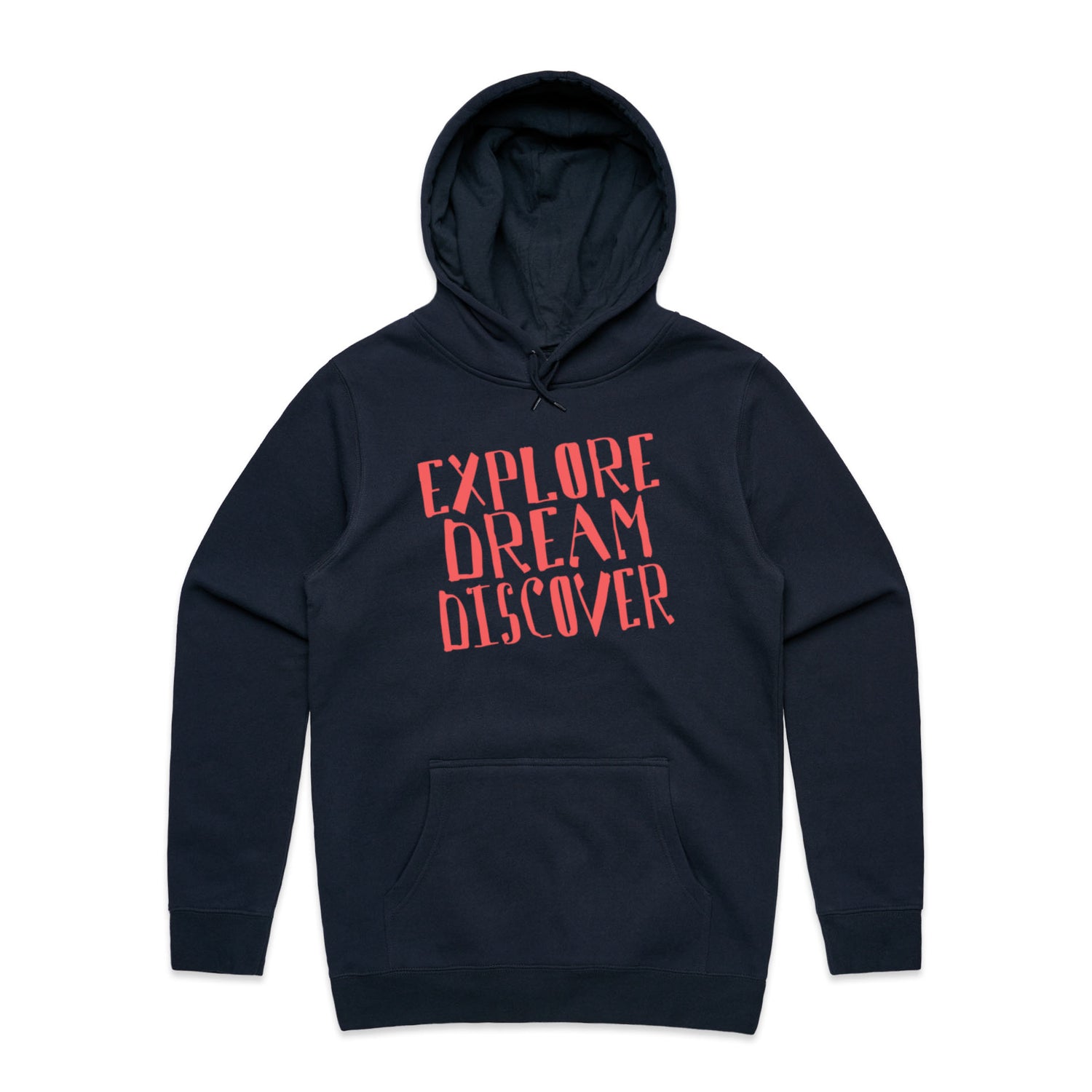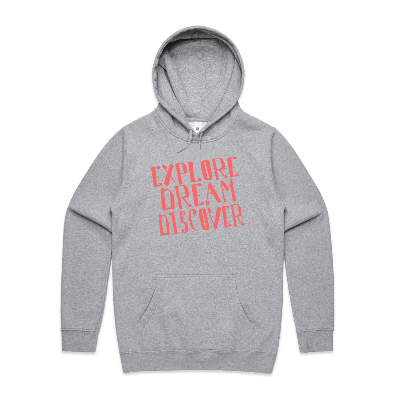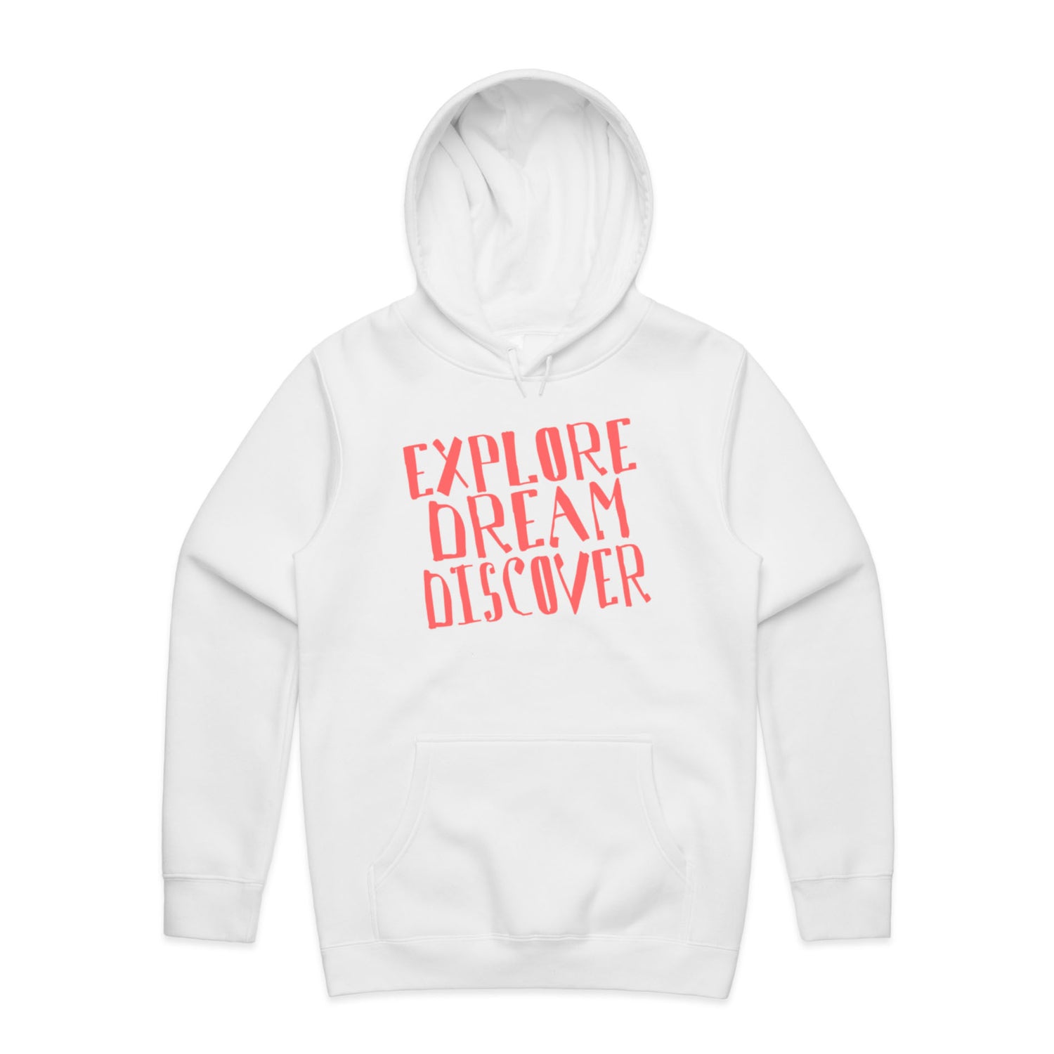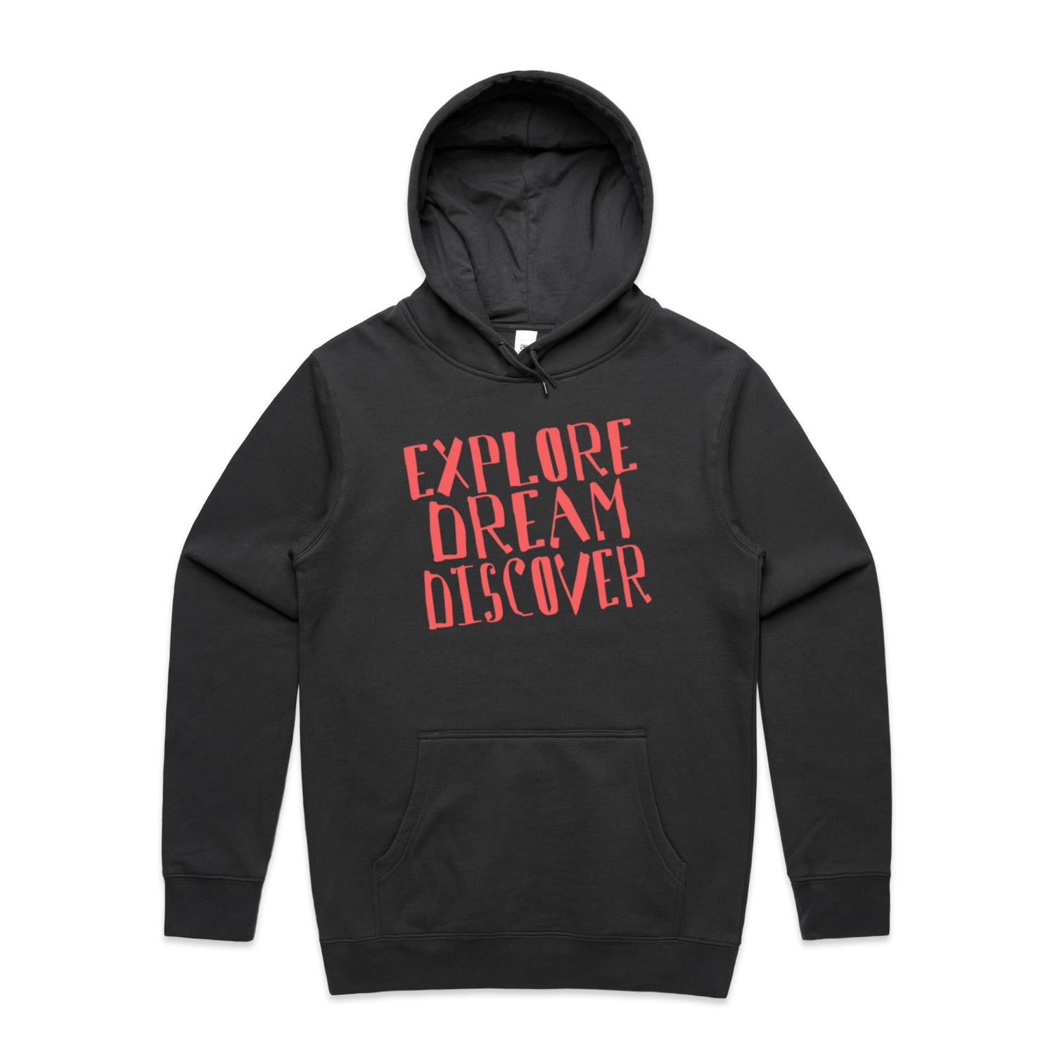 Unleash your inner explorer with TheHoodie's "Explore Dream Discover" Unisex Hooded Sweatshirt! Not just your run-of-the-mill jumper, this bad boy’s got the adventure vibes turned up to eleven with its snazzy print in a bold red ink that’s as vibrant as the Aussie sunset. Perfectly suited for dreamers and doers, it’s crafted from an eco-friendly fabric blend that lets you hit the road without a hitch or a worry for the planet. Whether you're roaming the streets or chilling under the stars, the roomy kangaroo pocket and lined hood are there to store your secrets and keep your noggin snug. Slide into this mid-heavyweight wonder, and let those travel inspo quotes do the talking while you focus on conquering the world, one step at a time. It's the perfect mash-up of comfort and conscience, ready for any adventure that calls your name!