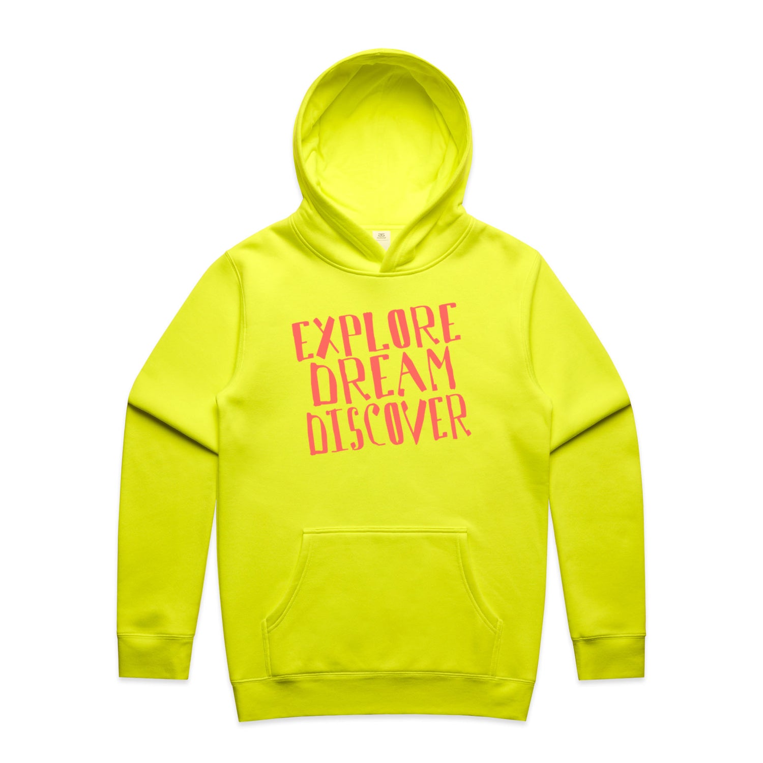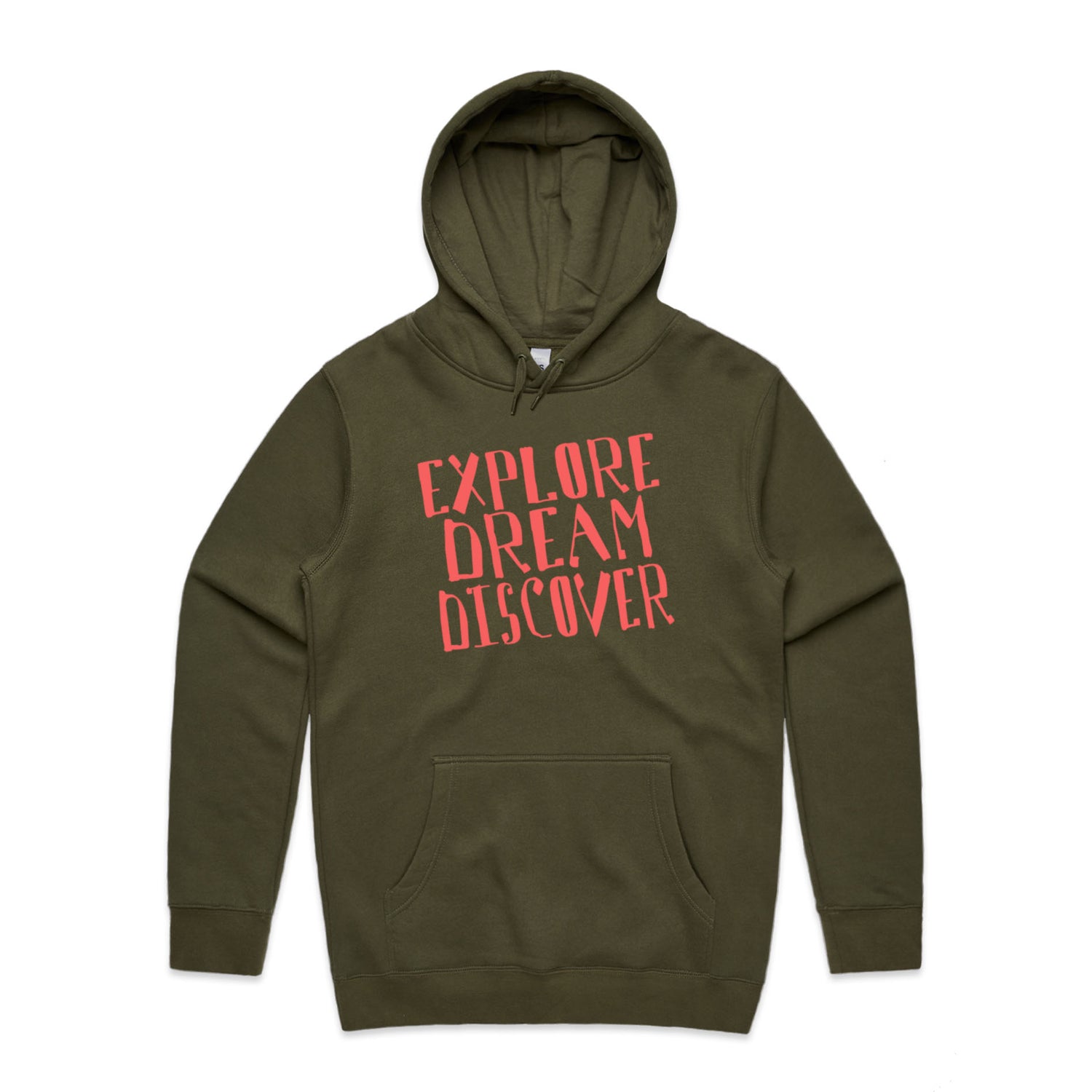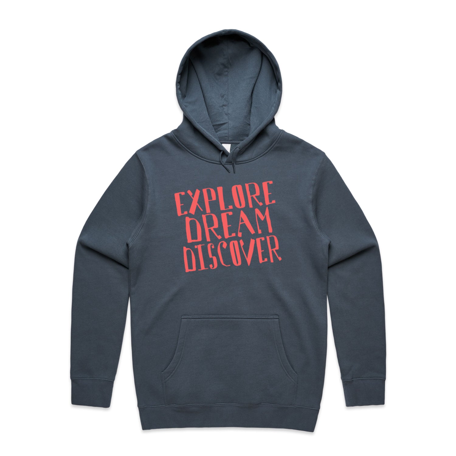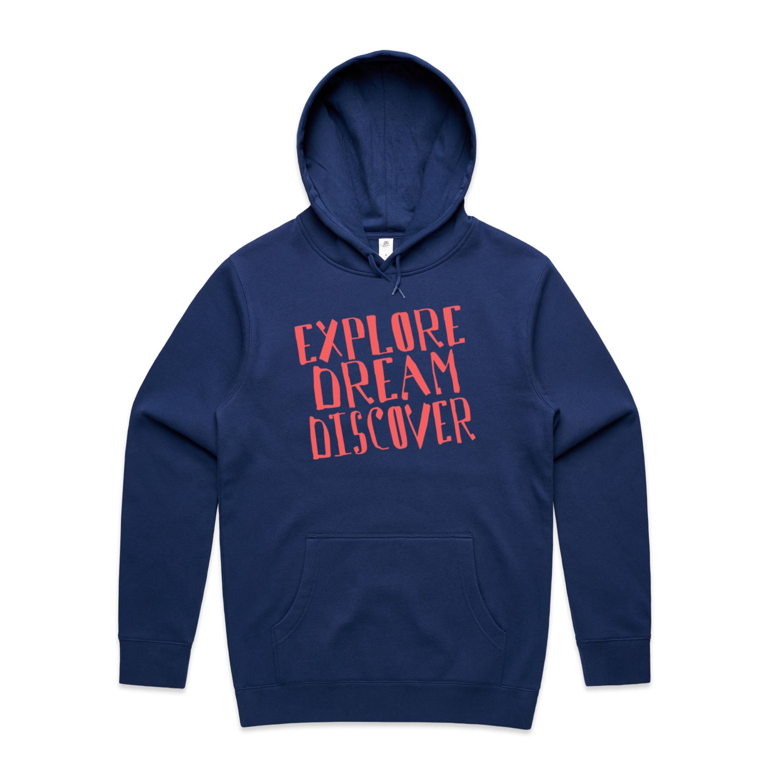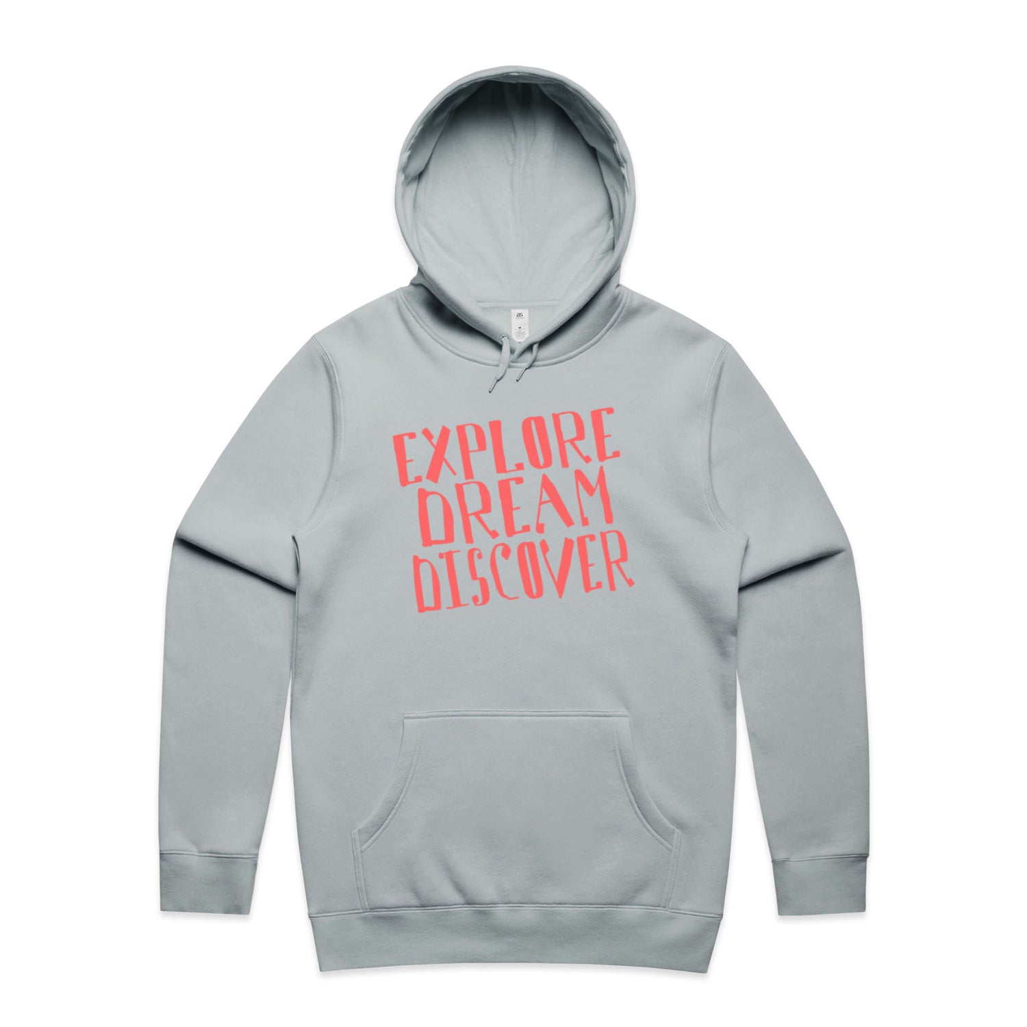 Unleash your inner explorer with TheHoodie's "Explore Dream Discover" Unisex Hooded Sweatshirt! Not just your run-of-the-mill jumper, this bad boy’s got the adventure vibes turned up to eleven with its snazzy print in a bold red ink that’s as vibrant as the Aussie sunset. Perfectly suited for dreamers and doers, it’s crafted from an eco-friendly fabric blend that lets you hit the road without a hitch or a worry for the planet. Whether you're roaming the streets or chilling under the stars, the roomy kangaroo pocket and lined hood are there to store your secrets and keep your noggin snug. Slide into this mid-heavyweight wonder, and let those travel inspo quotes do the talking while you focus on conquering the world, one step at a time. It's the perfect mash-up of comfort and conscience, ready for any adventure that calls your name!