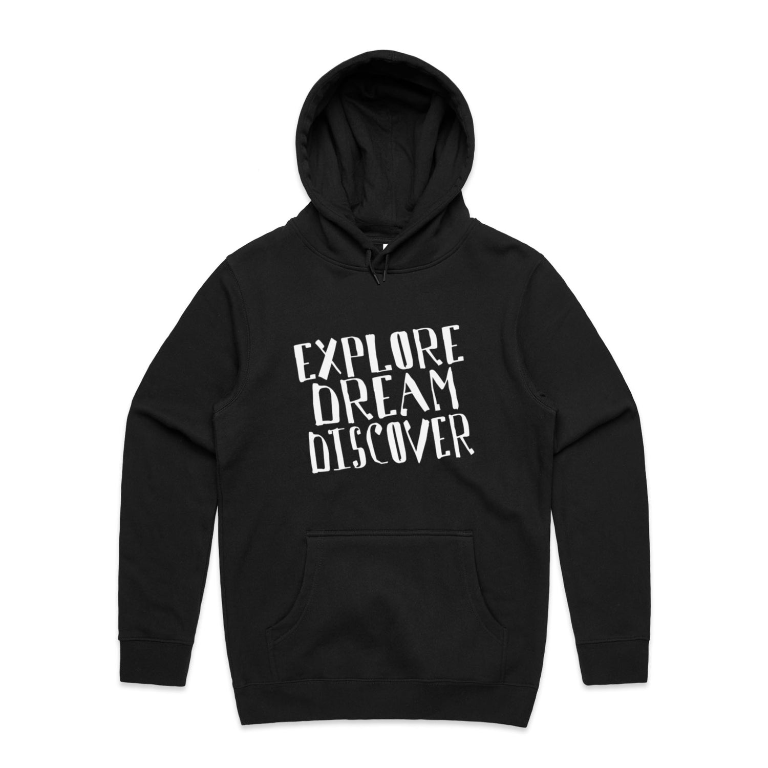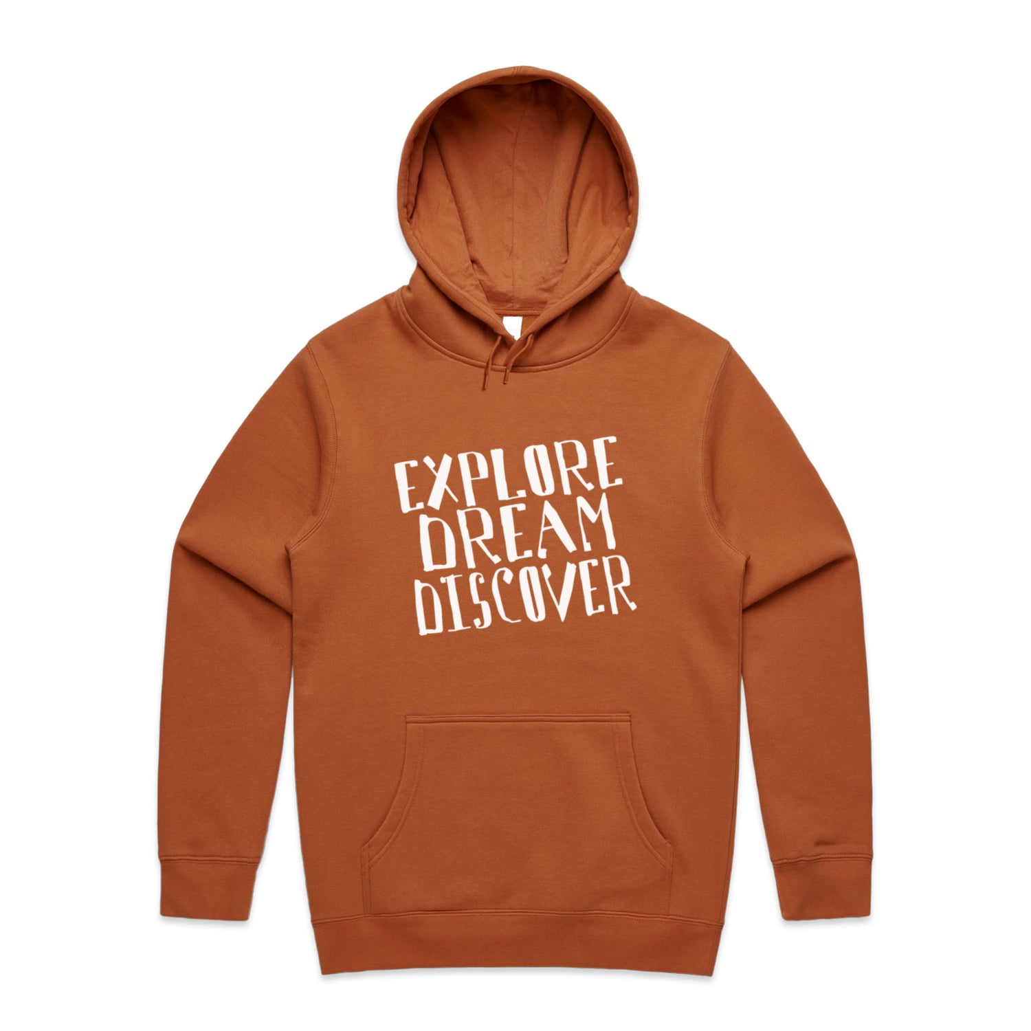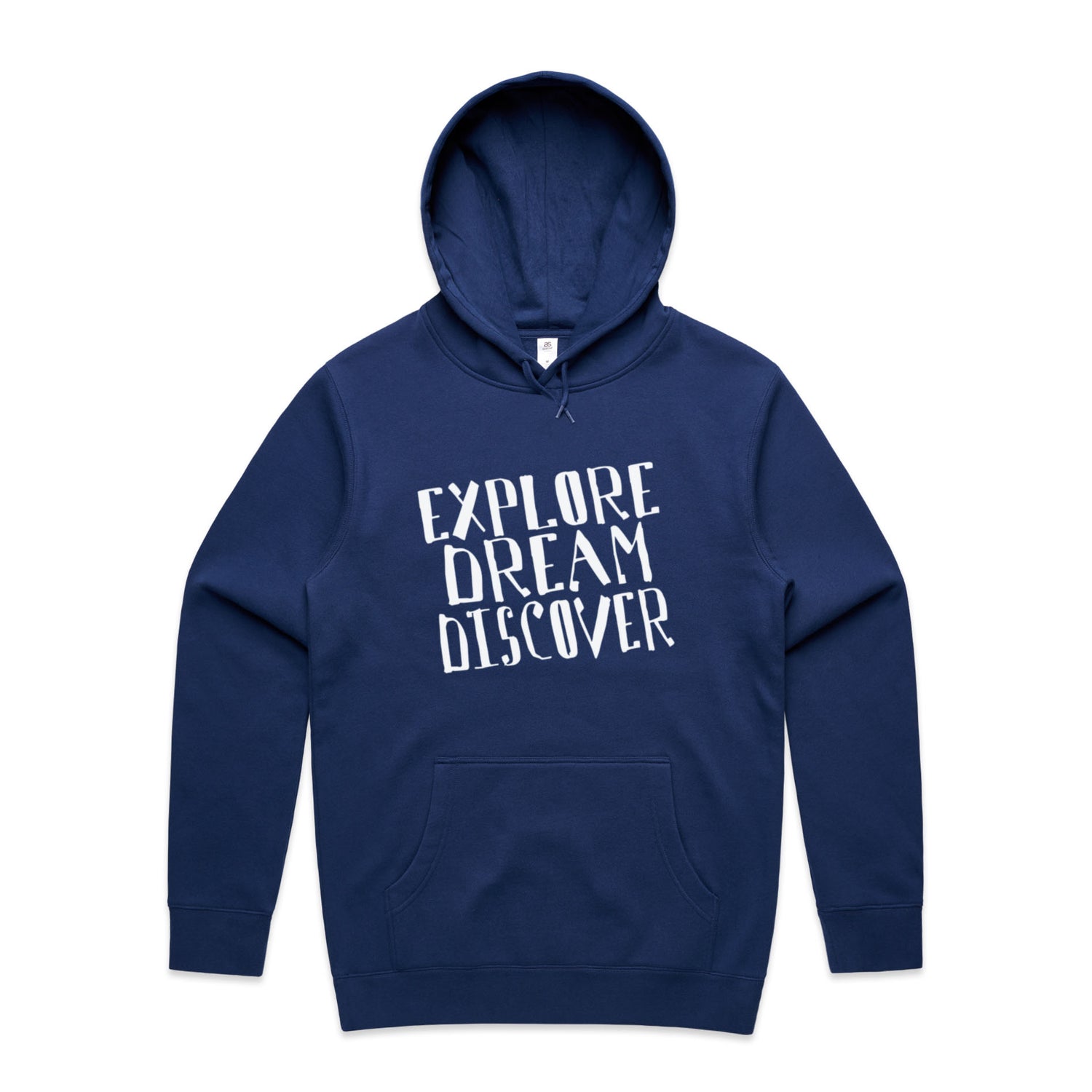Hey trendsetter! Get ready to explore, dream, and discover with a hoodie that's as adventurous as you are. This unisex gem is your go-to mate for all things comfy and cool. It’s got that regular fit that feels just right and a kangaroo pocket for stashing those epic finds. With a lined hood for maximum snug vibes and a cheeky drawcord to keep things stylish, this hoodie is all about living your best life. The Explore Dream Discover design splashes across in bright white ink, making every adventure pop from the urban jungle to the great outdoors. Whether you're hitting the books or a bushwalk, this hoodie is keen to come along for the ride. Perfect for those who love a bit of inspo with their daily wear. Time to zip it up and let the good times get rolling!