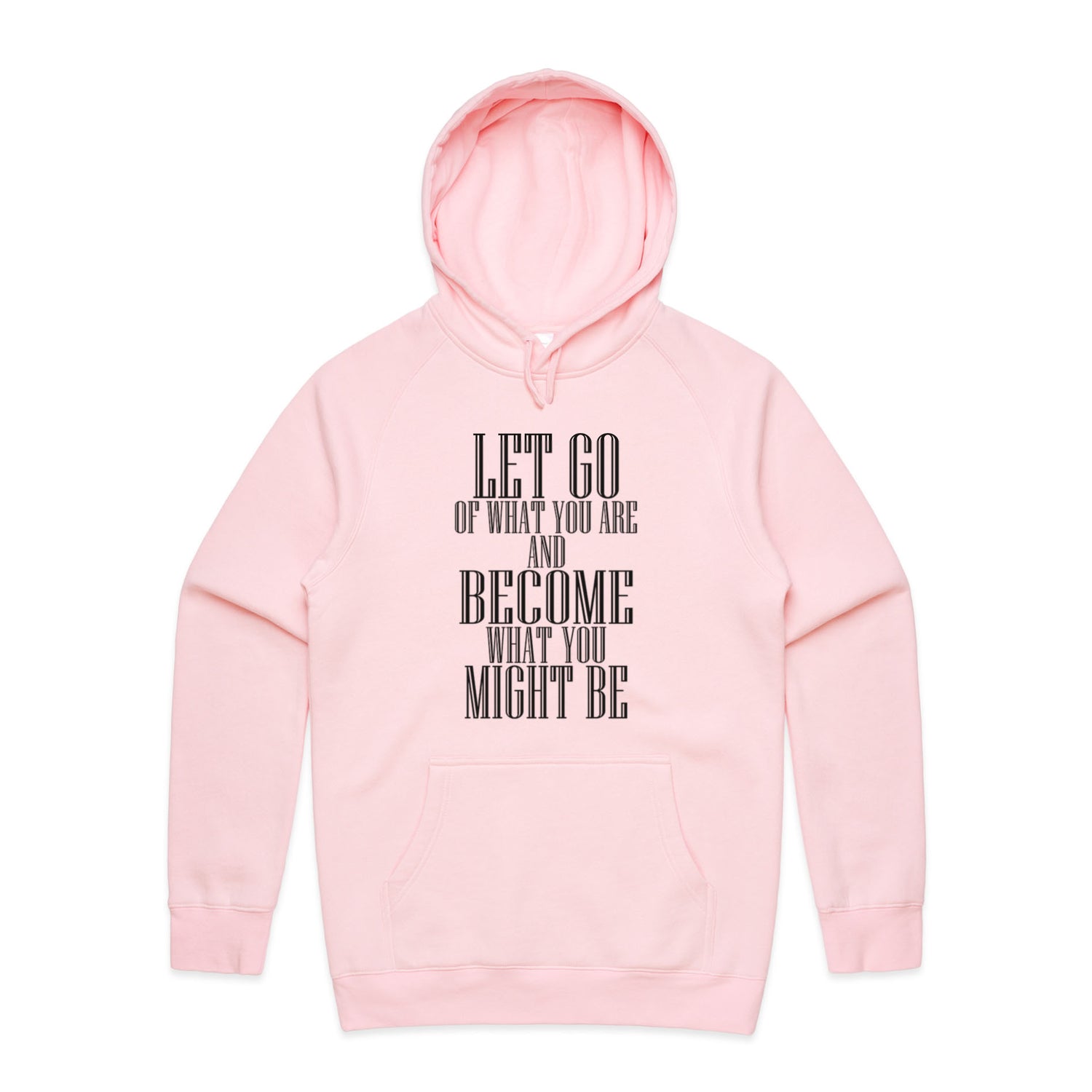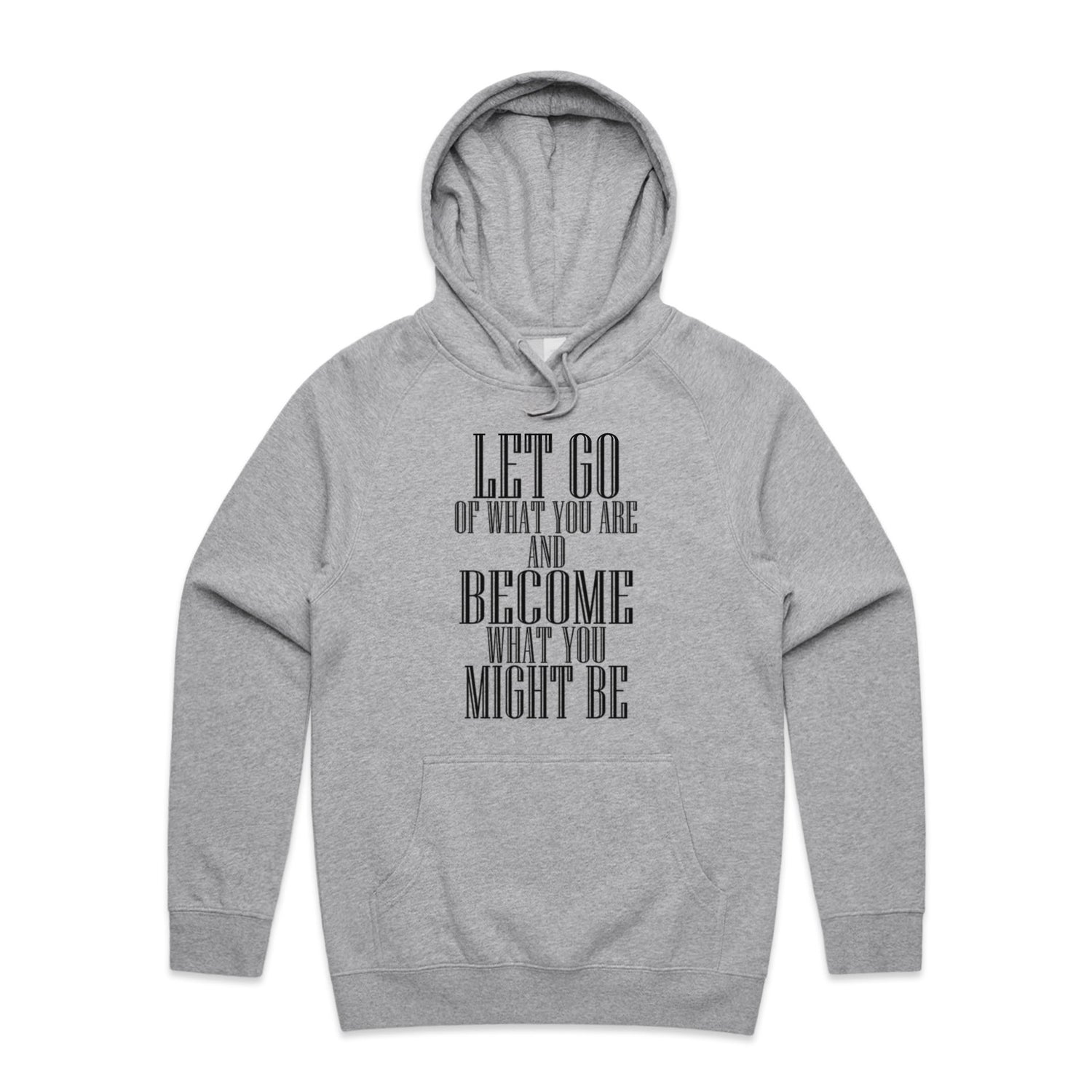 The Hoodies Let Go of What You are – Men's Hooded Sweatshirt is a high-quality men's hooded sweatshirt, printed with black ink on the trusted AS Colour Supply Hood 5101. With a regular fit and mid-weight feel, it's crafted from a premium blend of 80% cotton and 20% polyester anti-pill fleece, making it a durable and comfortable staple for any wardrobe. The pullover design features raglan sleeves, a lined hood with tonal drawcord, ribbed sleeve cuffs, and a roomy kangaroo pocket — all designed to keep you warm while looking effortlessly sharp.