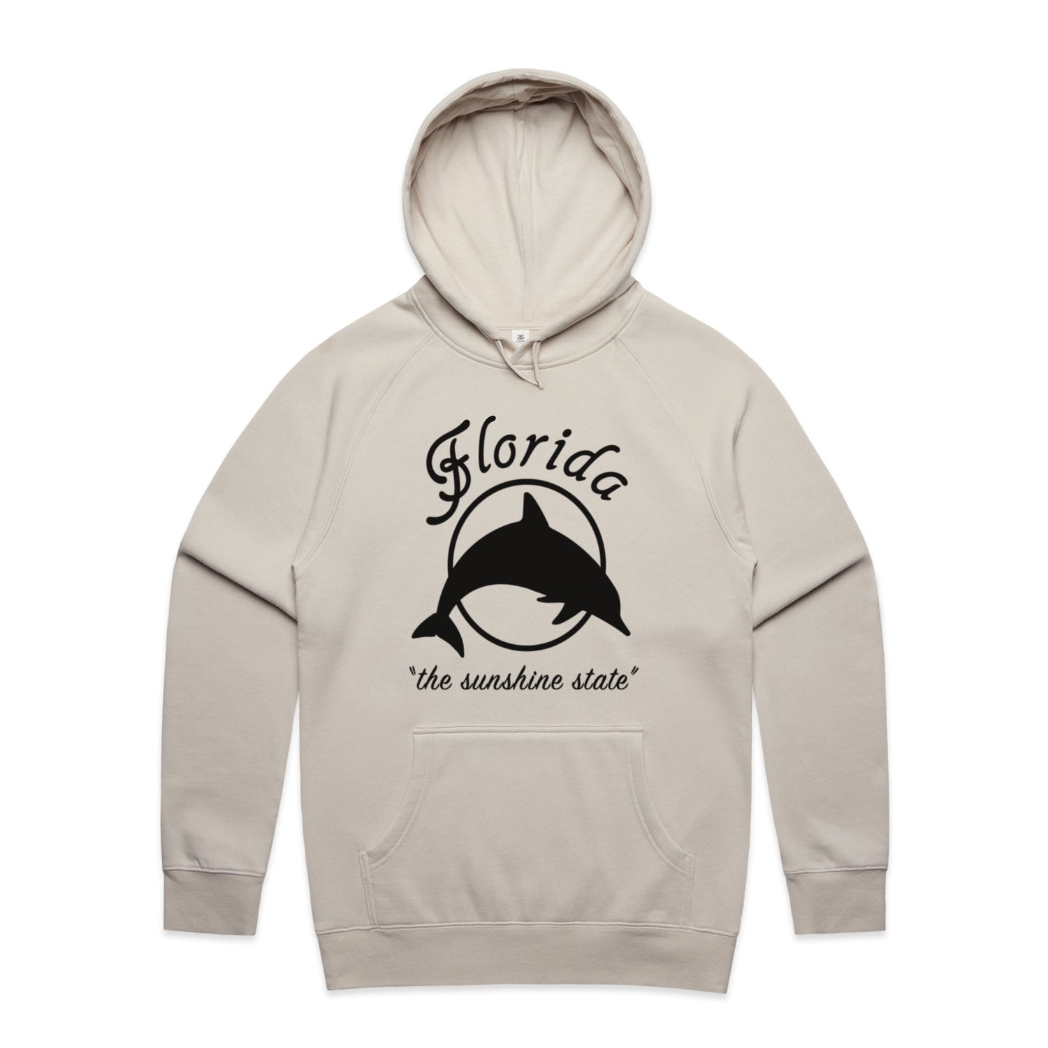 The Hoodies Florida – Men's Hooded Sweatshirt is a high-quality men's hooded sweatshirt, printed with black ink on the trusted AS Colour Supply Hood 5101. With a regular fit and mid-weight feel, it's crafted from a premium blend of 80% cotton and 20% polyester anti-pill fleece, making it a durable and comfortable staple for any wardrobe. The pullover design features raglan sleeves, a lined hood with tonal drawcord, ribbed sleeve cuffs, and a roomy kangaroo pocket — all designed to keep you warm while looking effortlessly sharp.