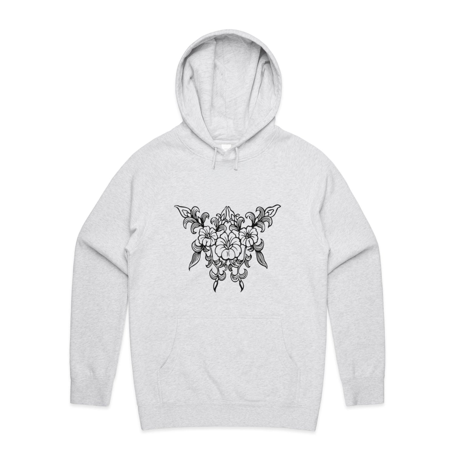 The Hoodies Flower Tattoo – Men's Hooded Sweatshirt is a high-quality men's hooded sweatshirt, printed with black ink on the trusted AS Colour Supply Hood 5101. With a regular fit and mid-weight feel, it's crafted from a premium blend of 80% cotton and 20% polyester anti-pill fleece, making it a durable and comfortable staple for any wardrobe. The pullover design features raglan sleeves, a lined hood with tonal drawcord, ribbed sleeve cuffs, and a roomy kangaroo pocket — all designed to keep you warm while looking effortlessly sharp.