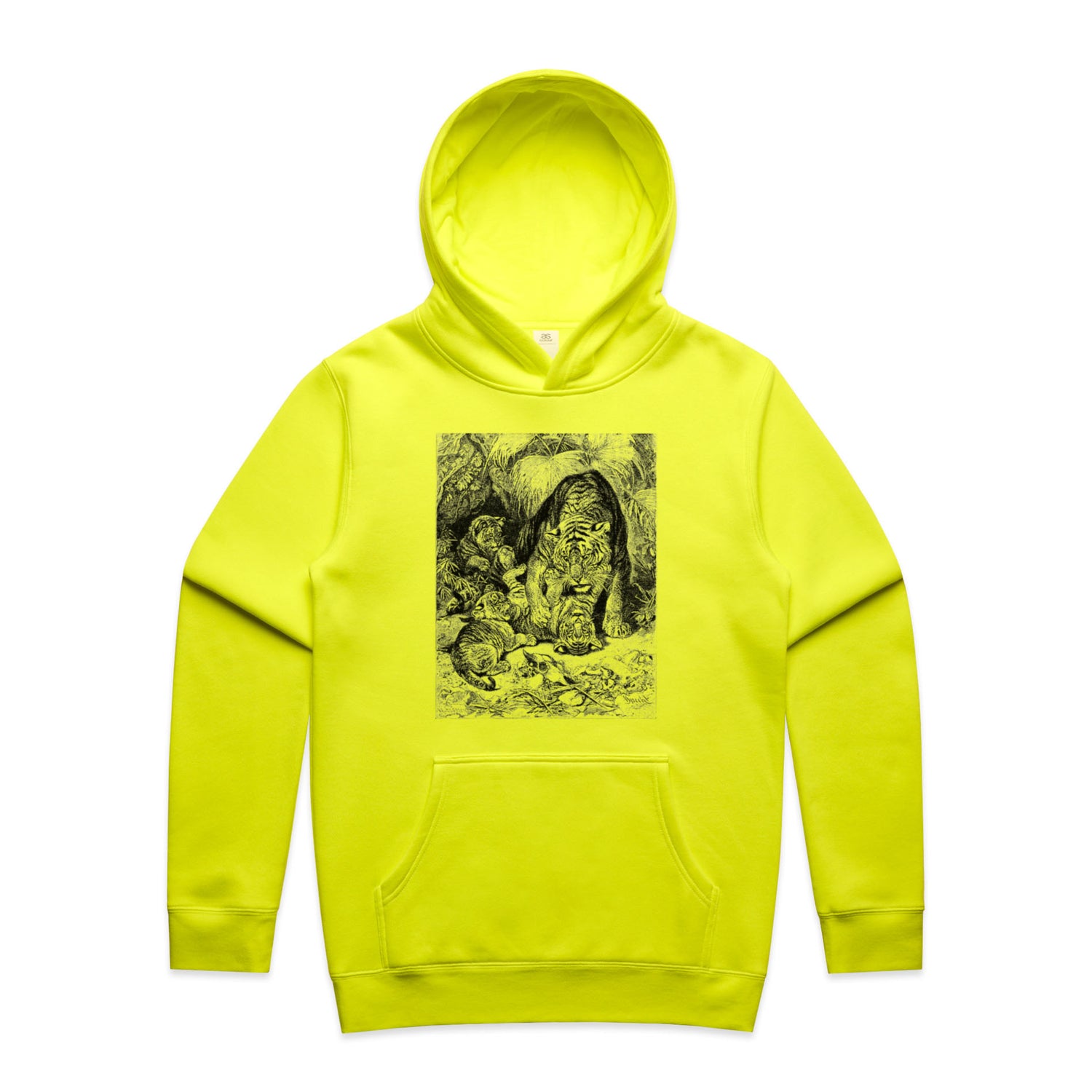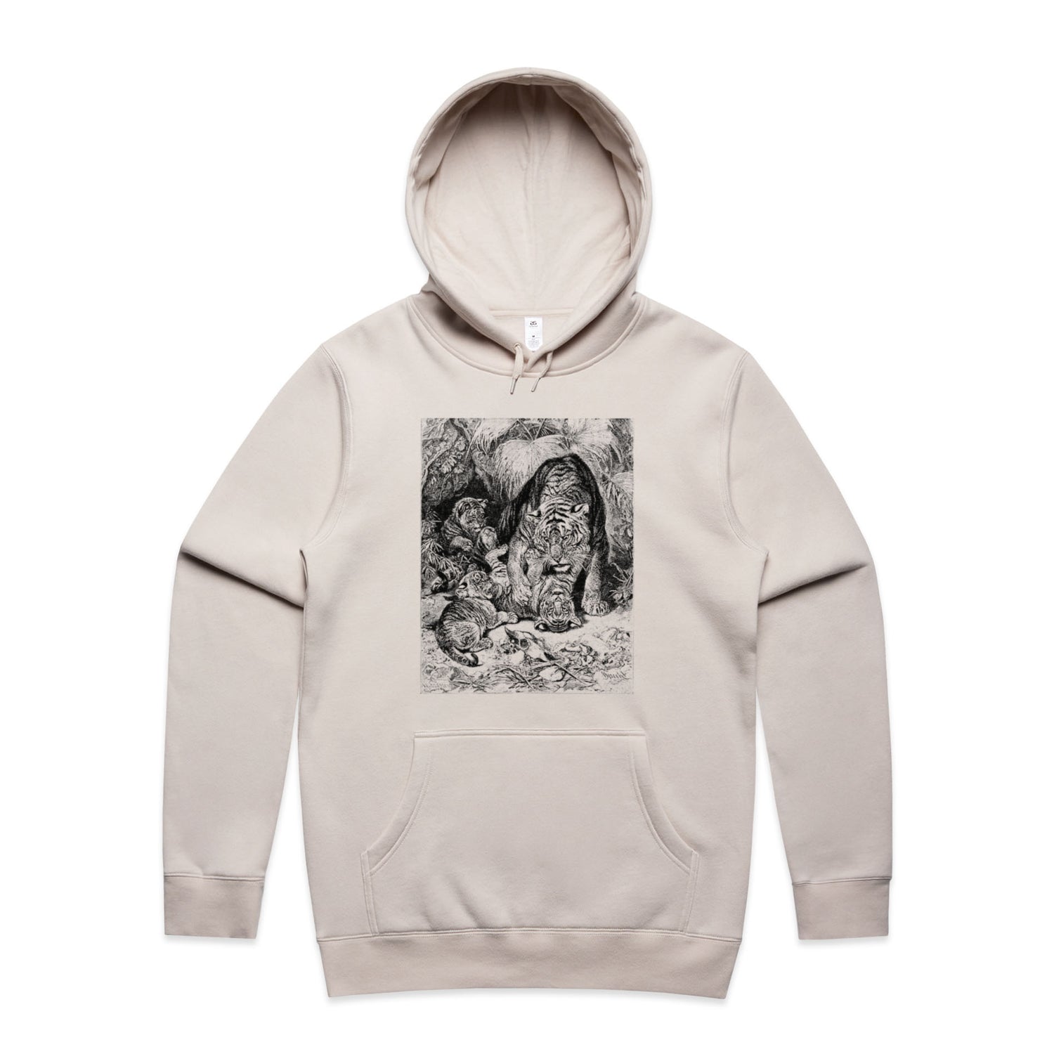 Perfect for eco-conscious trendsetters with its eco-friendly cotton/poly blend, this mid-heavy weight beauty is all about those funky vibes. Whether you’re chilling at Bondi Beach or hitting the streets of Melbourne, this hoodie is your new best mate for any adventure. So, chuck it on, live it up, and let those tiger stripes lead the way!