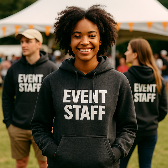 Need hoodies for your next event? We do large runs, tight turnarounds, and fully custom prints to bring your vision to life. Ideal for volunteers, crew or merch.