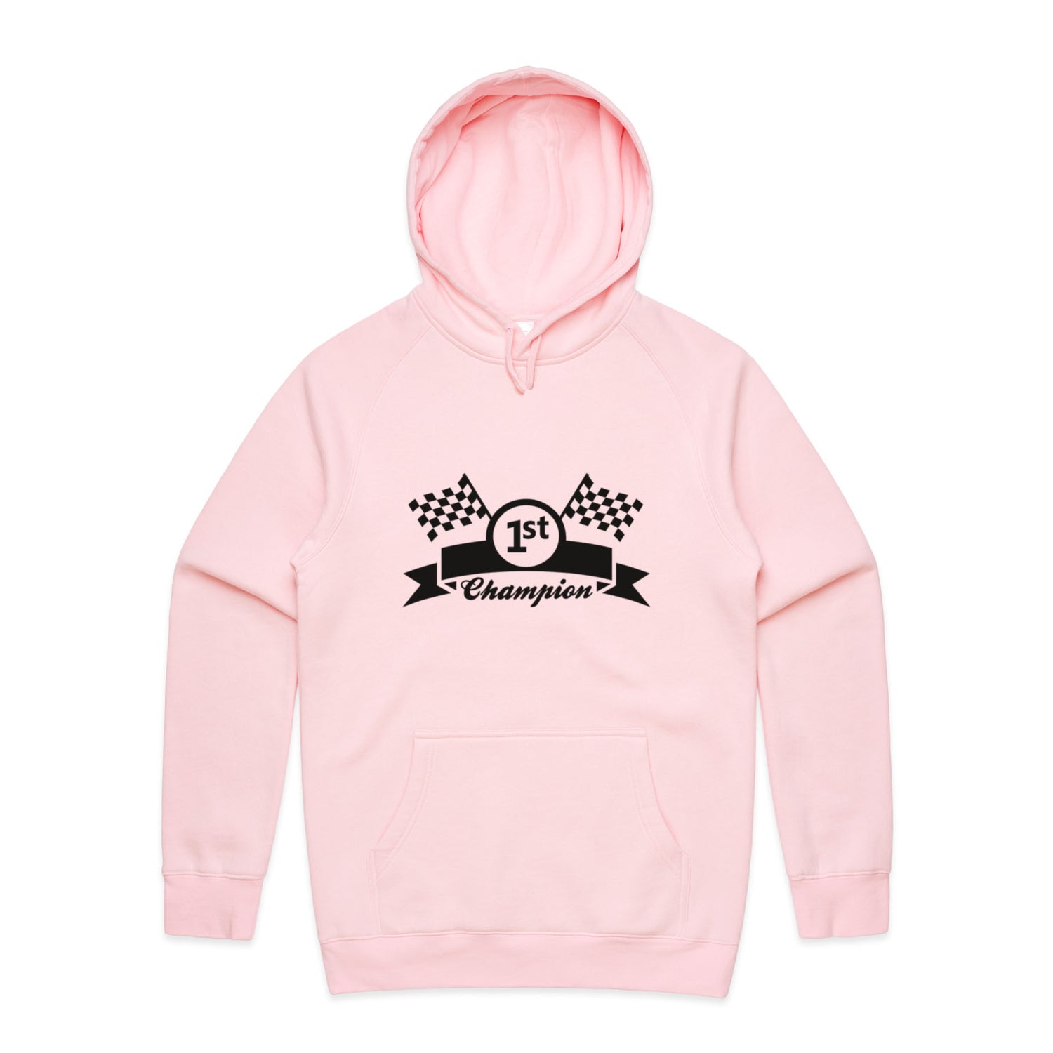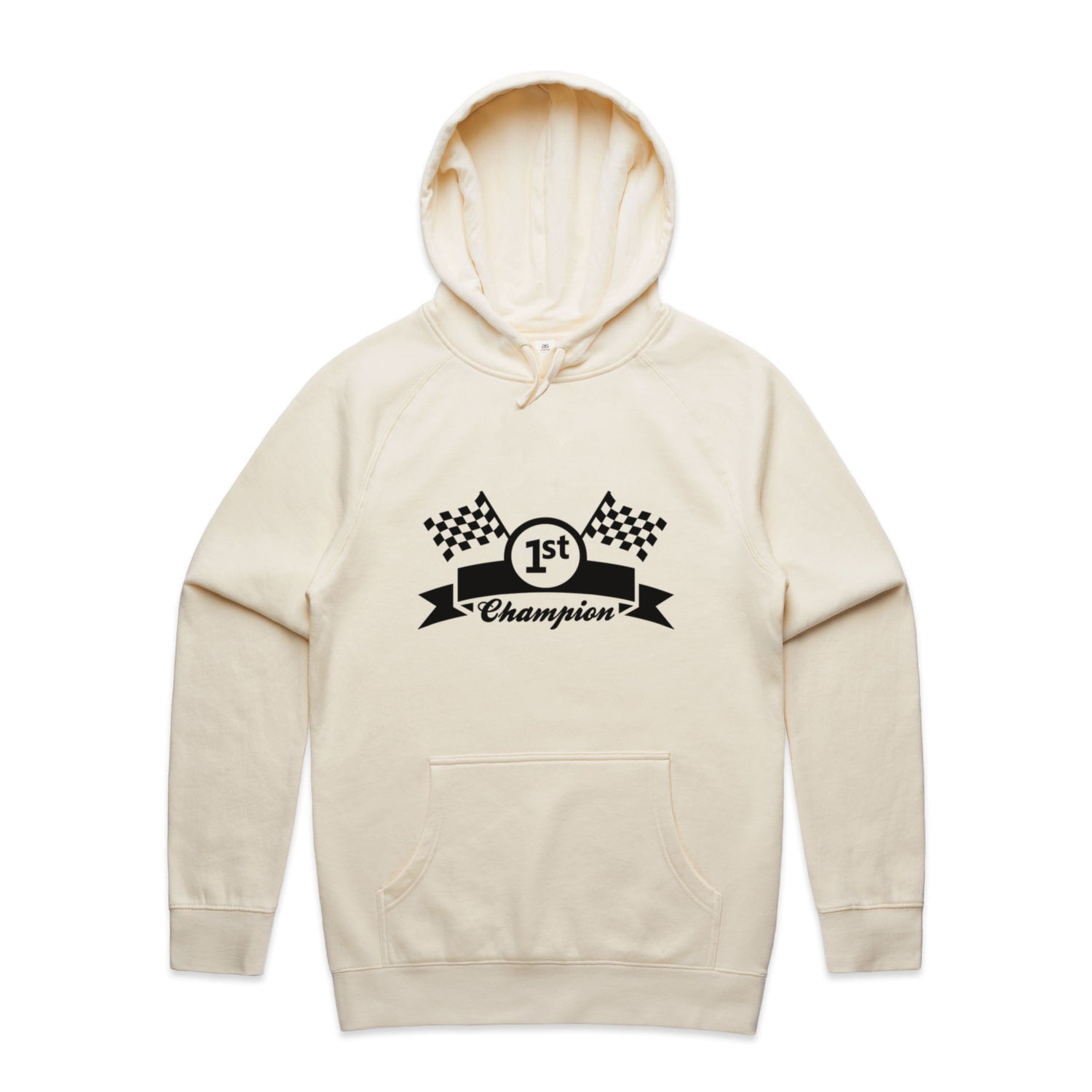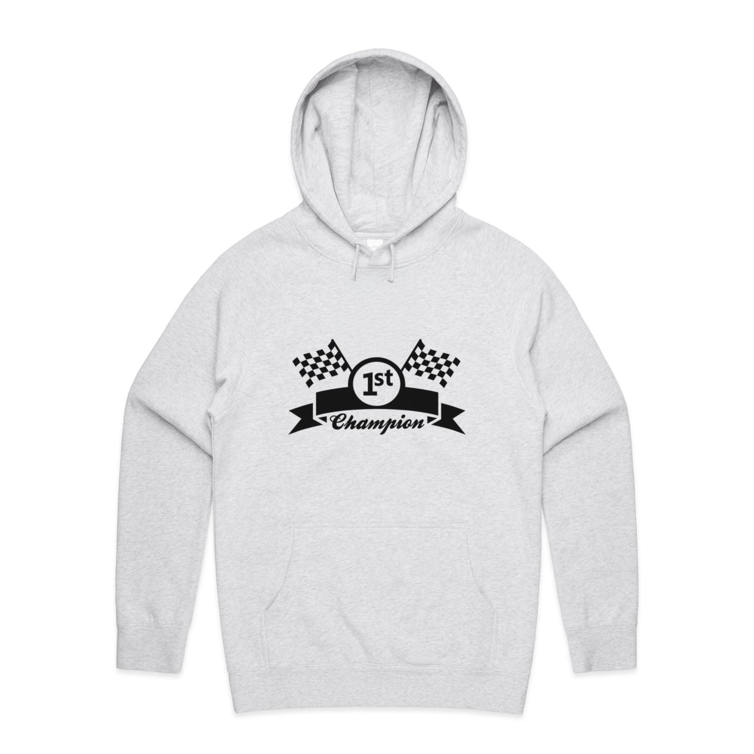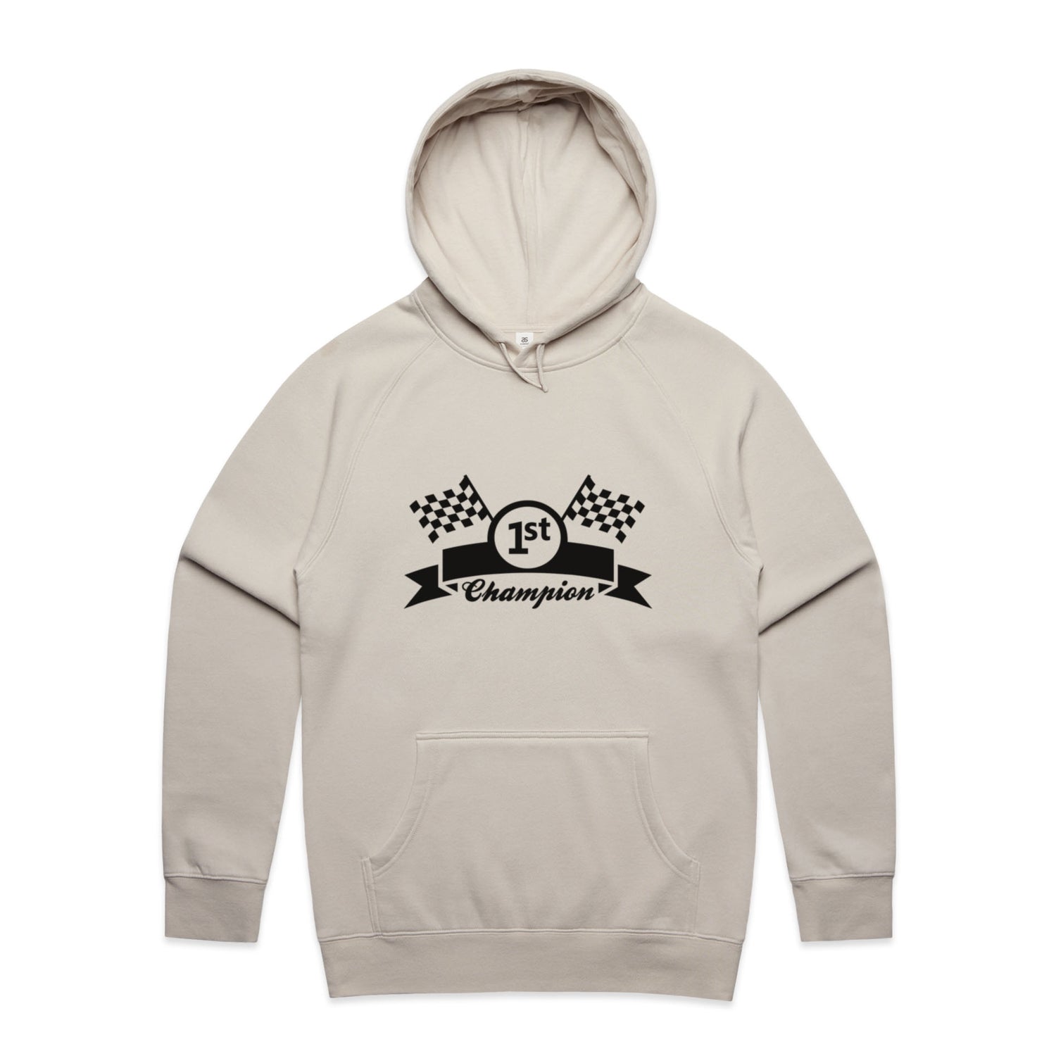 The Hoodies 1st Place Champion – Men's Hooded Sweatshirt is a high-quality men's hooded sweatshirt, printed with black ink on the trusted AS Colour Supply Hood 5101. With a regular fit and mid-weight feel, it's crafted from a premium blend of 80% cotton and 20% polyester anti-pill fleece, making it a durable and comfortable staple for any wardrobe. The pullover design features raglan sleeves, a lined hood with tonal drawcord, ribbed sleeve cuffs, and a roomy kangaroo pocket — all designed to keep you warm while looking effortlessly sharp.