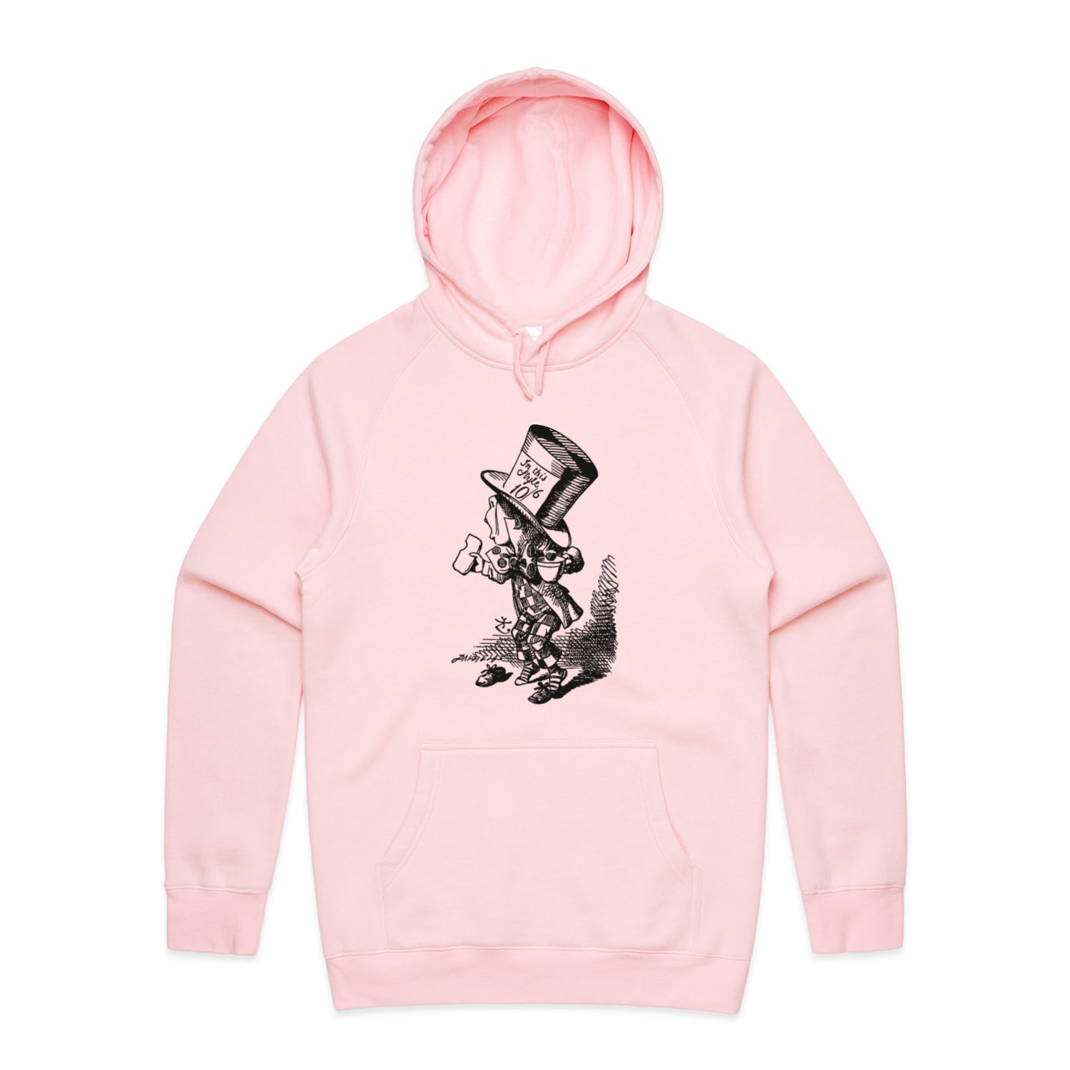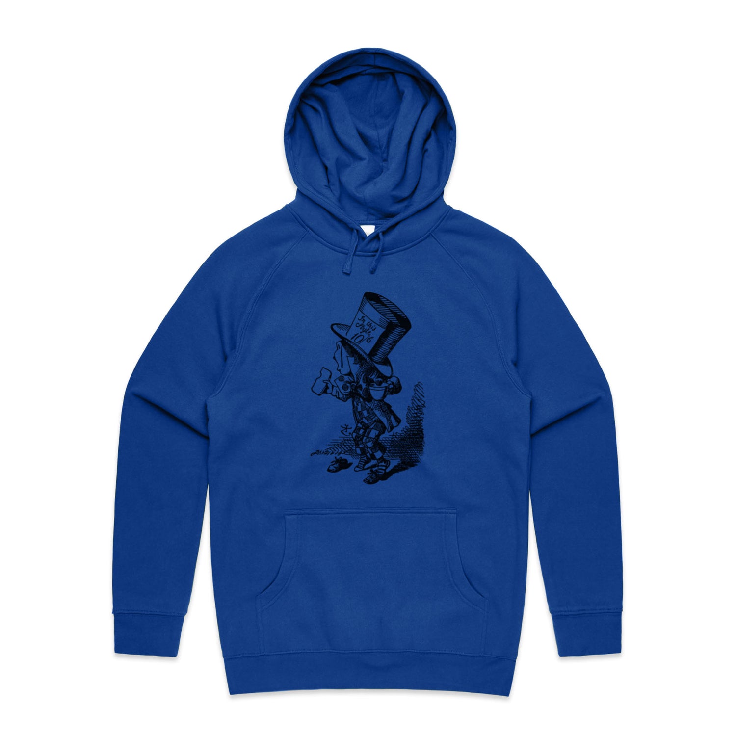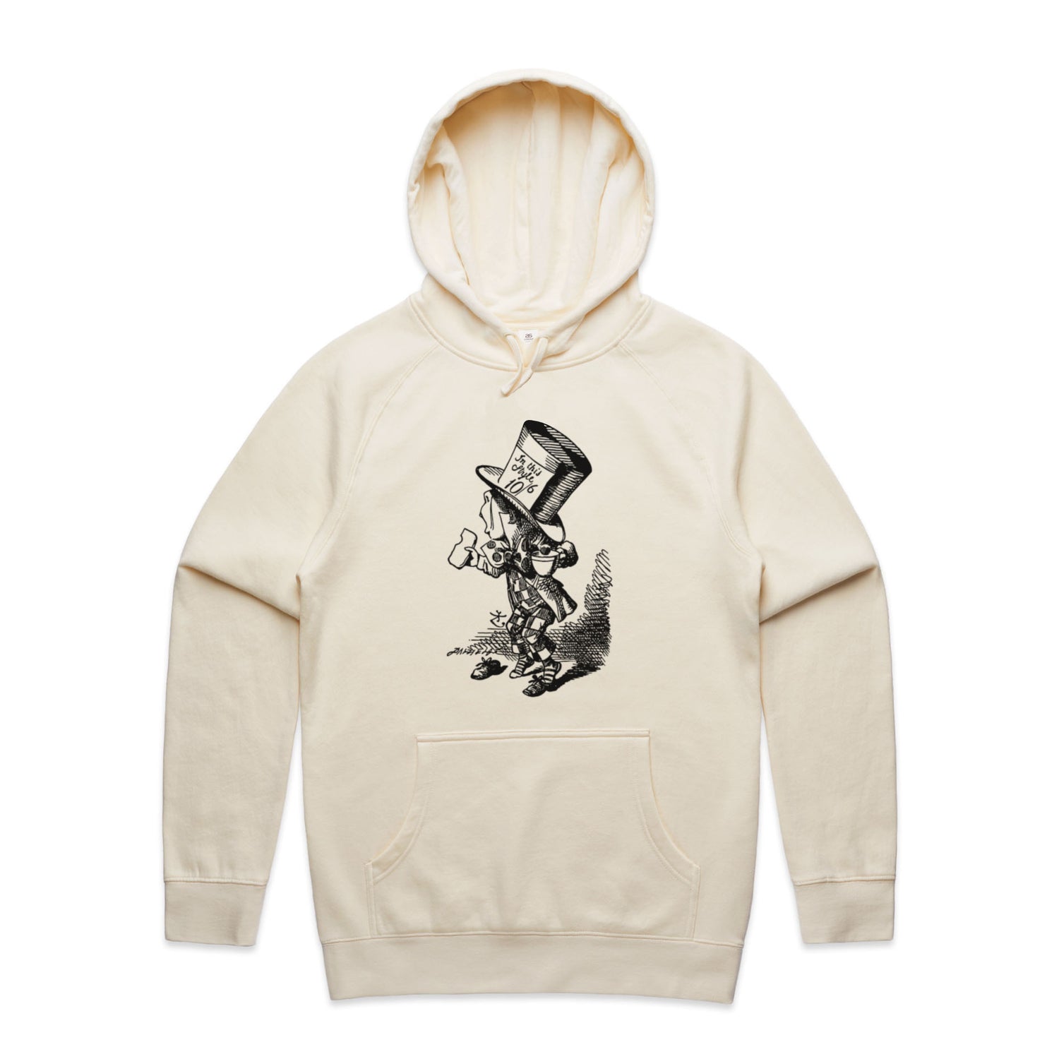 The Hoodies Alice in Wonderland - Madhatter – Men's Hooded Sweatshirt is a high-quality men's hooded sweatshirt, printed with black ink on the trusted AS Colour Supply Hood 5101. With a regular fit and mid-weight feel, it's crafted from a premium blend of 80% cotton and 20% polyester anti-pill fleece, making it a durable and comfortable staple for any wardrobe. The pullover design features raglan sleeves, a lined hood with tonal drawcord, ribbed sleeve cuffs, and a roomy kangaroo pocket — all designed to keep you warm while looking effortlessly sharp.