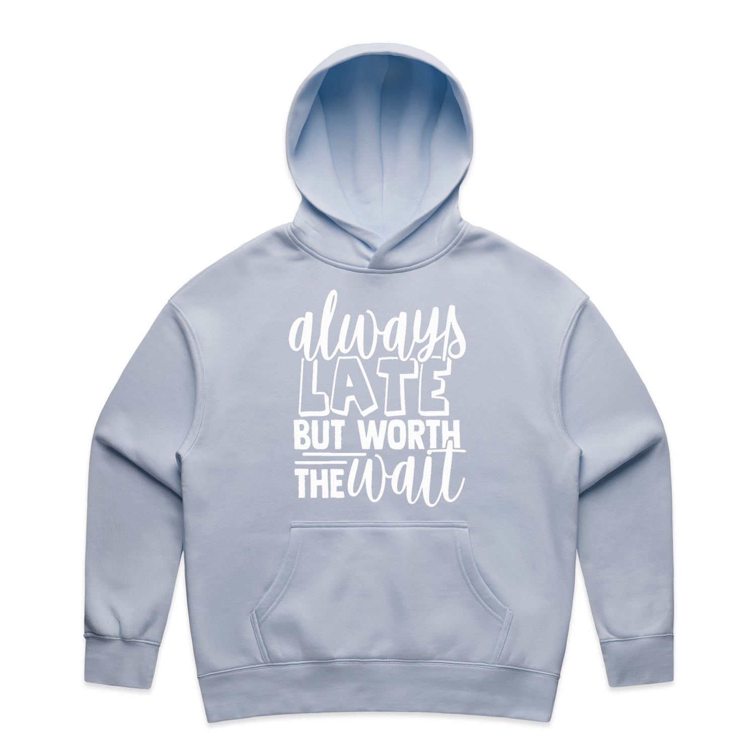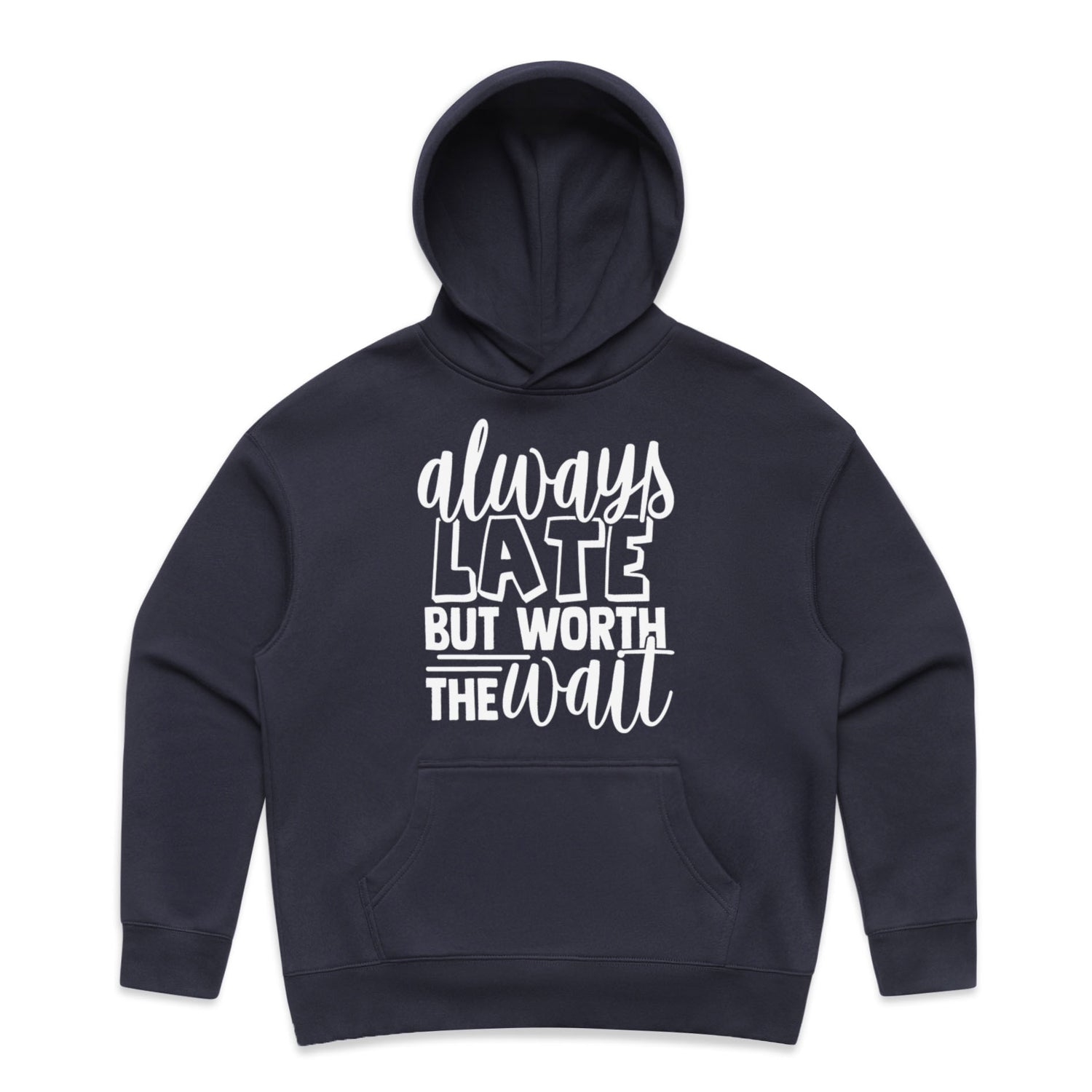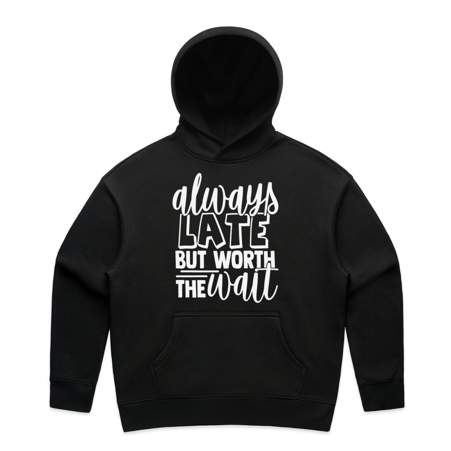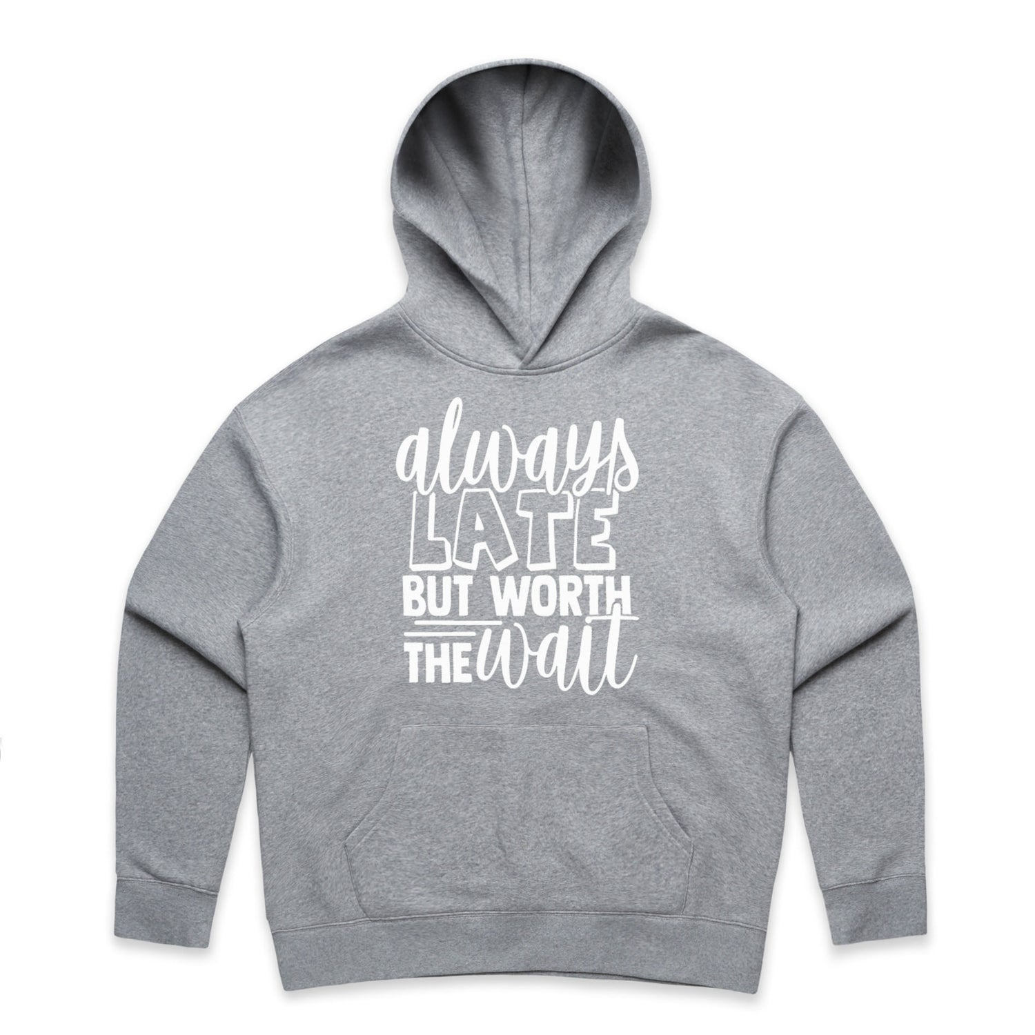 Throw on this hoodie, bust out your fave playlist, and let the world know that you're not just late—you’re arriving at exactly the right moment.