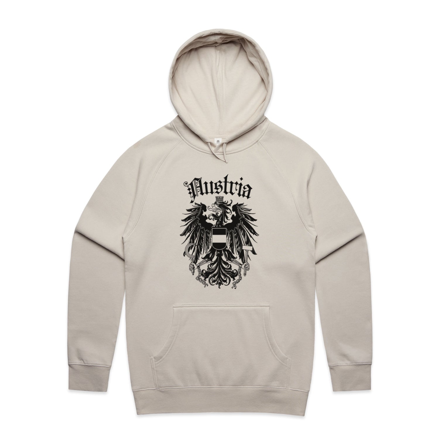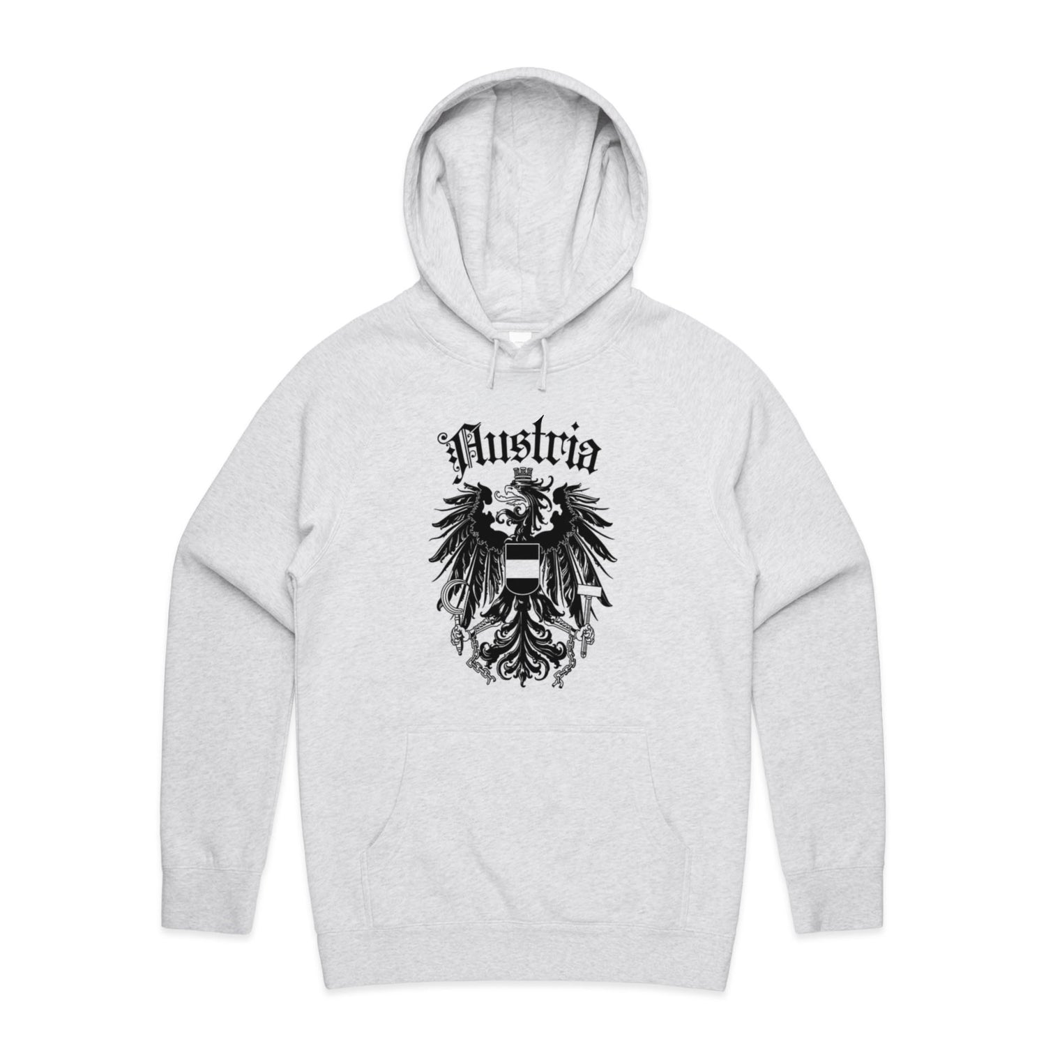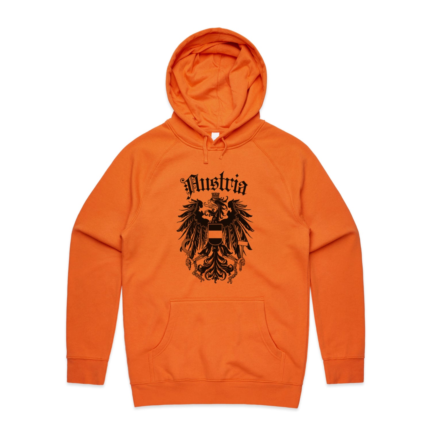 The Hoodies Austria Crest – Men's Hooded Sweatshirt is a high-quality men's hooded sweatshirt, printed with black ink on the trusted AS Colour Supply Hood 5101. With a regular fit and mid-weight feel, it's crafted from a premium blend of 80% cotton and 20% polyester anti-pill fleece, making it a durable and comfortable staple for any wardrobe. The pullover design features raglan sleeves, a lined hood with tonal drawcord, ribbed sleeve cuffs, and a roomy kangaroo pocket — all designed to keep you warm while looking effortlessly sharp.