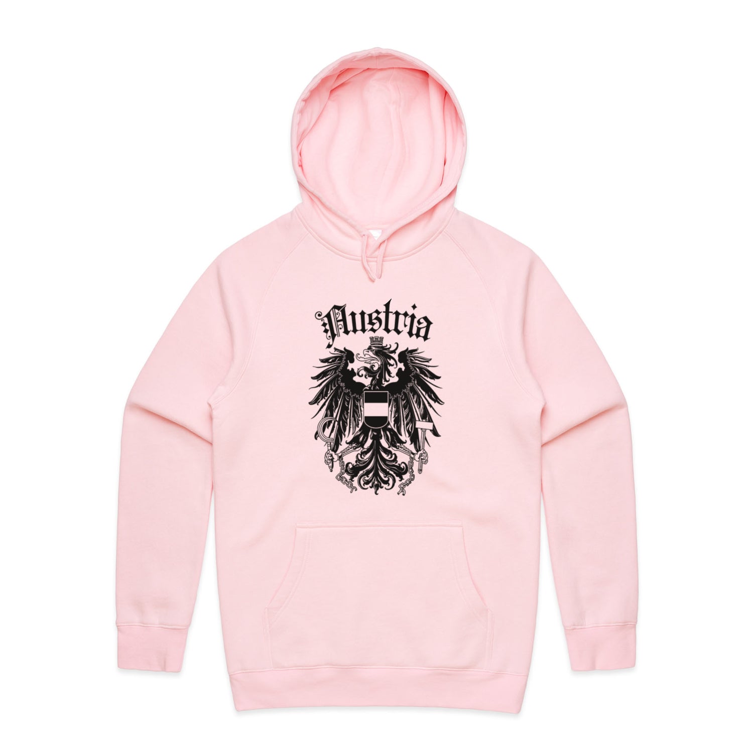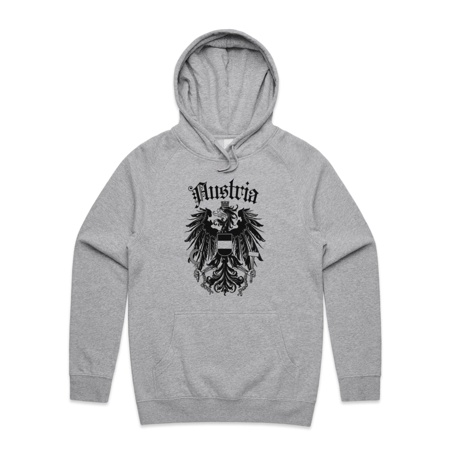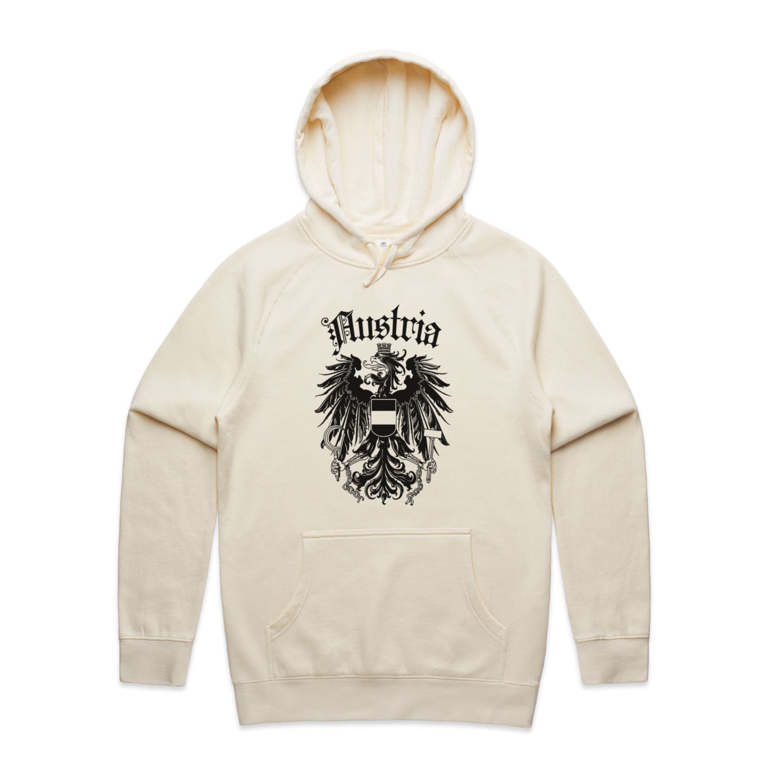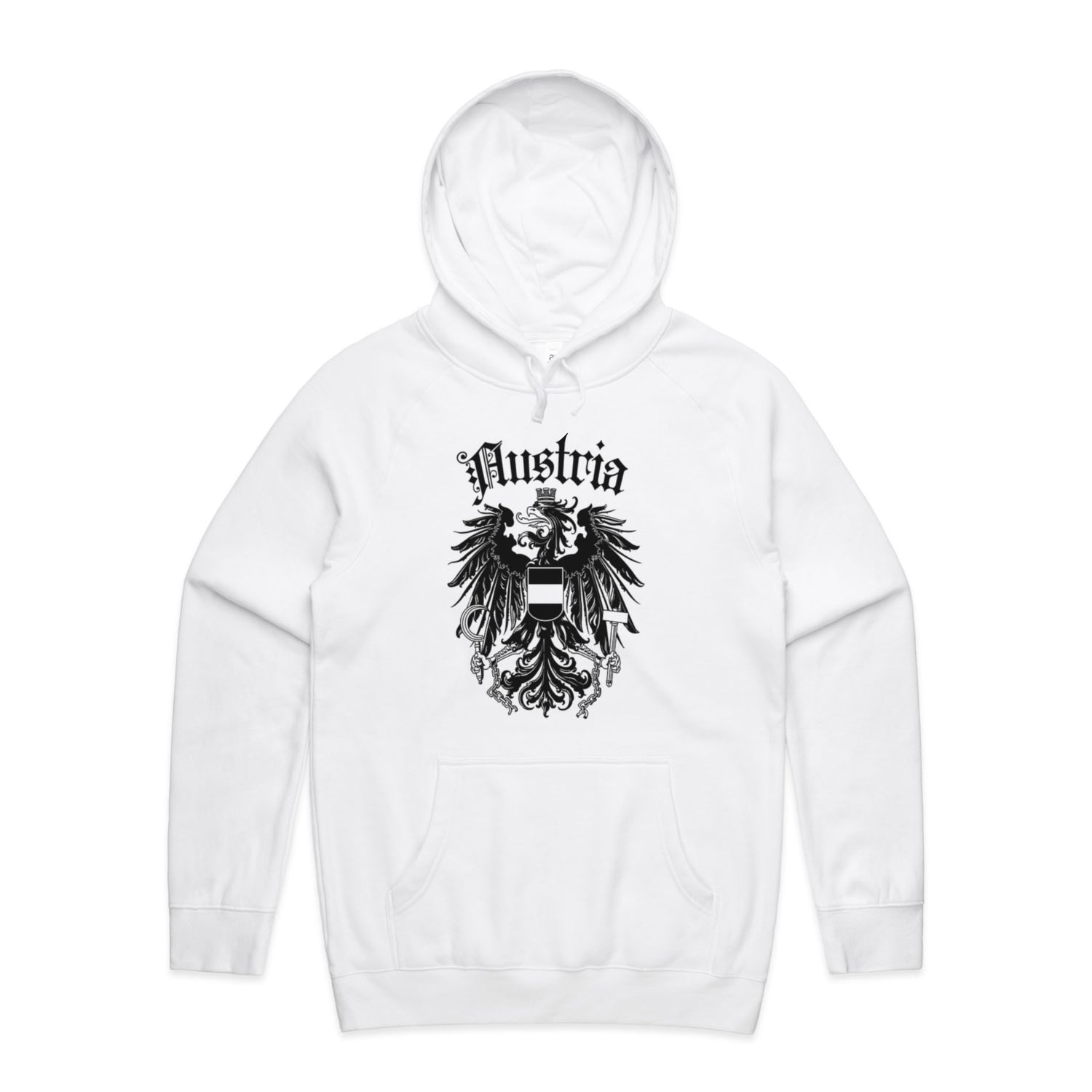 The Hoodies Austria Crest – Men's Hooded Sweatshirt is a high-quality men's hooded sweatshirt, printed with black ink on the trusted AS Colour Supply Hood 5101. With a regular fit and mid-weight feel, it's crafted from a premium blend of 80% cotton and 20% polyester anti-pill fleece, making it a durable and comfortable staple for any wardrobe. The pullover design features raglan sleeves, a lined hood with tonal drawcord, ribbed sleeve cuffs, and a roomy kangaroo pocket — all designed to keep you warm while looking effortlessly sharp.