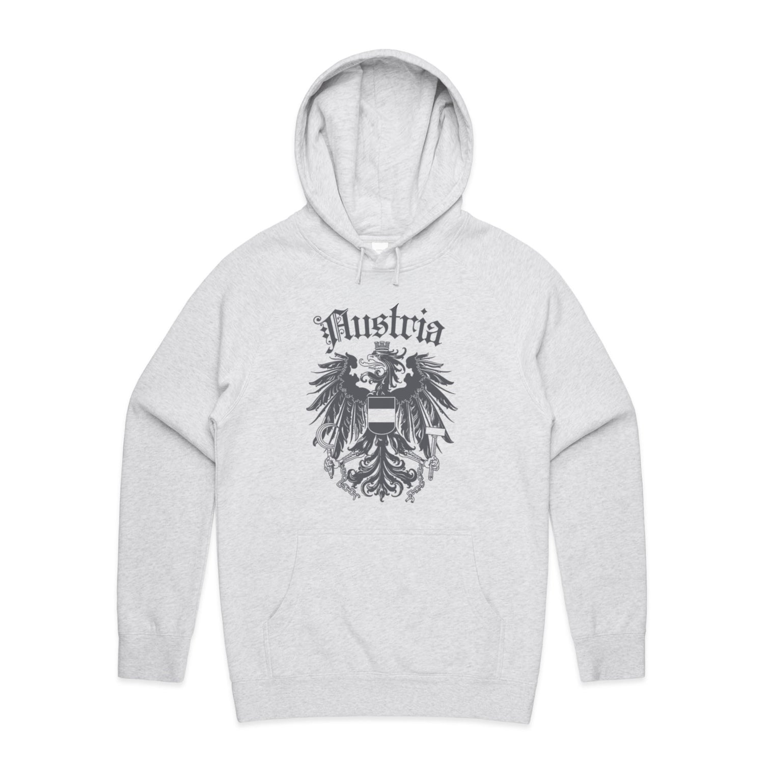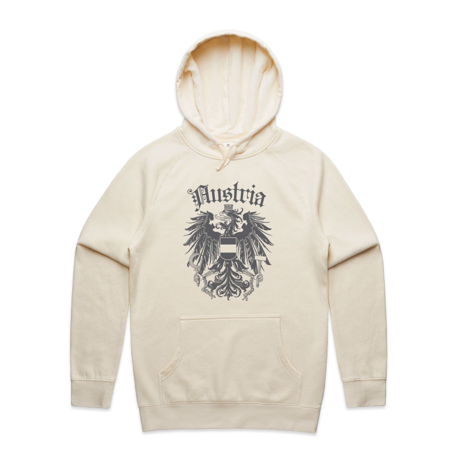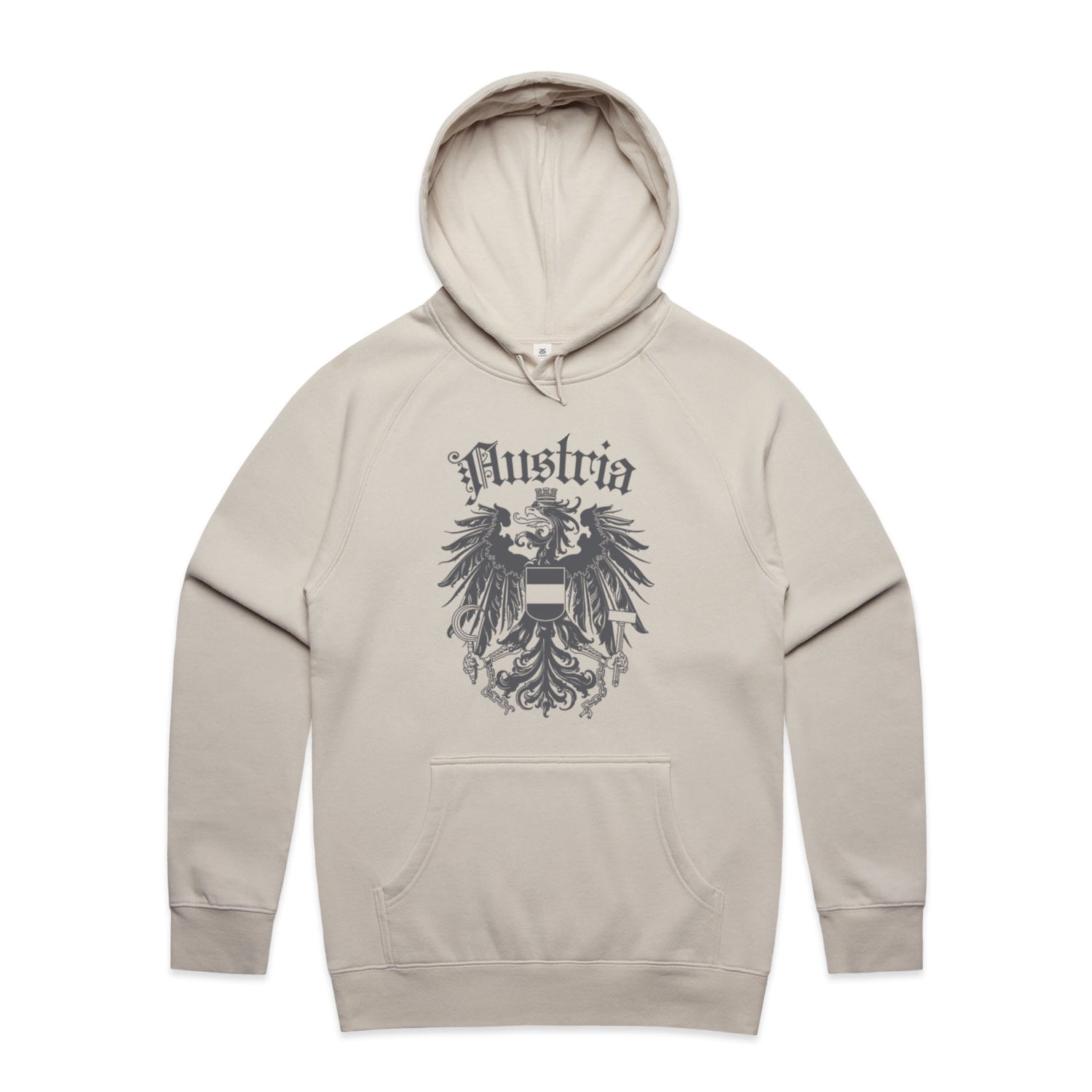 The Hoodies Austria Crest – Men's Hooded Sweatshirt is a high-quality men's hooded sweatshirt, printed with dark grey ink on the trusted AS Colour Supply Hood 5101. With a regular fit and mid-weight feel, it's crafted from a premium blend of 80% cotton and 20% polyester anti-pill fleece, making it a durable and comfortable staple for any wardrobe. The pullover design features raglan sleeves, a lined hood with tonal drawcord, ribbed sleeve cuffs, and a roomy kangaroo pocket — all designed to keep you warm while looking effortlessly sharp.