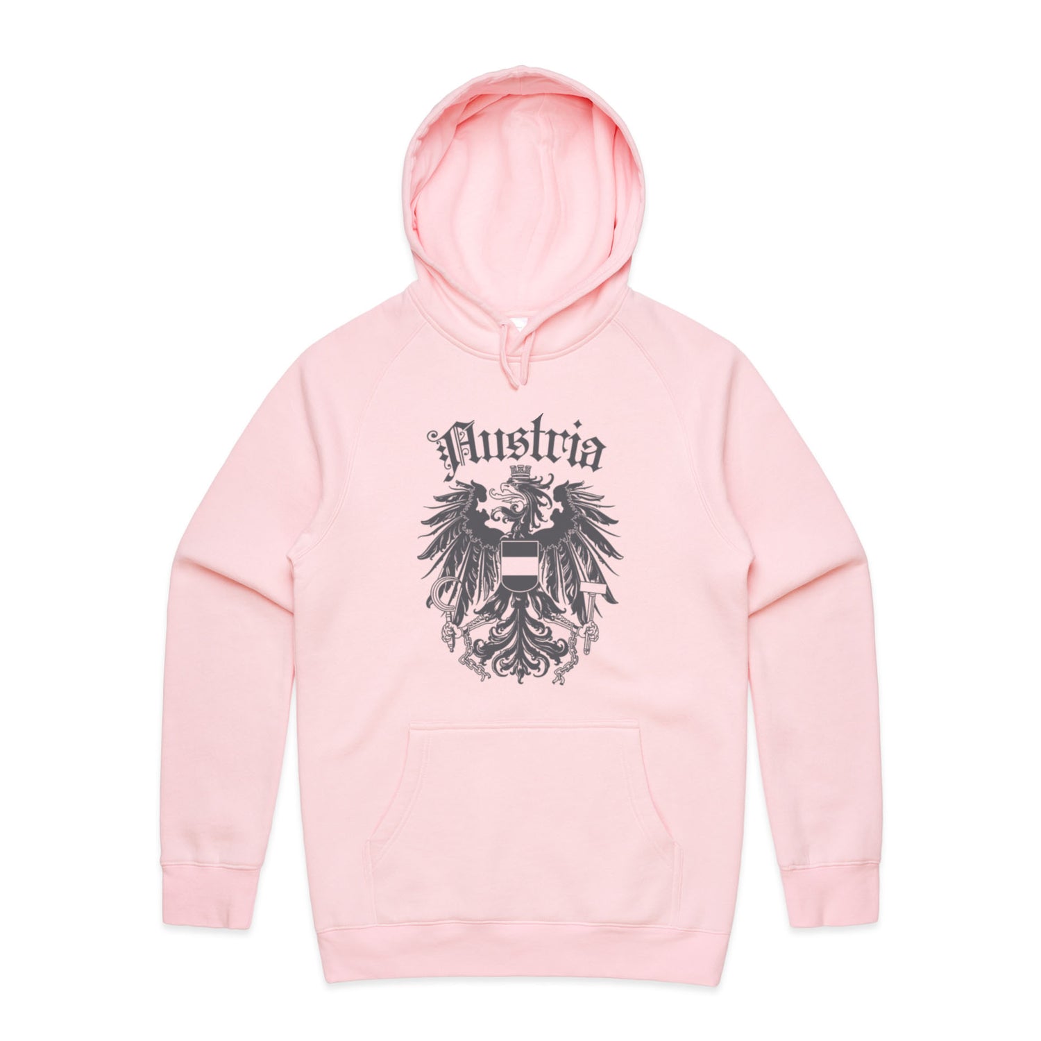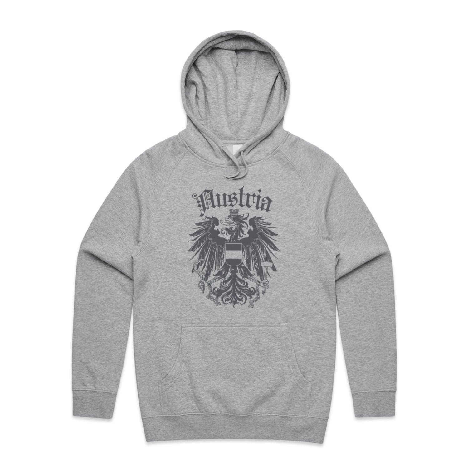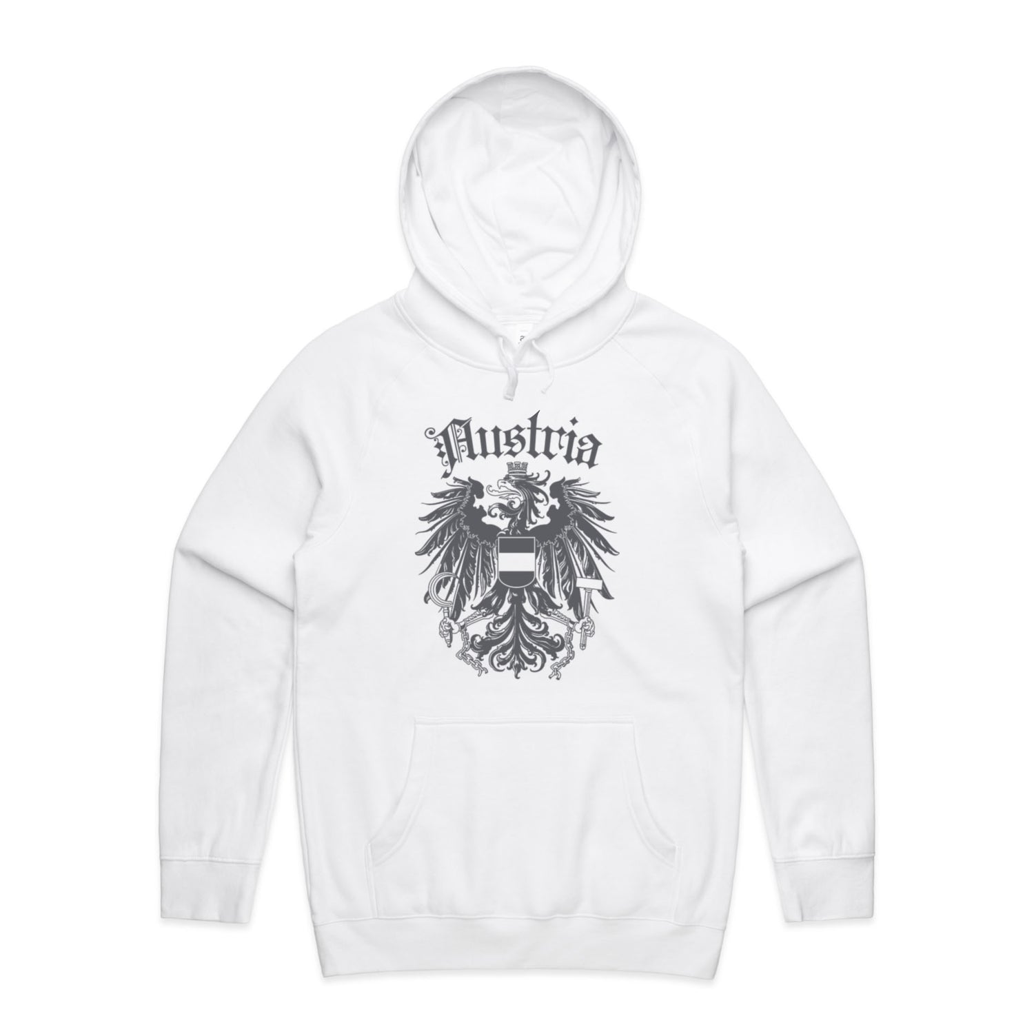 The Hoodies Austria Crest – Men's Hooded Sweatshirt is a high-quality men's hooded sweatshirt, printed with dark grey ink on the trusted AS Colour Supply Hood 5101. With a regular fit and mid-weight feel, it's crafted from a premium blend of 80% cotton and 20% polyester anti-pill fleece, making it a durable and comfortable staple for any wardrobe. The pullover design features raglan sleeves, a lined hood with tonal drawcord, ribbed sleeve cuffs, and a roomy kangaroo pocket — all designed to keep you warm while looking effortlessly sharp.