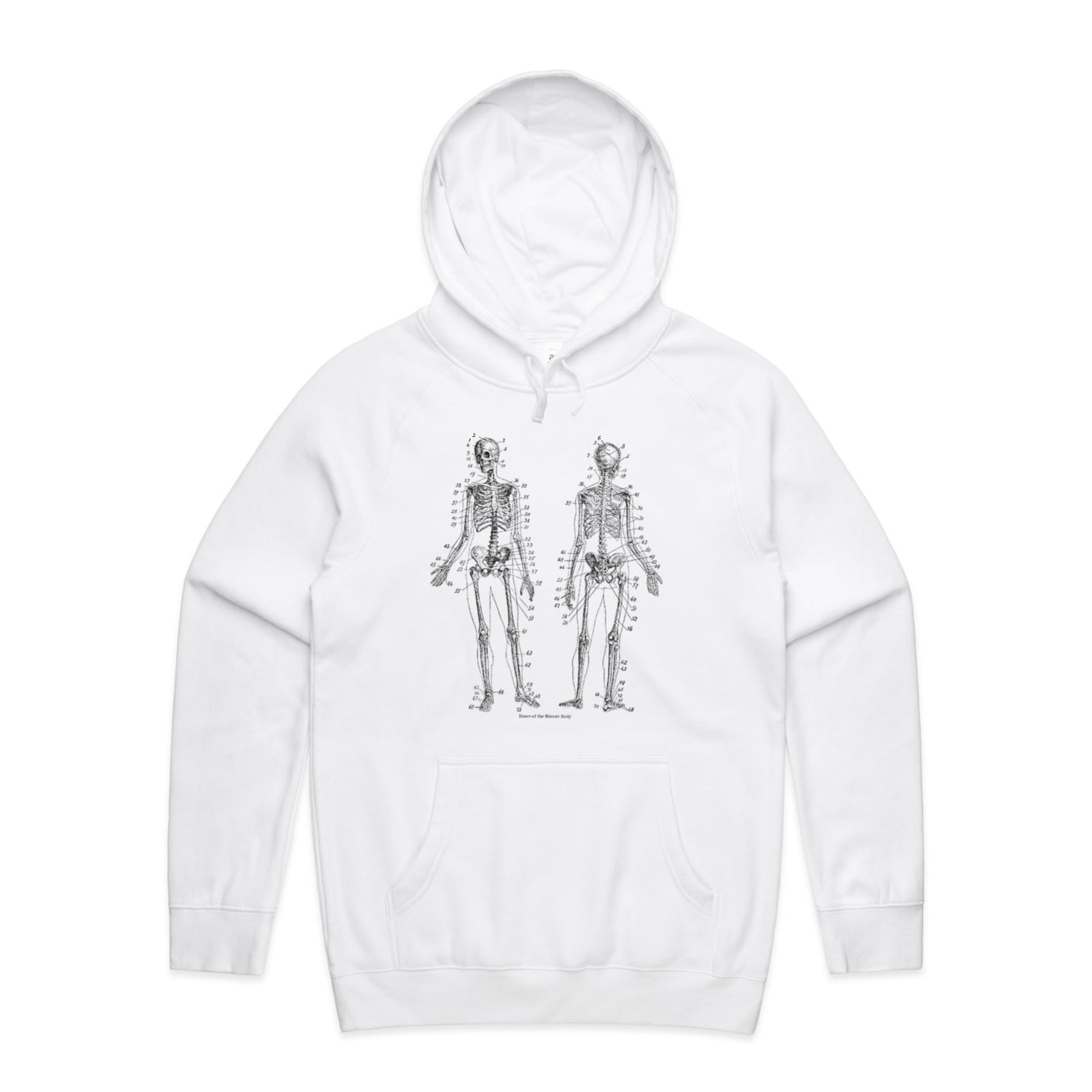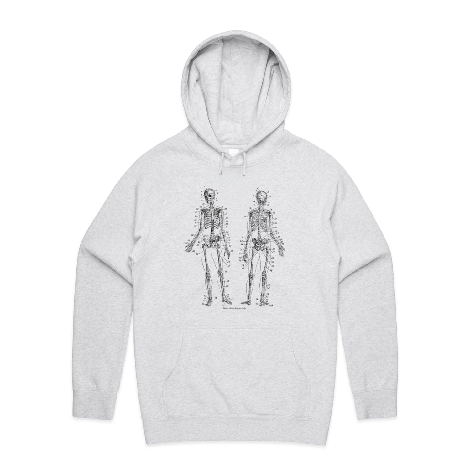The Hoodies Bones of the Human Body – Men's Hooded Sweatshirt is a high-quality men's hooded sweatshirt, printed with black ink on the trusted AS Colour Supply Hood 5101. With a regular fit and mid-weight feel, it's crafted from a premium blend of 80% cotton and 20% polyester anti-pill fleece, making it a durable and comfortable staple for any wardrobe. The pullover design features raglan sleeves, a lined hood with tonal drawcord, ribbed sleeve cuffs, and a roomy kangaroo pocket — all designed to keep you warm while looking effortlessly sharp.