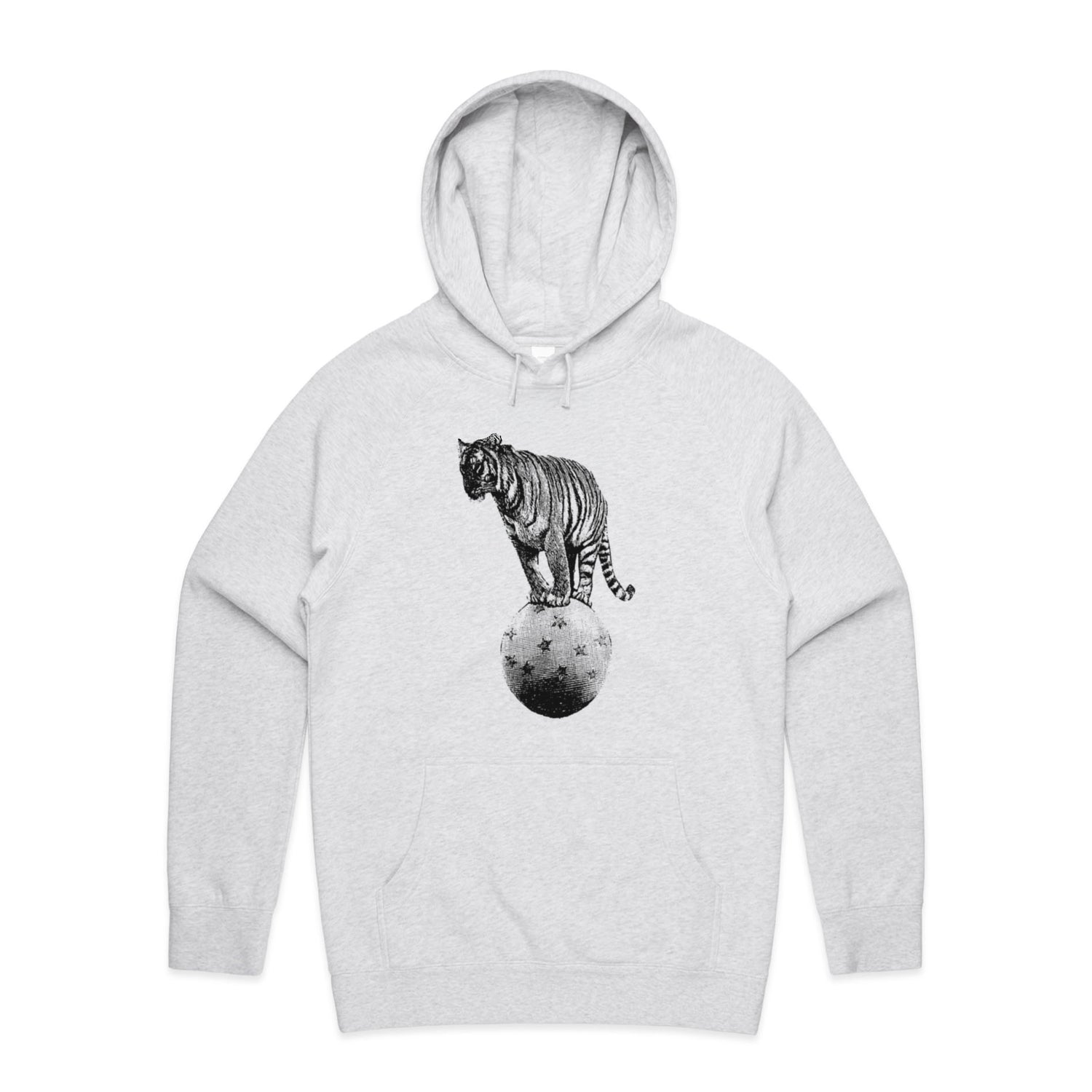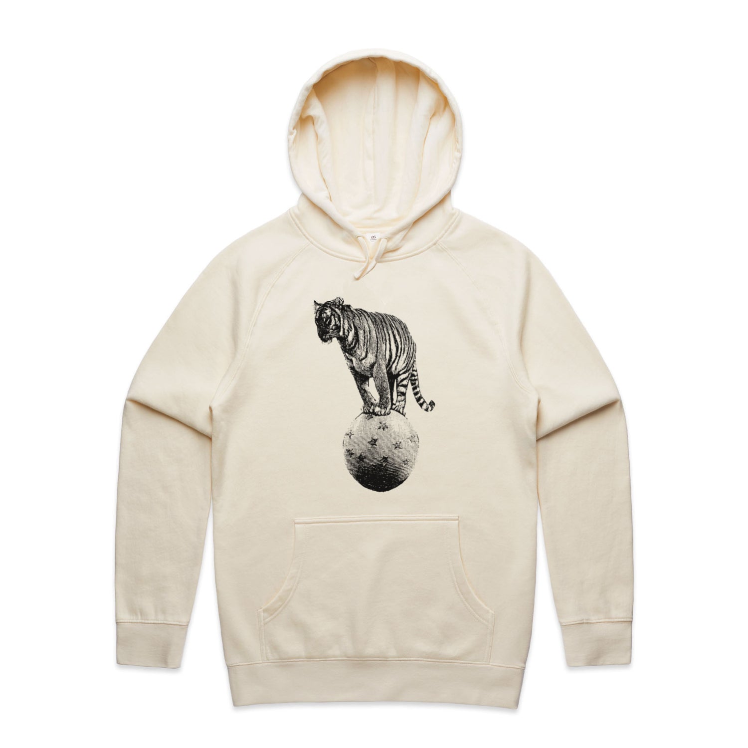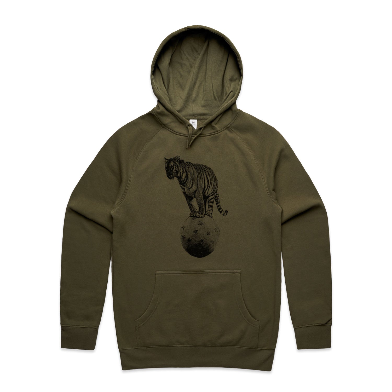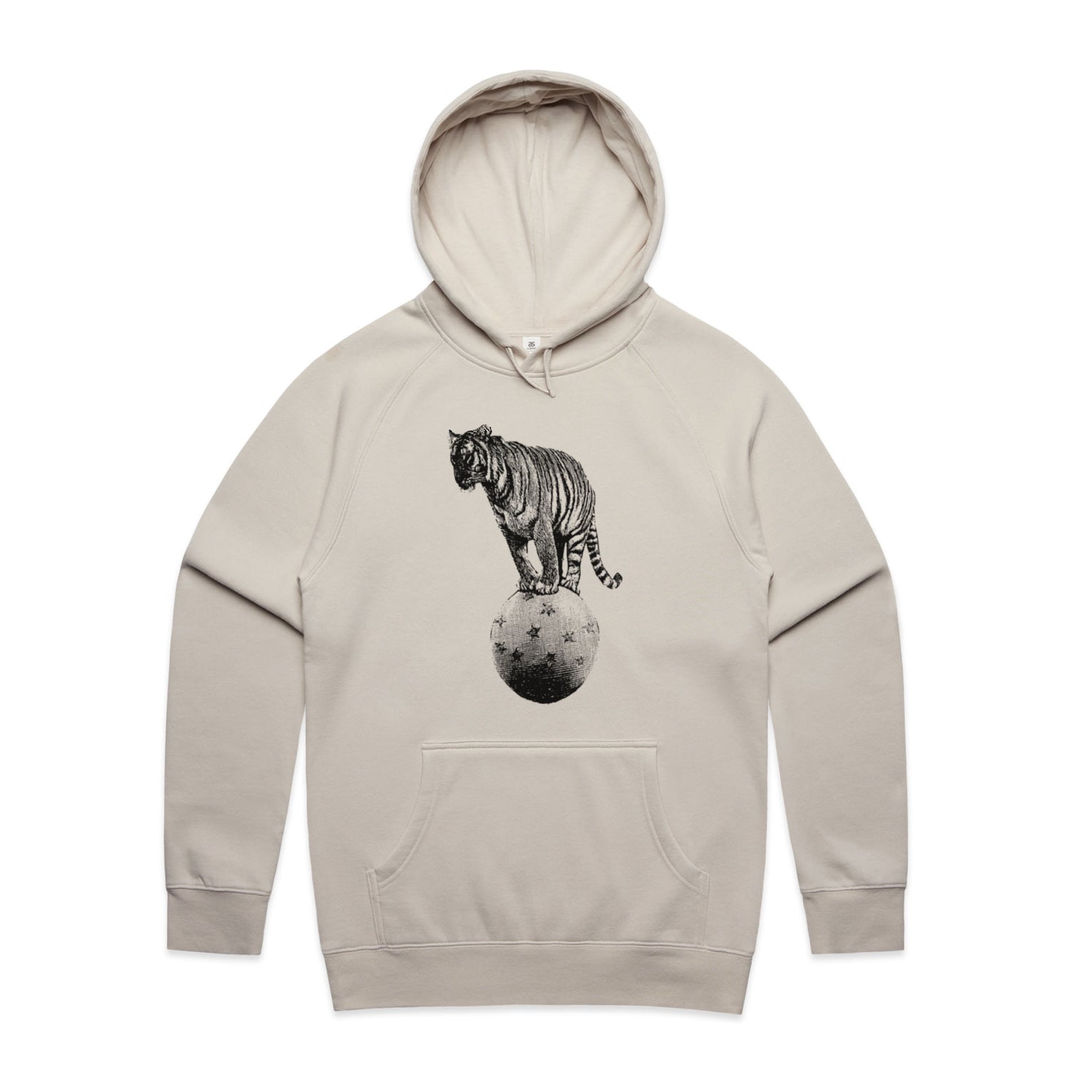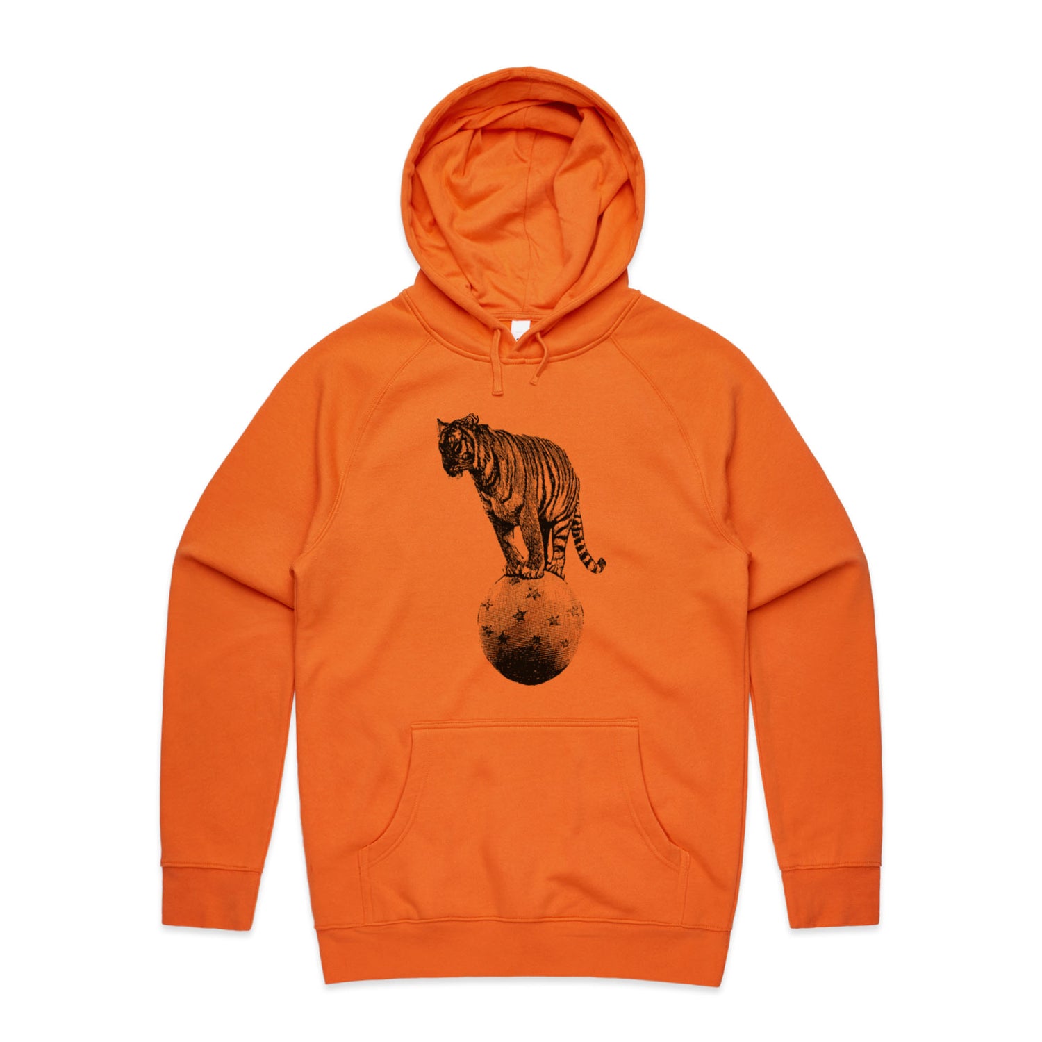 The Hoodies Circus Tiger – Men's Hooded Sweatshirt is a high-quality men's hooded sweatshirt, printed with black ink on the trusted AS Colour Supply Hood 5101. With a regular fit and mid-weight feel, it's crafted from a premium blend of 80% cotton and 20% polyester anti-pill fleece, making it a durable and comfortable staple for any wardrobe. The pullover design features raglan sleeves, a lined hood with tonal drawcord, ribbed sleeve cuffs, and a roomy kangaroo pocket — all designed to keep you warm while looking effortlessly sharp.