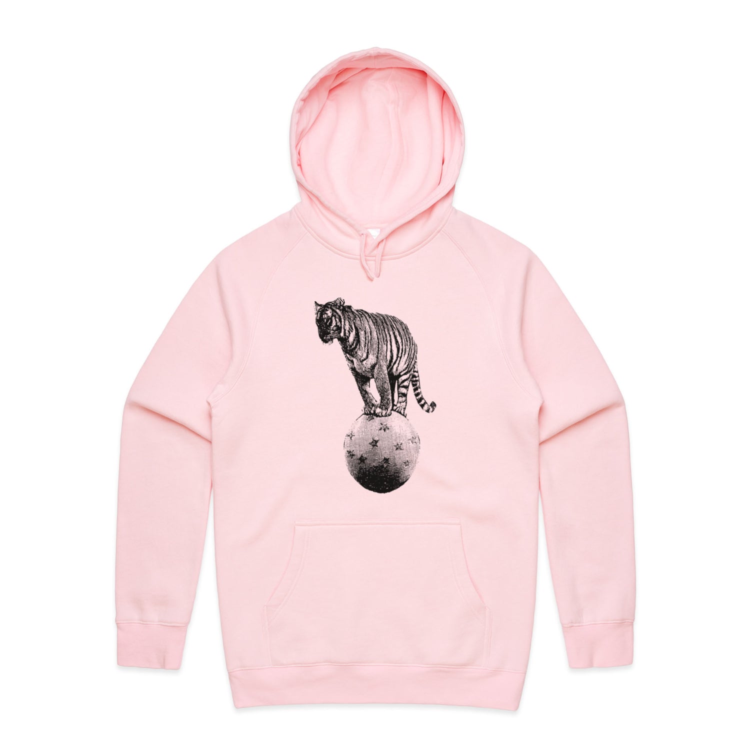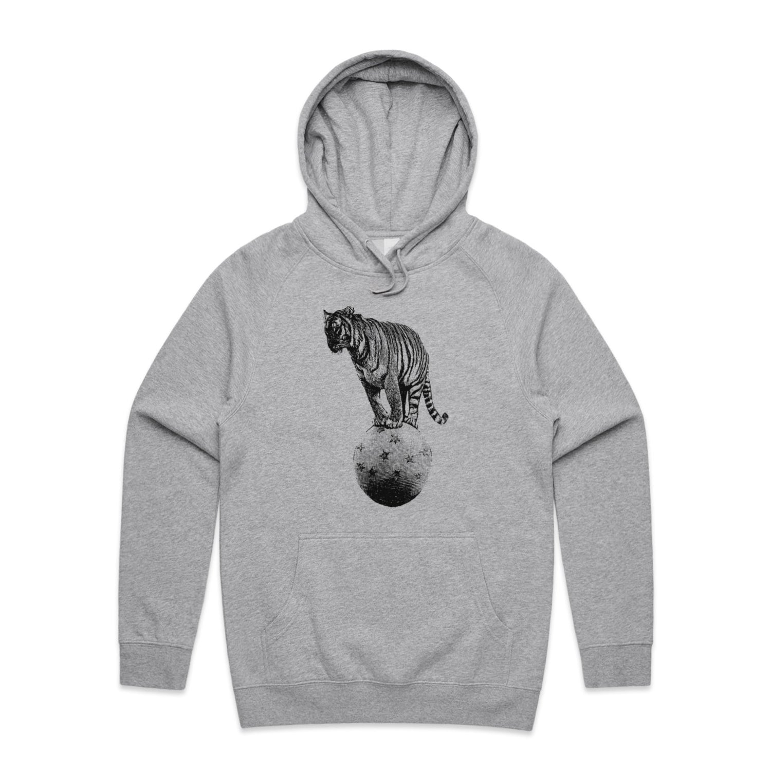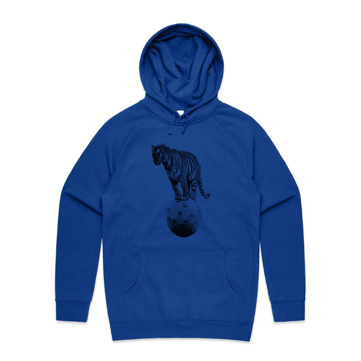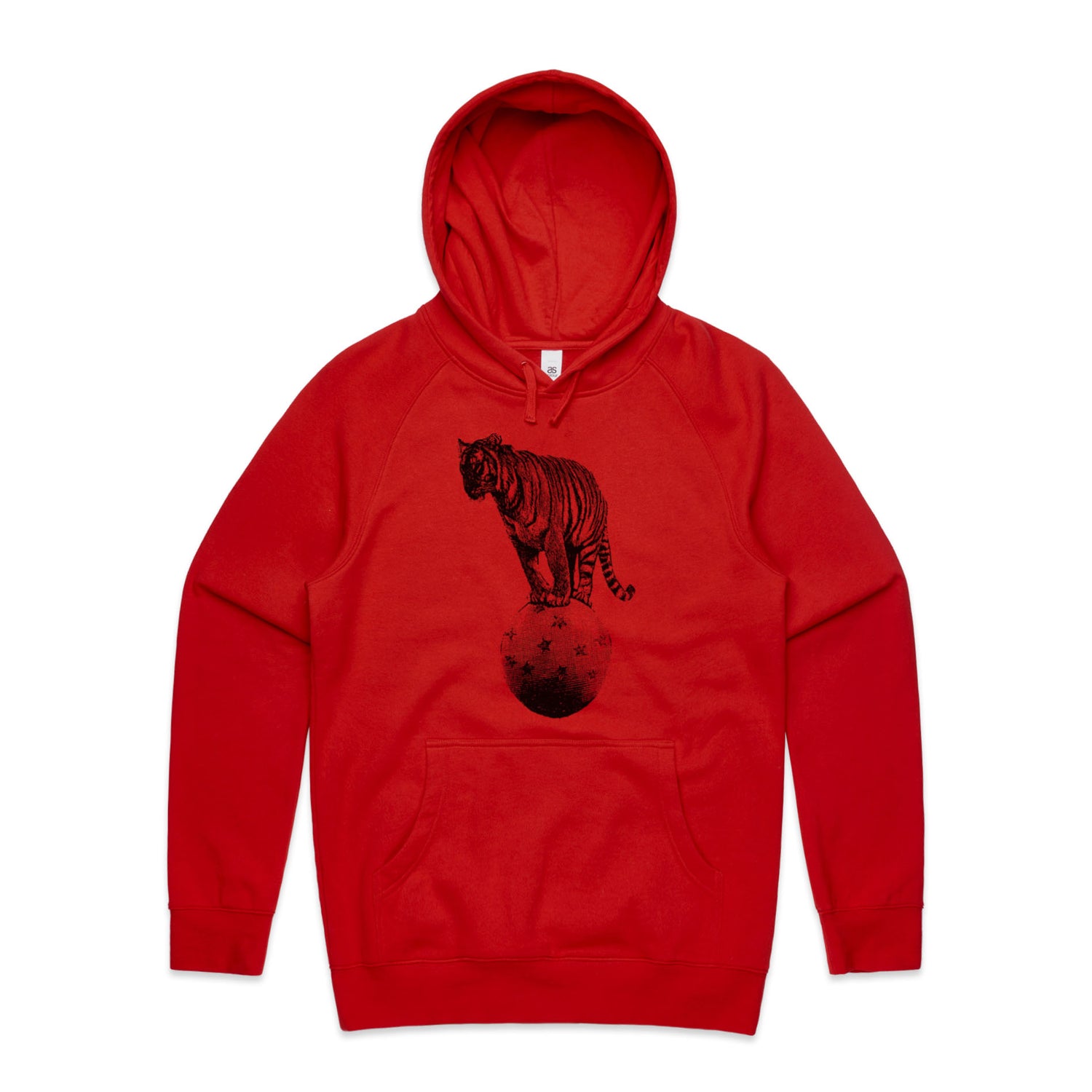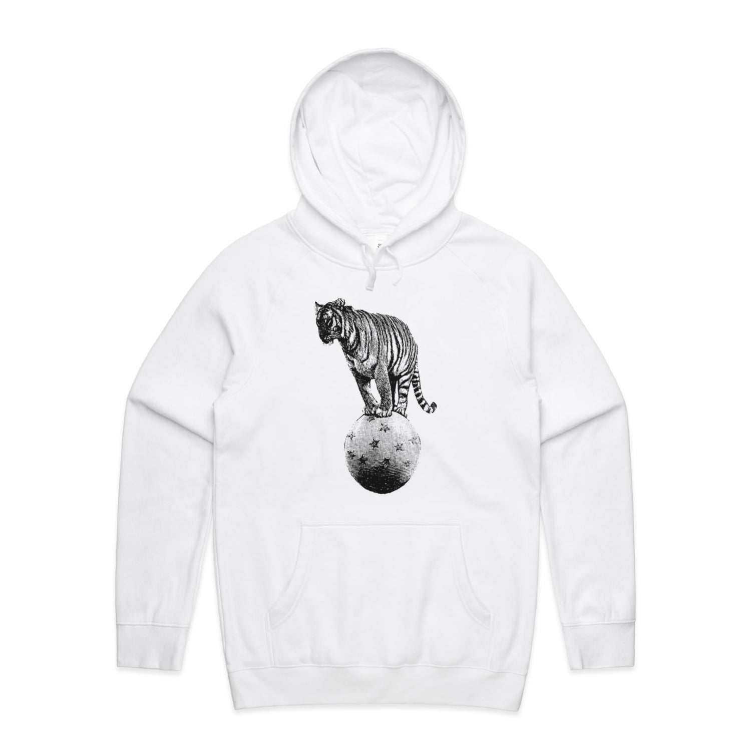 The Hoodies Circus Tiger – Men's Hooded Sweatshirt is a high-quality men's hooded sweatshirt, printed with black ink on the trusted AS Colour Supply Hood 5101. With a regular fit and mid-weight feel, it's crafted from a premium blend of 80% cotton and 20% polyester anti-pill fleece, making it a durable and comfortable staple for any wardrobe. The pullover design features raglan sleeves, a lined hood with tonal drawcord, ribbed sleeve cuffs, and a roomy kangaroo pocket — all designed to keep you warm while looking effortlessly sharp.