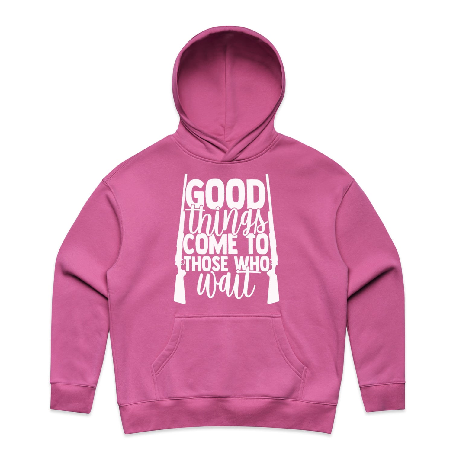 Get ready to rock your chill vibes with our Good Things Wait – Women's Hooded Sweatshirt in crisp white! Whether you're kicking back after a long day or heading out on an adventure, this hoodie is your new best mate. Designed with laid-back coolness in mind, it's crafted from a super-comfy blend of cotton and recycled polyester. You can feel good about looking great, as every hoodie saves more than seven plastic bottles from winding up in landfill!