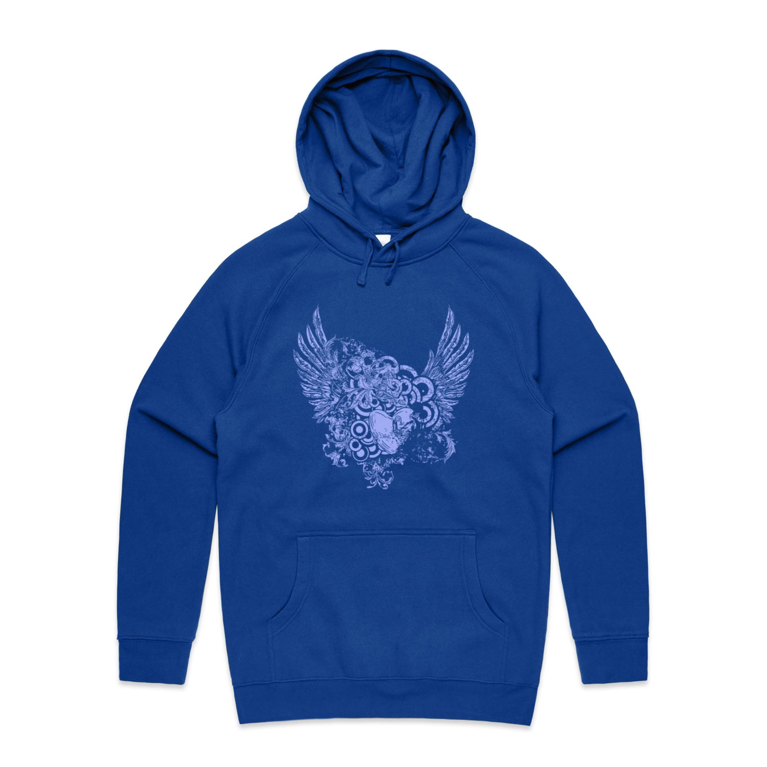 The Hoodies Graffiti Winged Heart – Men's Hooded Sweatshirt is a high-quality men's hooded sweatshirt, printed with blue ink on the trusted AS Colour Supply Hood 5101. With a regular fit and mid-weight feel, it's crafted from a premium blend of 80% cotton and 20% polyester anti-pill fleece, making it a durable and comfortable staple for any wardrobe. The pullover design features raglan sleeves, a lined hood with tonal drawcord, ribbed sleeve cuffs, and a roomy kangaroo pocket — all designed to keep you warm while looking effortlessly sharp.