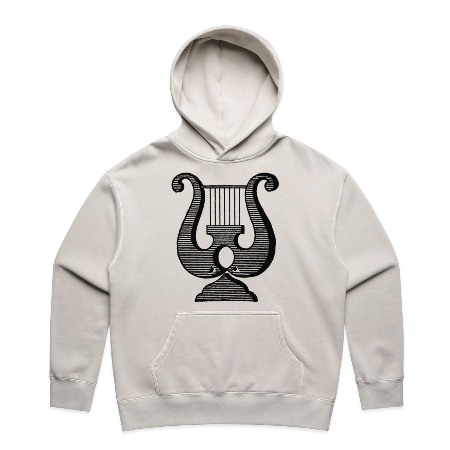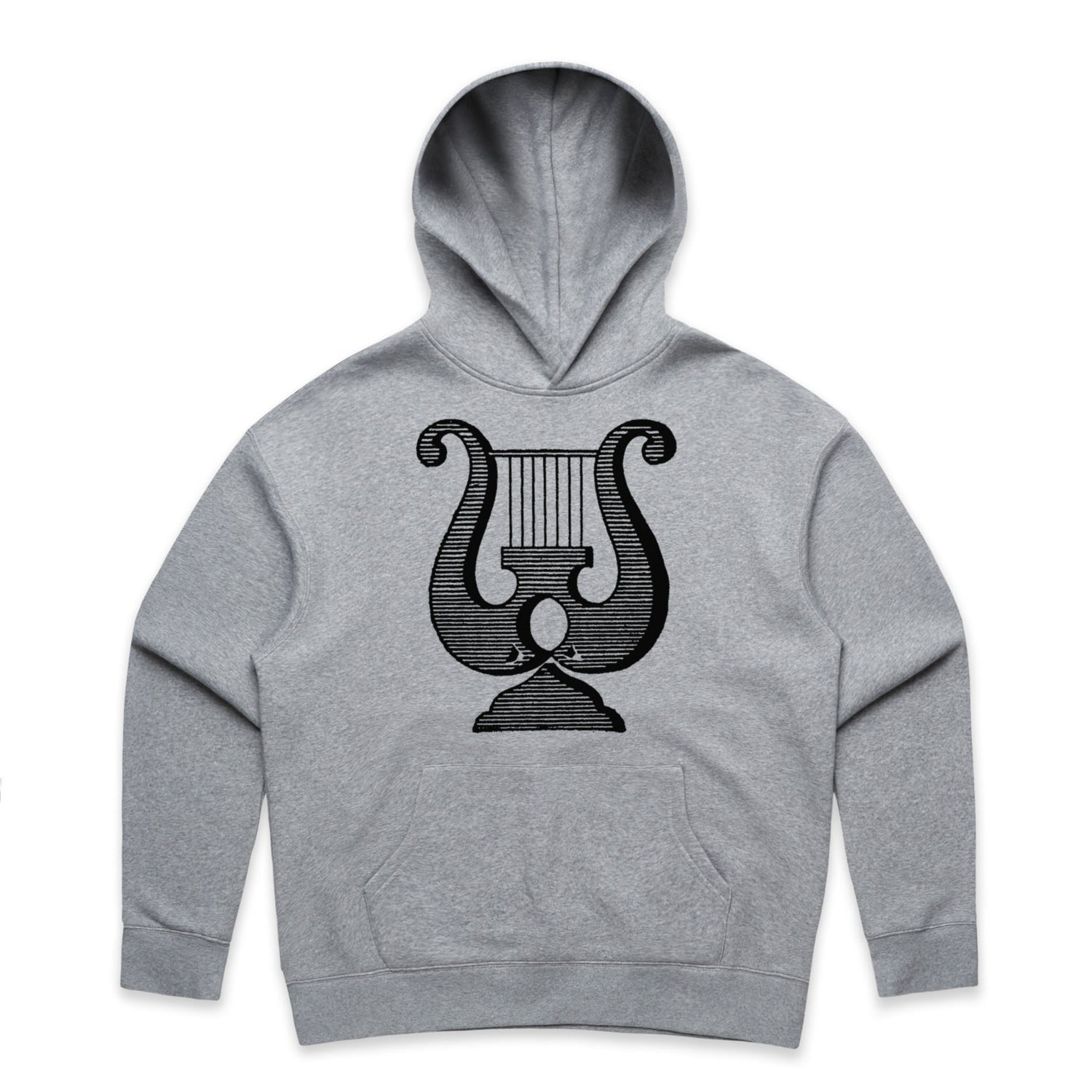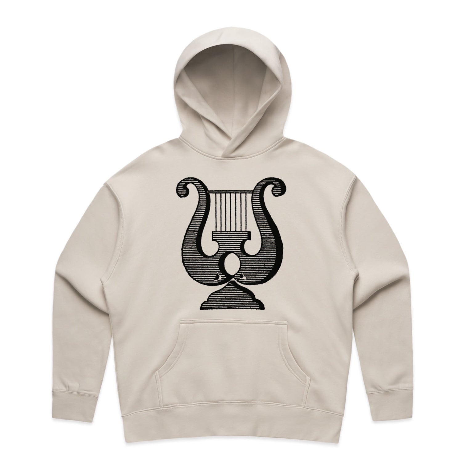 Sporting a pullover hood and drop shoulders, this beauty’s all about that laid-back cool. The kangaroo pocket is perfect for stashing your essentials (or just keeping your hands toasty), and the tear-out label means no more itchy tags ruining your groove. And that harp symbol in bold black? It’ll have you standing out in any crowd, like a rockstar in a sea of classical musicians.