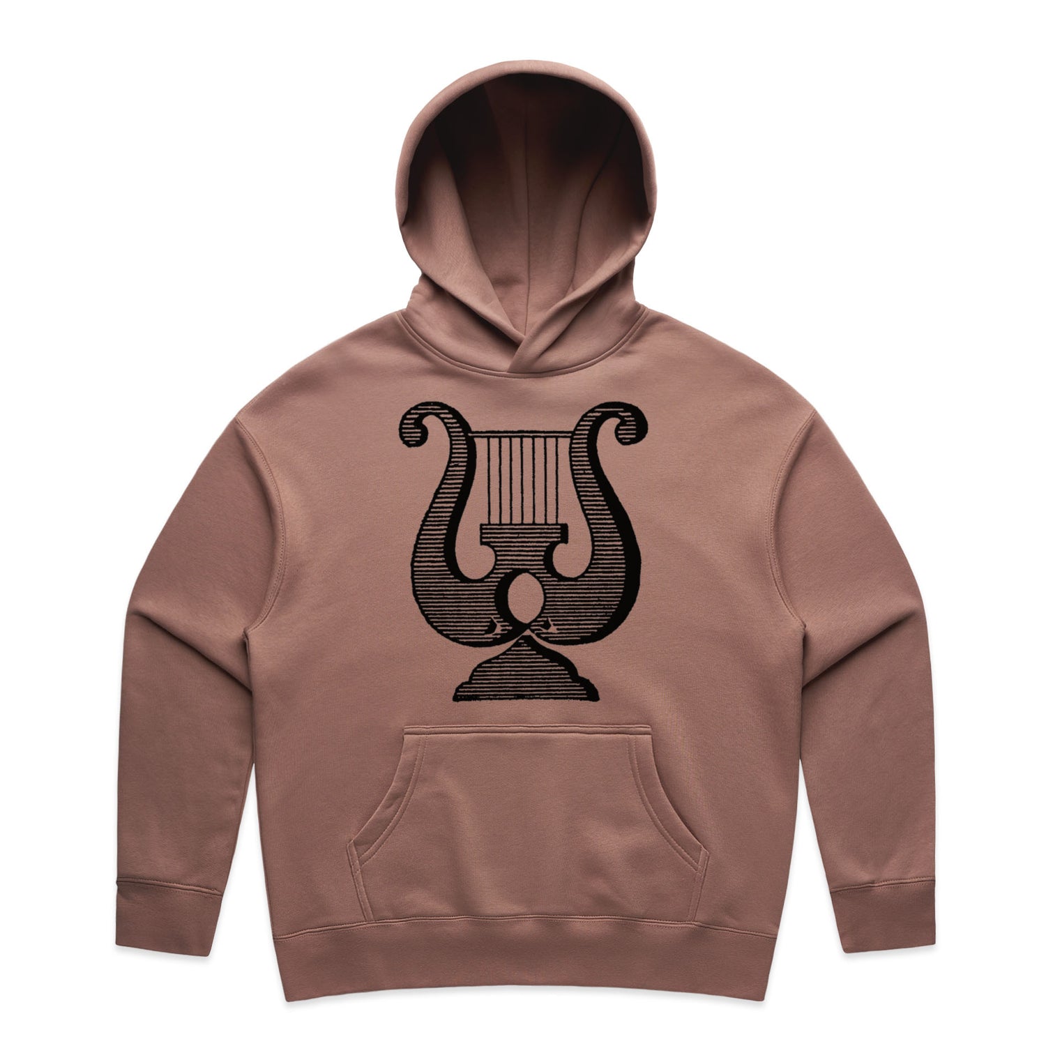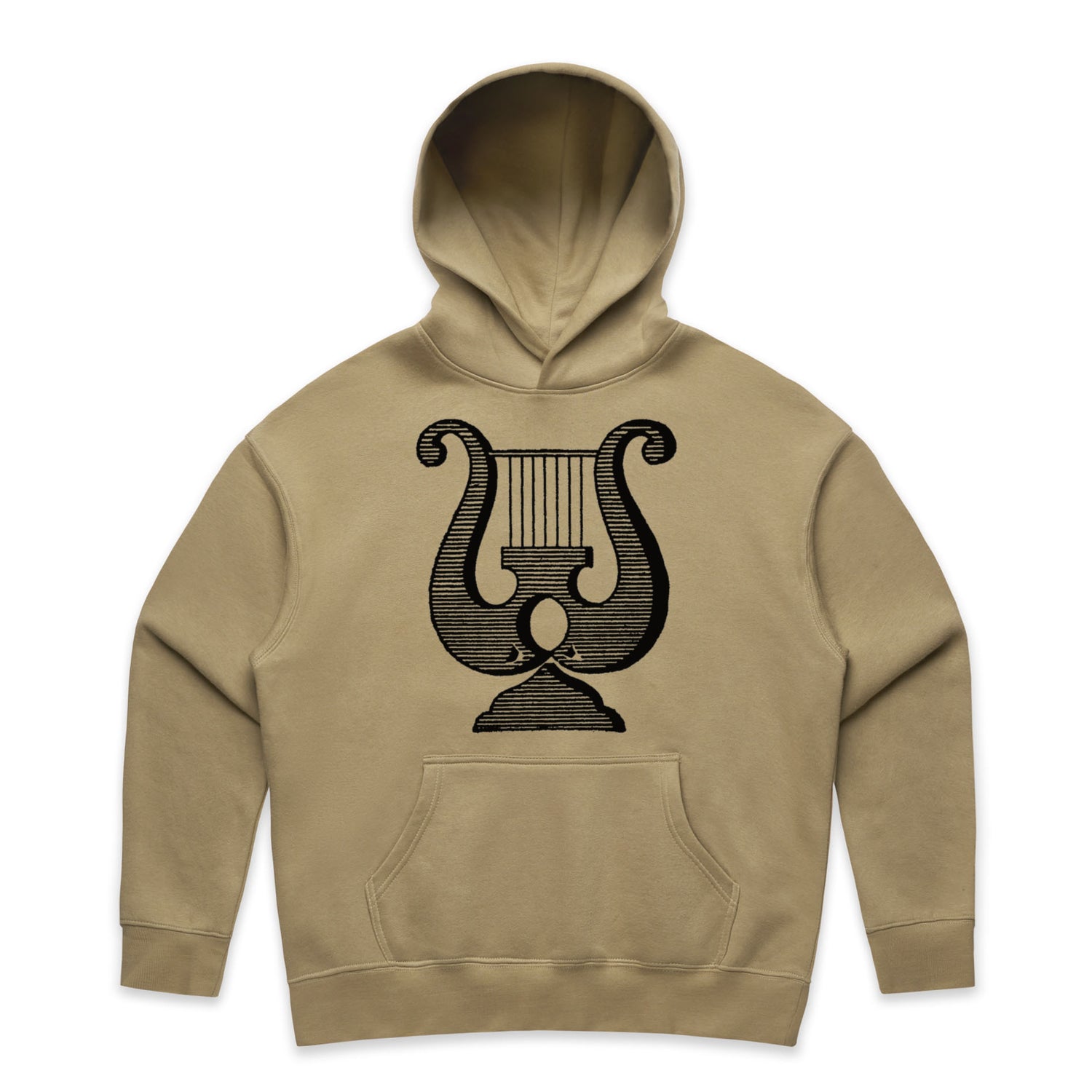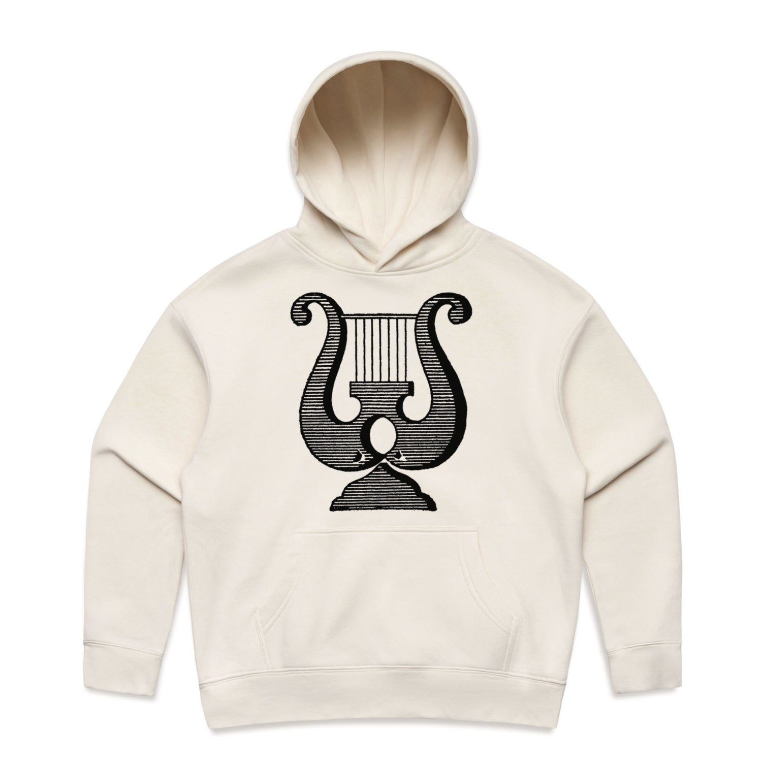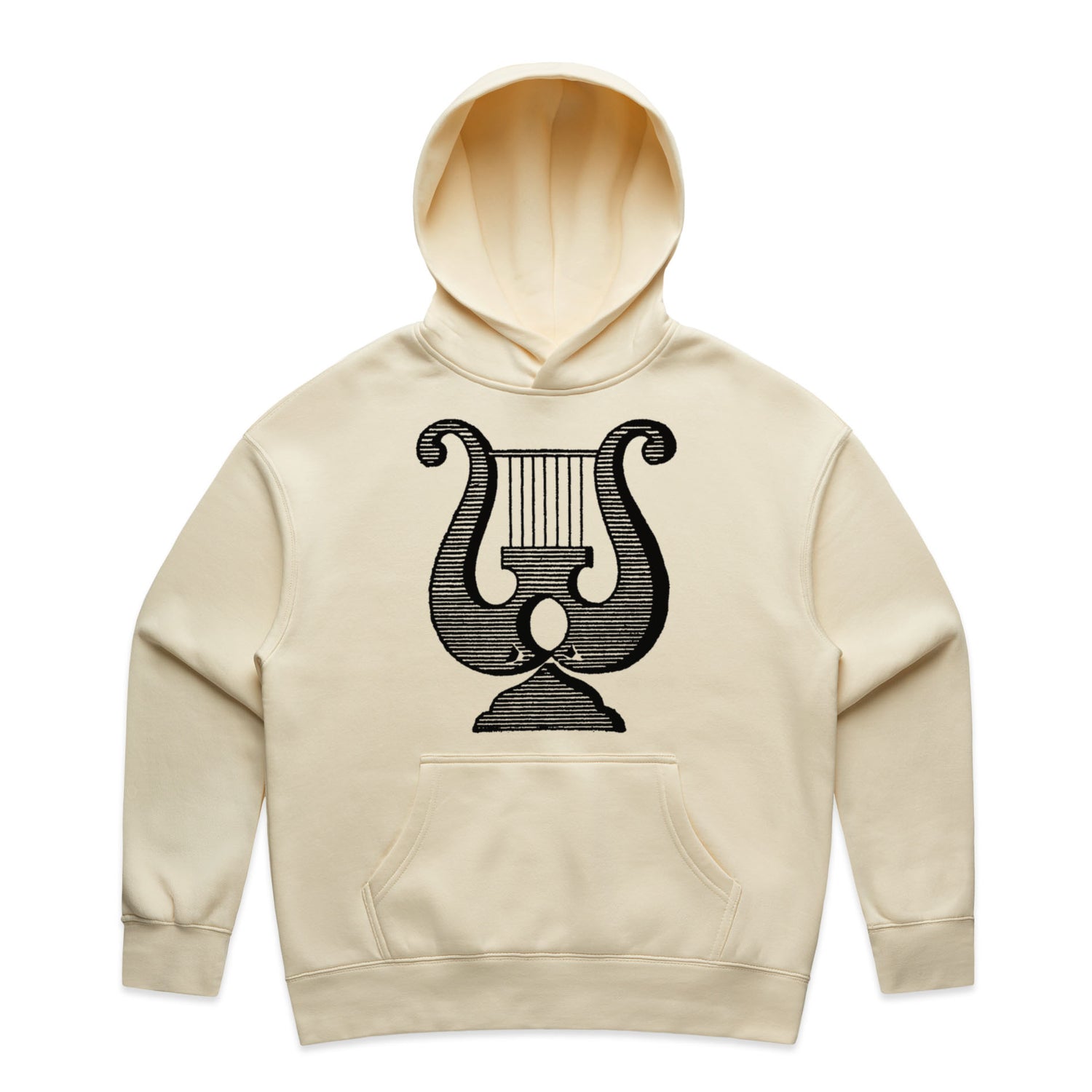 Sporting a pullover hood and drop shoulders, this beauty’s all about that laid-back cool. The kangaroo pocket is perfect for stashing your essentials (or just keeping your hands toasty), and the tear-out label means no more itchy tags ruining your groove. And that harp symbol in bold black? It’ll have you standing out in any crowd, like a rockstar in a sea of classical musicians.