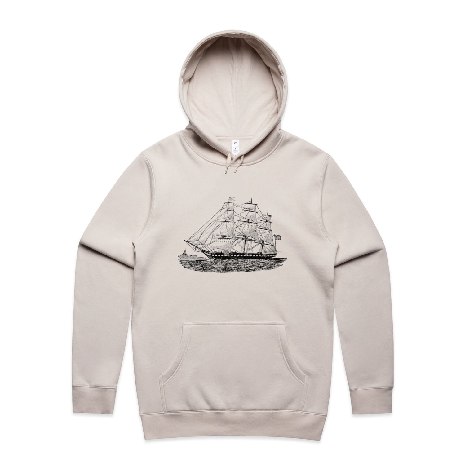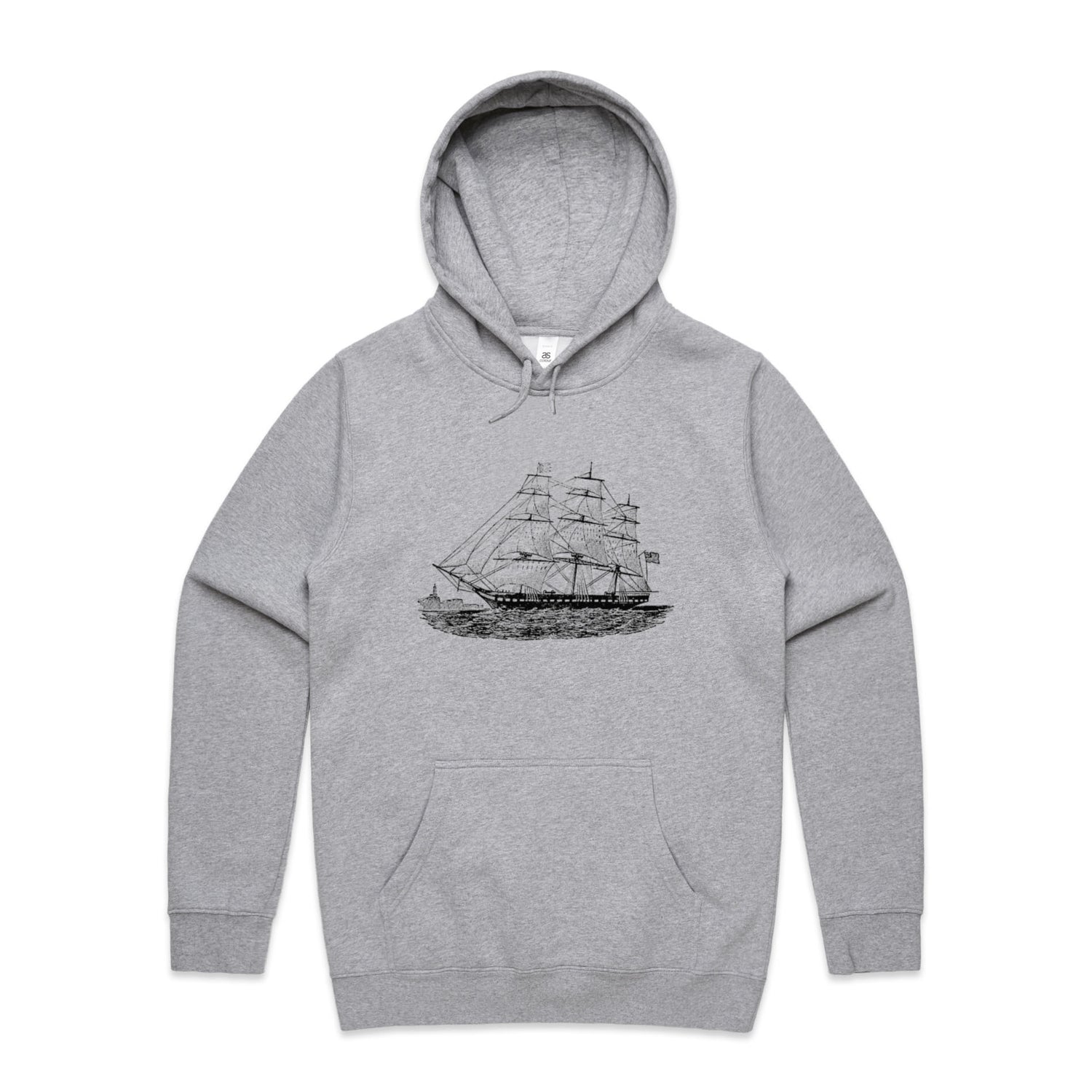 The ink colour on this masterpiece is sharp Black, boldly highlighting the historic ship print, ensuring you stand out in the sea of basic hoodies. Whether you're cruising around the city or just chilling with mates, this hoodie is designed for those who love a dash of nautical nostalgia and aren't afraid to rock it with edge and flair. Grab yours now and set sail in style!
