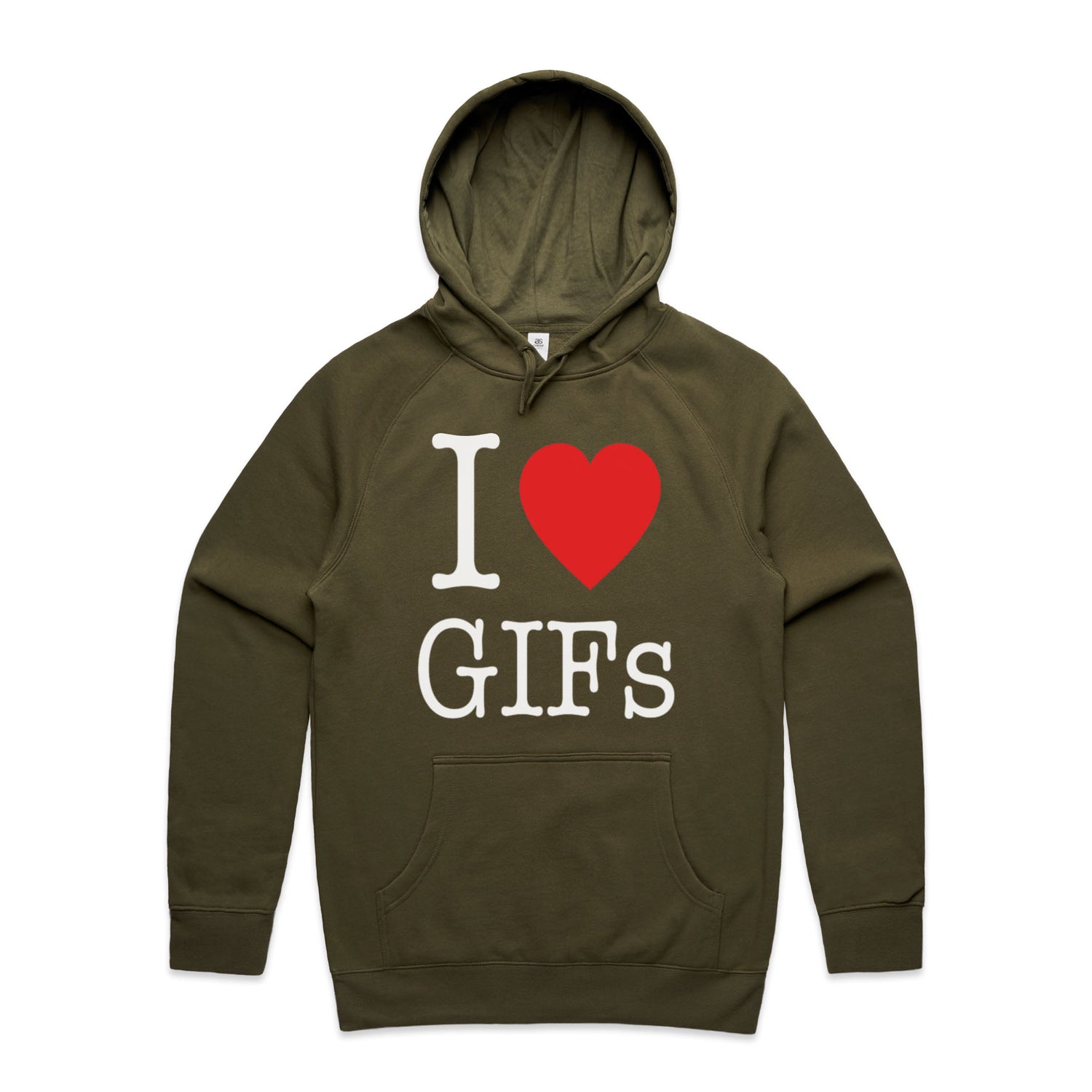 The Hoodies I Heart GIFs – Men's Hooded Sweatshirt is a high-quality men's hooded sweatshirt, printed with black ink on the trusted AS Colour Supply Hood 5101. With a regular fit and mid-weight feel, it's crafted from a premium blend of 80% cotton and 20% polyester anti-pill fleece, making it a durable and comfortable staple for any wardrobe. The pullover design features raglan sleeves, a lined hood with tonal drawcord, ribbed sleeve cuffs, and a roomy kangaroo pocket — all designed to keep you warm while looking effortlessly sharp.