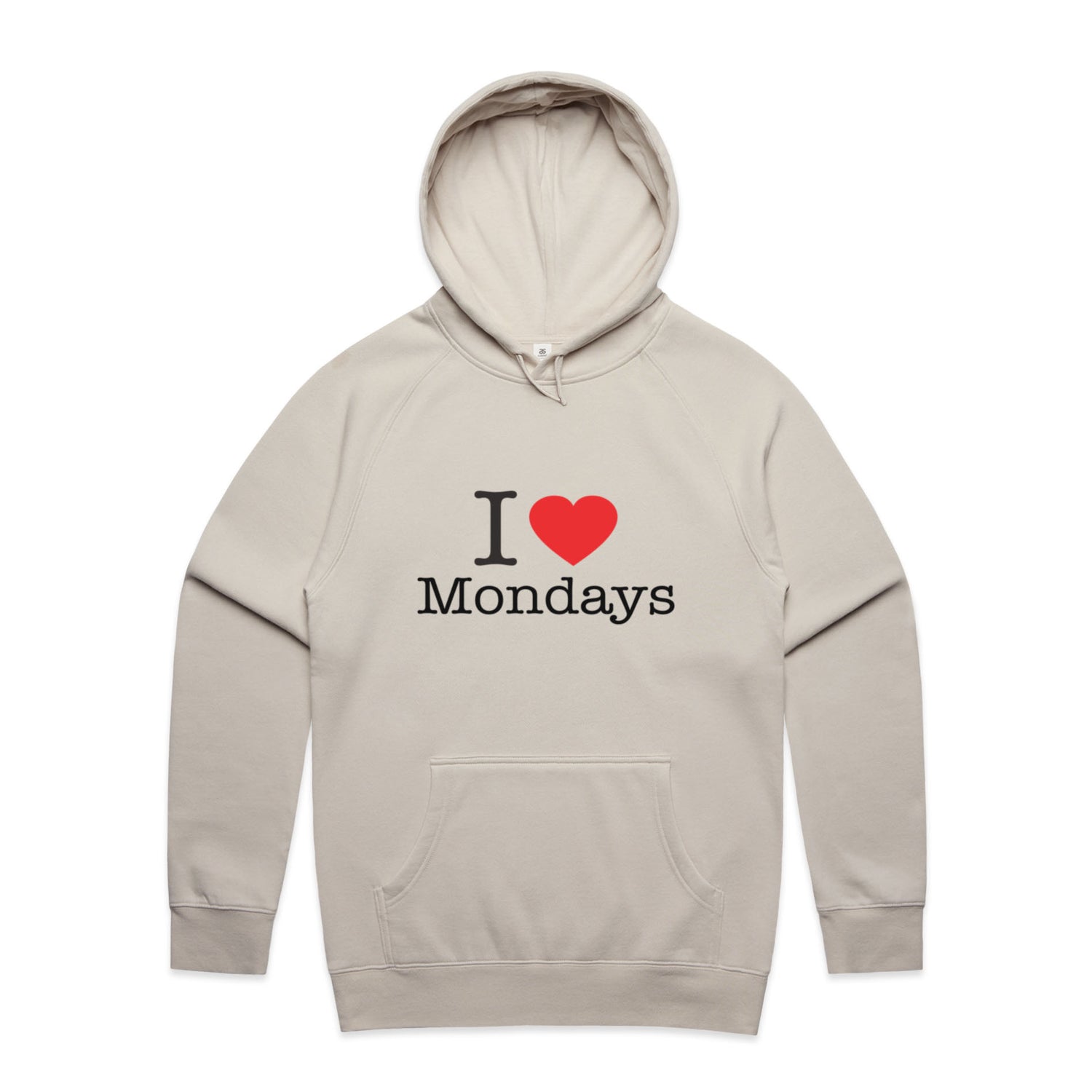 The Hoodies I Heart Mondays – Men's Hooded Sweatshirt is a high-quality men's hooded sweatshirt, printed with black ink on the trusted AS Colour Supply Hood 5101. With a regular fit and mid-weight feel, it's crafted from a premium blend of 80% cotton and 20% polyester anti-pill fleece, making it a durable and comfortable staple for any wardrobe. The pullover design features raglan sleeves, a lined hood with tonal drawcord, ribbed sleeve cuffs, and a roomy kangaroo pocket — all designed to keep you warm while looking effortlessly sharp.