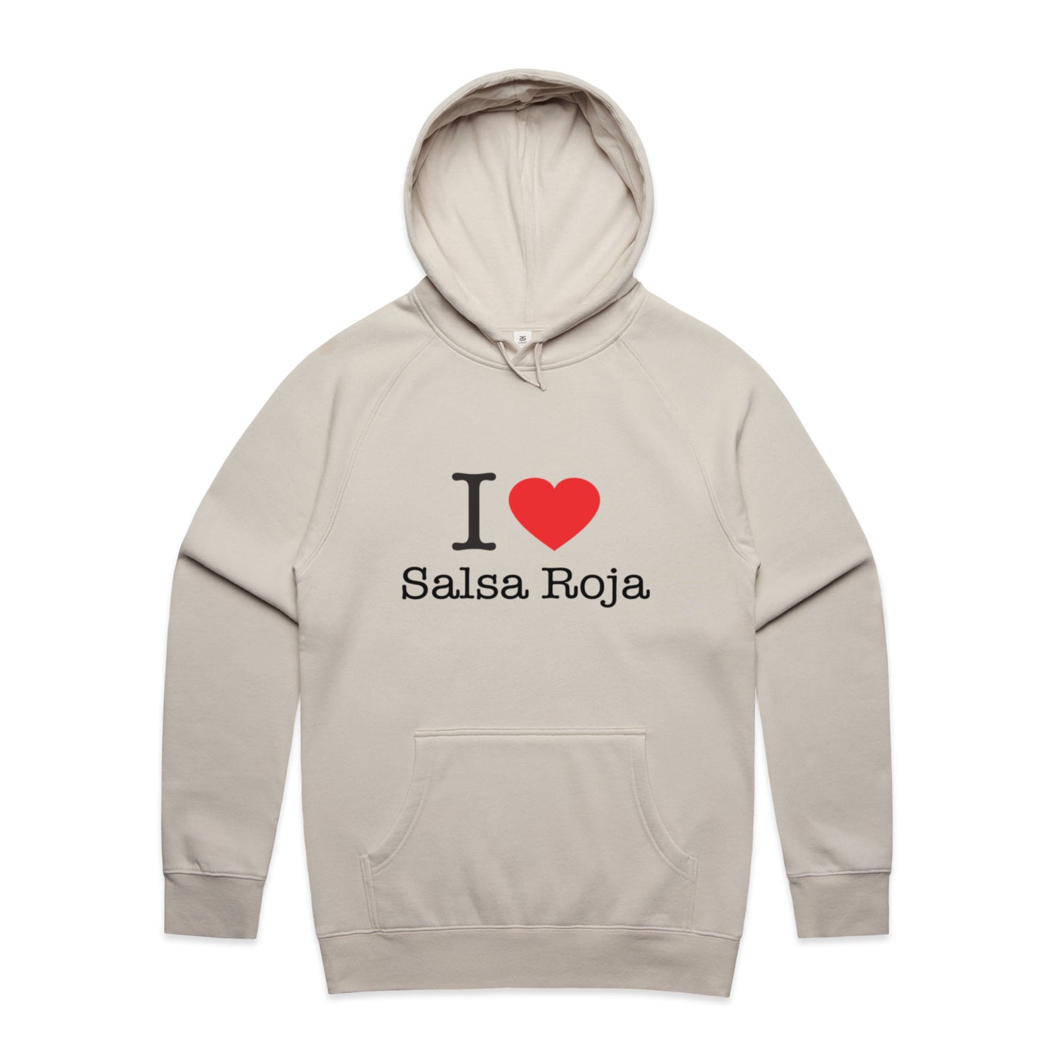 The Hoodies I Heart Salsa Roja – Men's Hooded Sweatshirt is a high-quality men's hooded sweatshirt, printed with black ink on the trusted AS Colour Supply Hood 5101. With a regular fit and mid-weight feel, it's crafted from a premium blend of 80% cotton and 20% polyester anti-pill fleece, making it a durable and comfortable staple for any wardrobe. The pullover design features raglan sleeves, a lined hood with tonal drawcord, ribbed sleeve cuffs, and a roomy kangaroo pocket — all designed to keep you warm while looking effortlessly sharp.