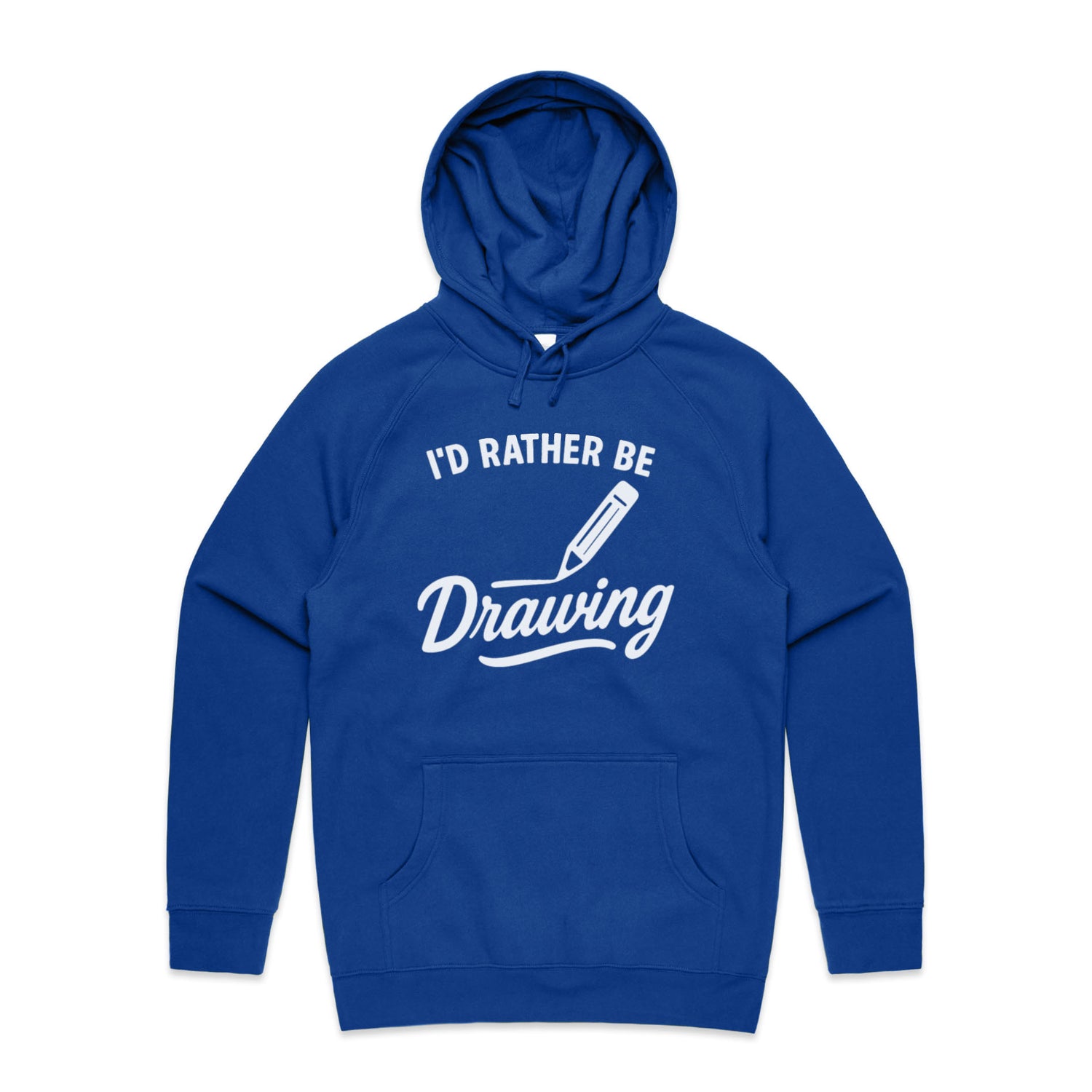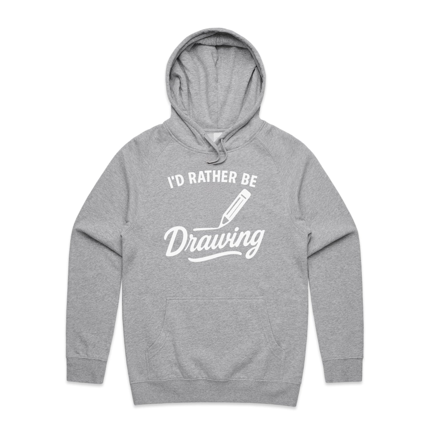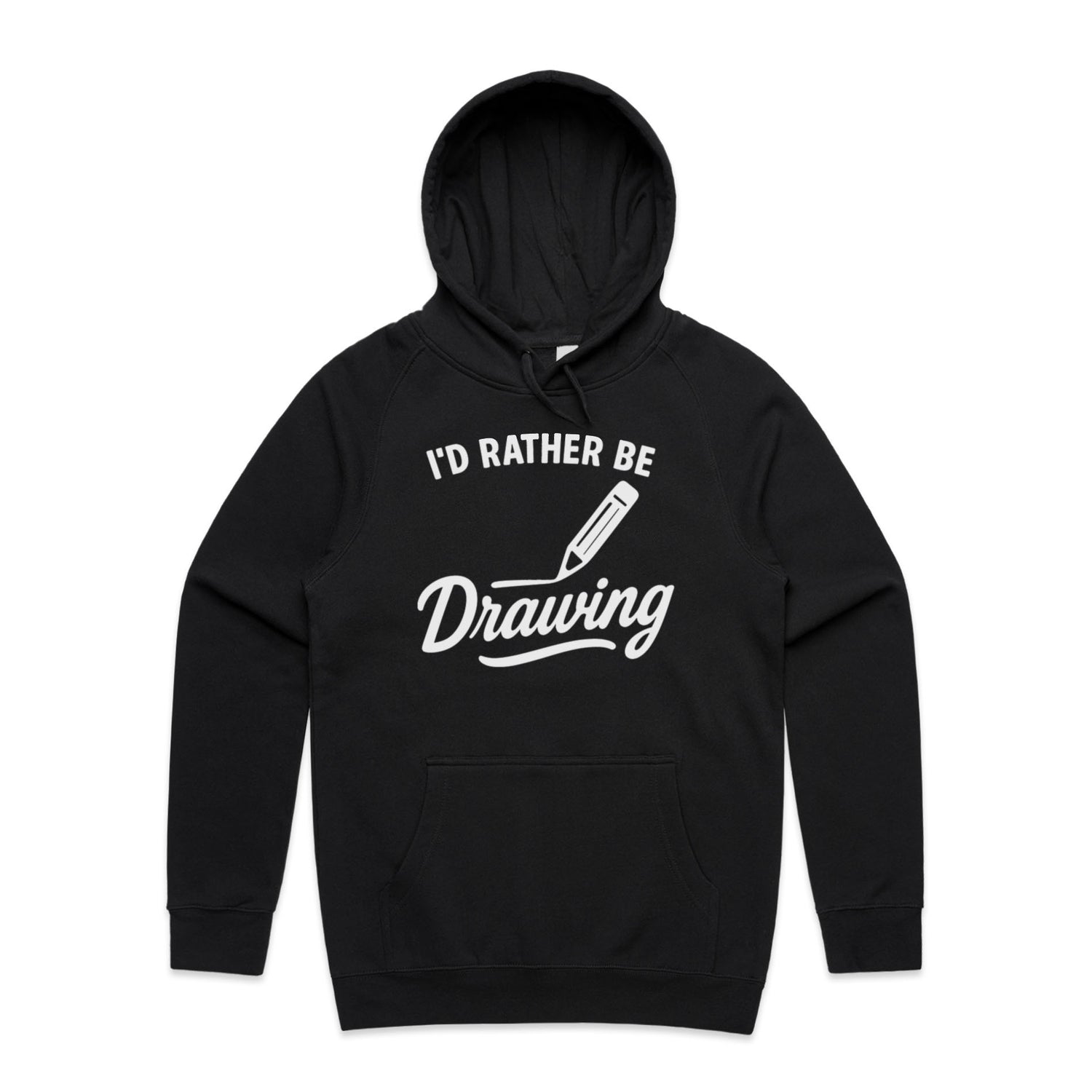 The Hoodies I'd Rather Be Drawing – Men's Hooded Sweatshirt is a high-quality men's hooded sweatshirt, printed with white ink on the trusted AS Colour Supply Hood 5101. With a regular fit and mid-weight feel, it's crafted from a premium blend of 80% cotton and 20% polyester anti-pill fleece, making it a durable and comfortable staple for any wardrobe. The pullover design features raglan sleeves, a lined hood with tonal drawcord, ribbed sleeve cuffs, and a roomy kangaroo pocket — all designed to keep you warm while looking effortlessly sharp.