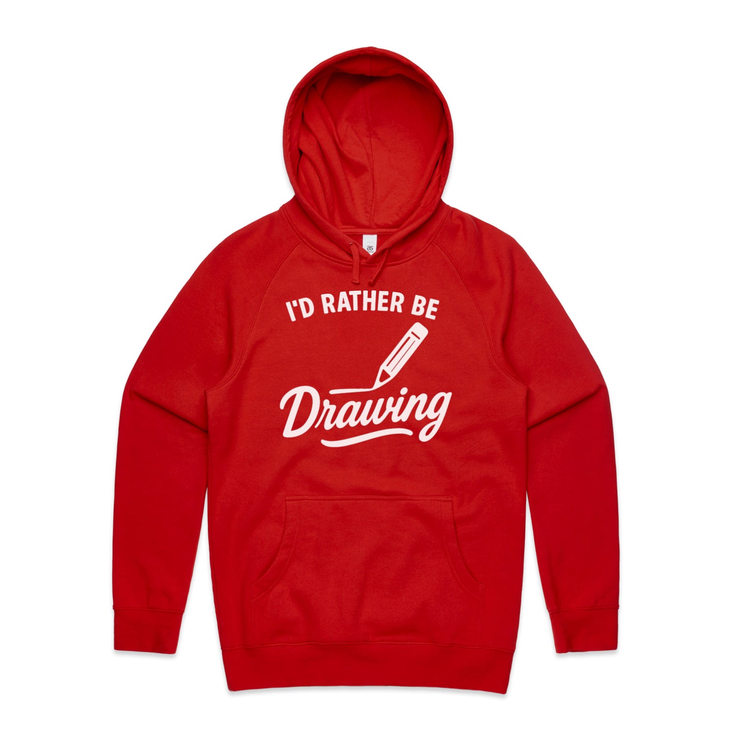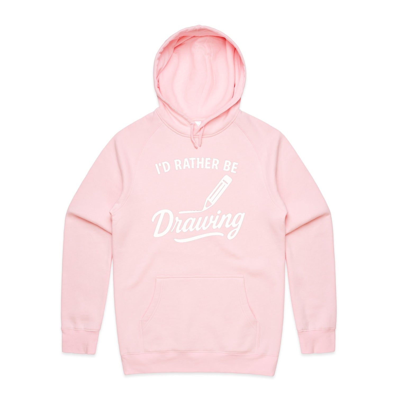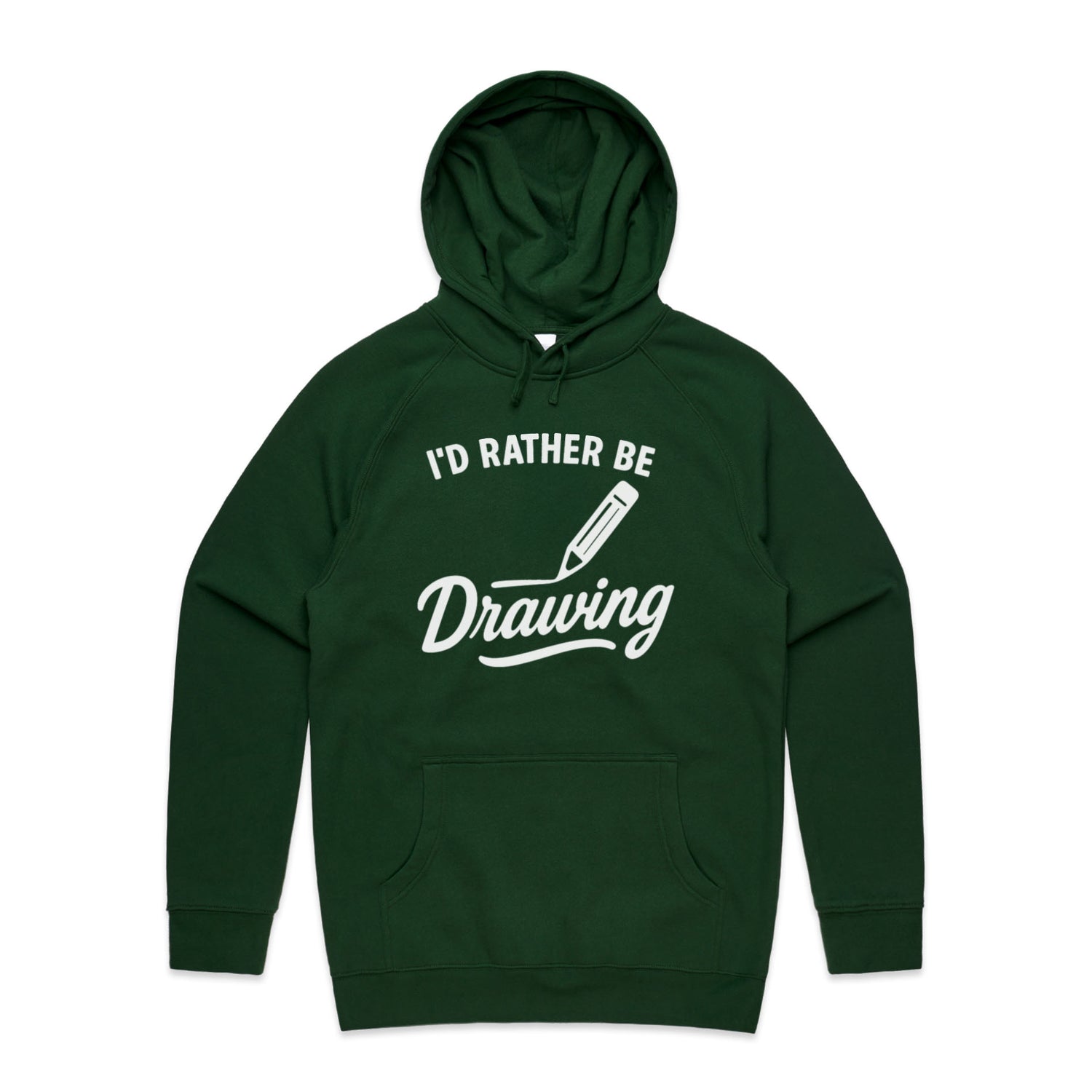 The Hoodies I'd Rather Be Drawing – Men's Hooded Sweatshirt is a high-quality men's hooded sweatshirt, printed with white ink on the trusted AS Colour Supply Hood 5101. With a regular fit and mid-weight feel, it's crafted from a premium blend of 80% cotton and 20% polyester anti-pill fleece, making it a durable and comfortable staple for any wardrobe. The pullover design features raglan sleeves, a lined hood with tonal drawcord, ribbed sleeve cuffs, and a roomy kangaroo pocket — all designed to keep you warm while looking effortlessly sharp.