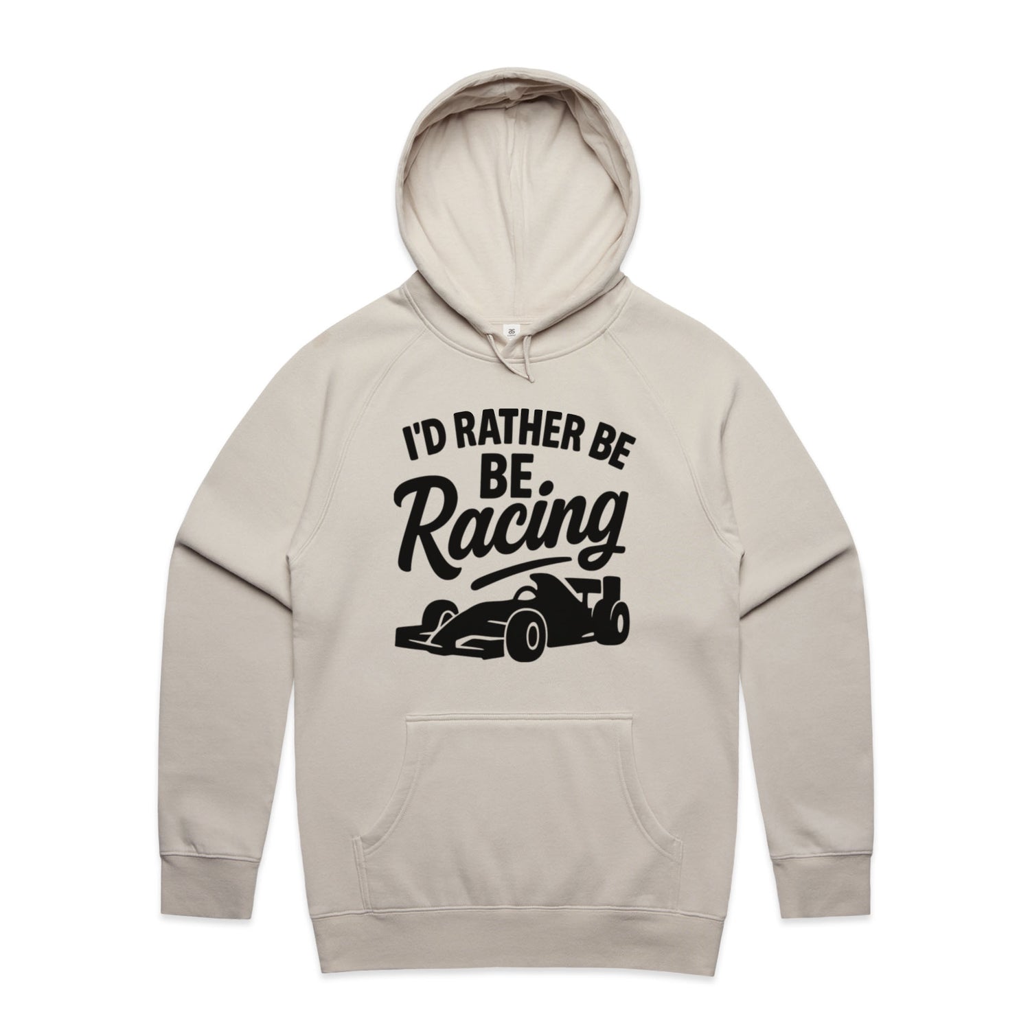 The Hoodies I'd Rather Be Racing – Men's Hooded Sweatshirt is a high-quality men's hooded sweatshirt, printed with black ink on the trusted AS Colour Supply Hood 5101. With a regular fit and mid-weight feel, it's crafted from a premium blend of 80% cotton and 20% polyester anti-pill fleece, making it a durable and comfortable staple for any wardrobe. The pullover design features raglan sleeves, a lined hood with tonal drawcord, ribbed sleeve cuffs, and a roomy kangaroo pocket — all designed to keep you warm while looking effortlessly sharp.