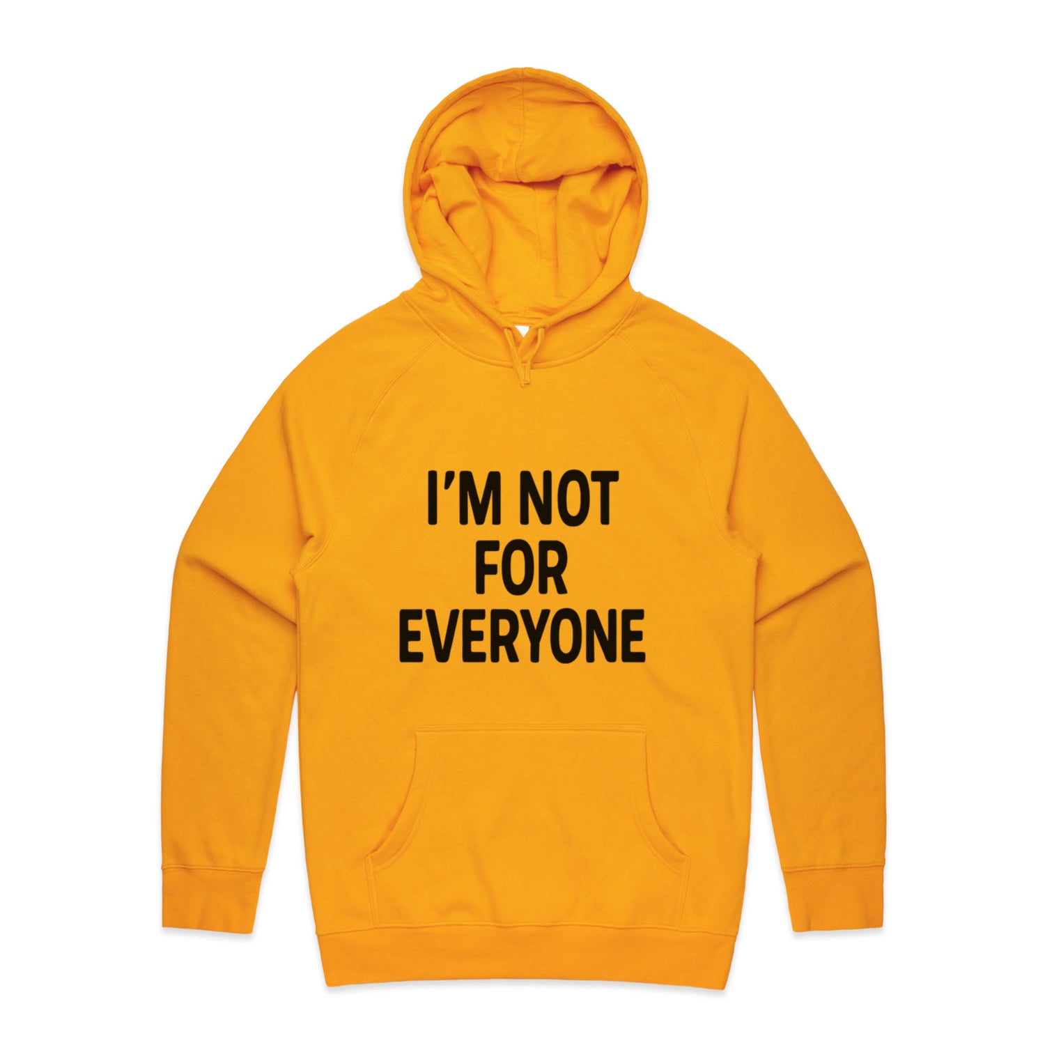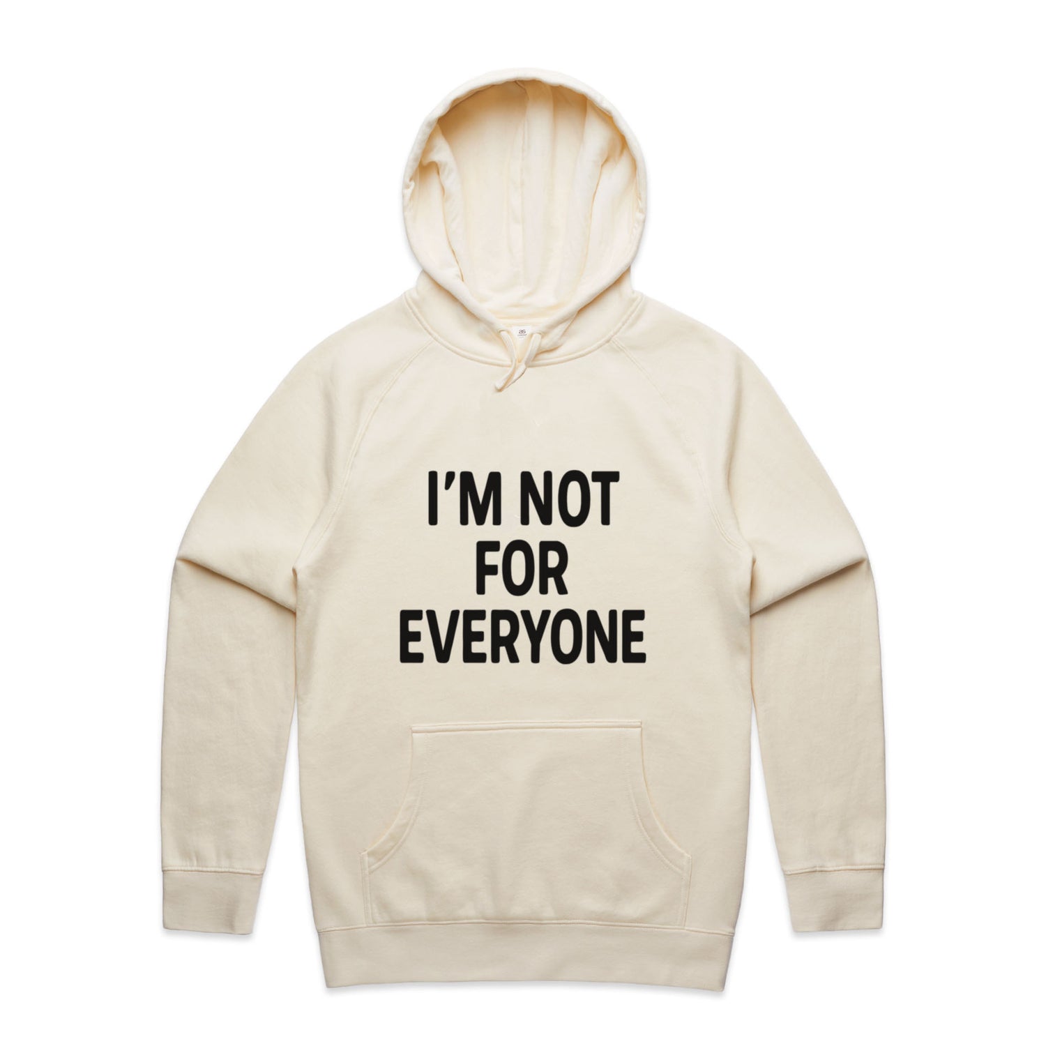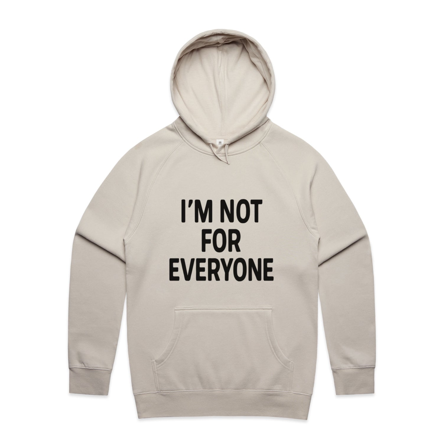 The Hoodies I'm Not for Everyone – Men's Hooded Sweatshirt is a high-quality men's hooded sweatshirt, printed with black ink on the trusted AS Colour Supply Hood 5101. With a regular fit and mid-weight feel, it's crafted from a premium blend of 80% cotton and 20% polyester anti-pill fleece, making it a durable and comfortable staple for any wardrobe. The pullover design features raglan sleeves, a lined hood with tonal drawcord, ribbed sleeve cuffs, and a roomy kangaroo pocket — all designed to keep you warm while looking effortlessly sharp.