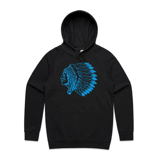 The Hoodies Indian Chief – Men's Hooded Sweatshirt is a high-quality men's hooded sweatshirt, printed with blue ink on the trusted AS Colour Supply Hood 5101. With a regular fit and mid-weight feel, it's crafted from a premium blend of 80% cotton and 20% polyester anti-pill fleece, making it a durable and comfortable staple for any wardrobe. The pullover design features raglan sleeves, a lined hood with tonal drawcord, ribbed sleeve cuffs, and a roomy kangaroo pocket — all designed to keep you warm while looking effortlessly sharp.