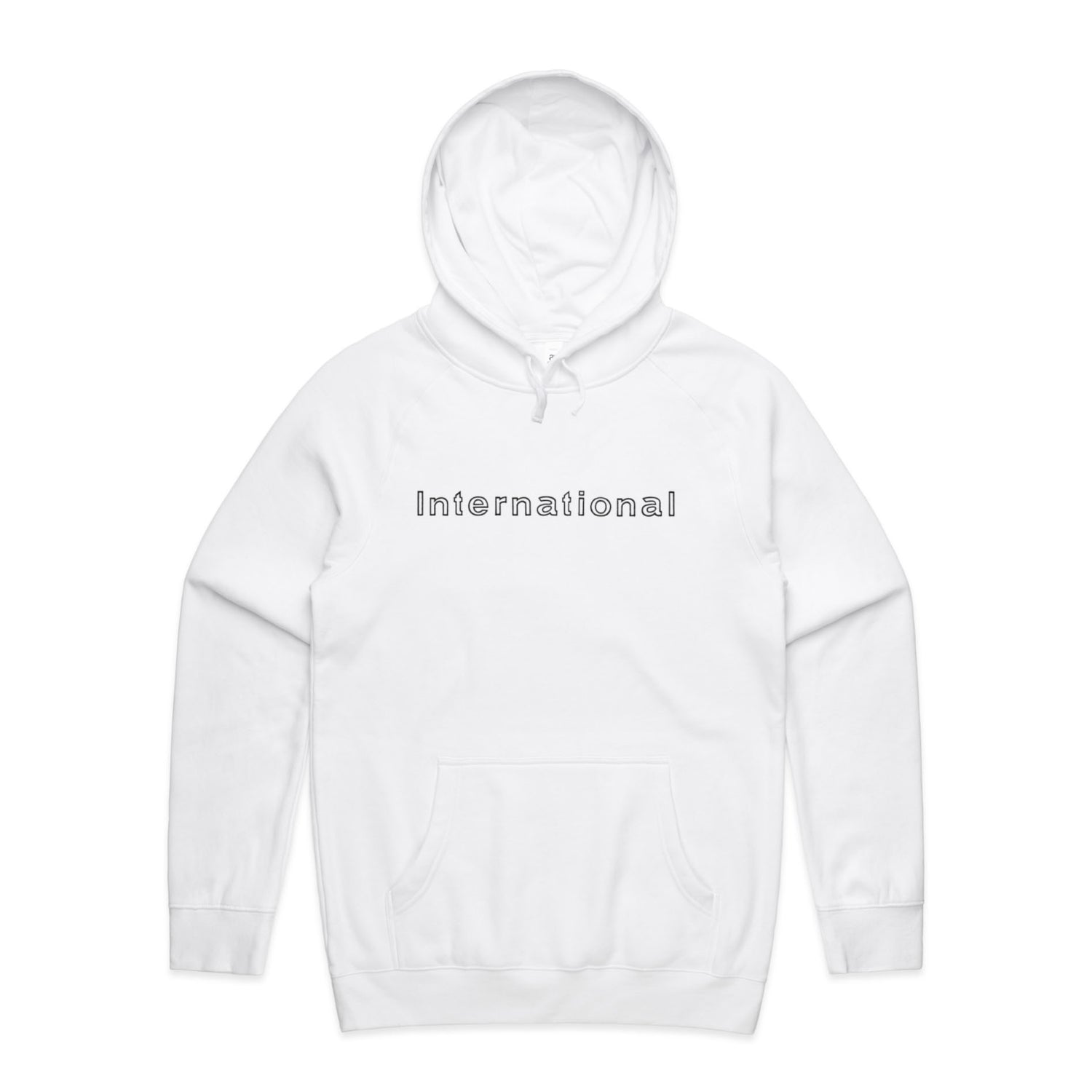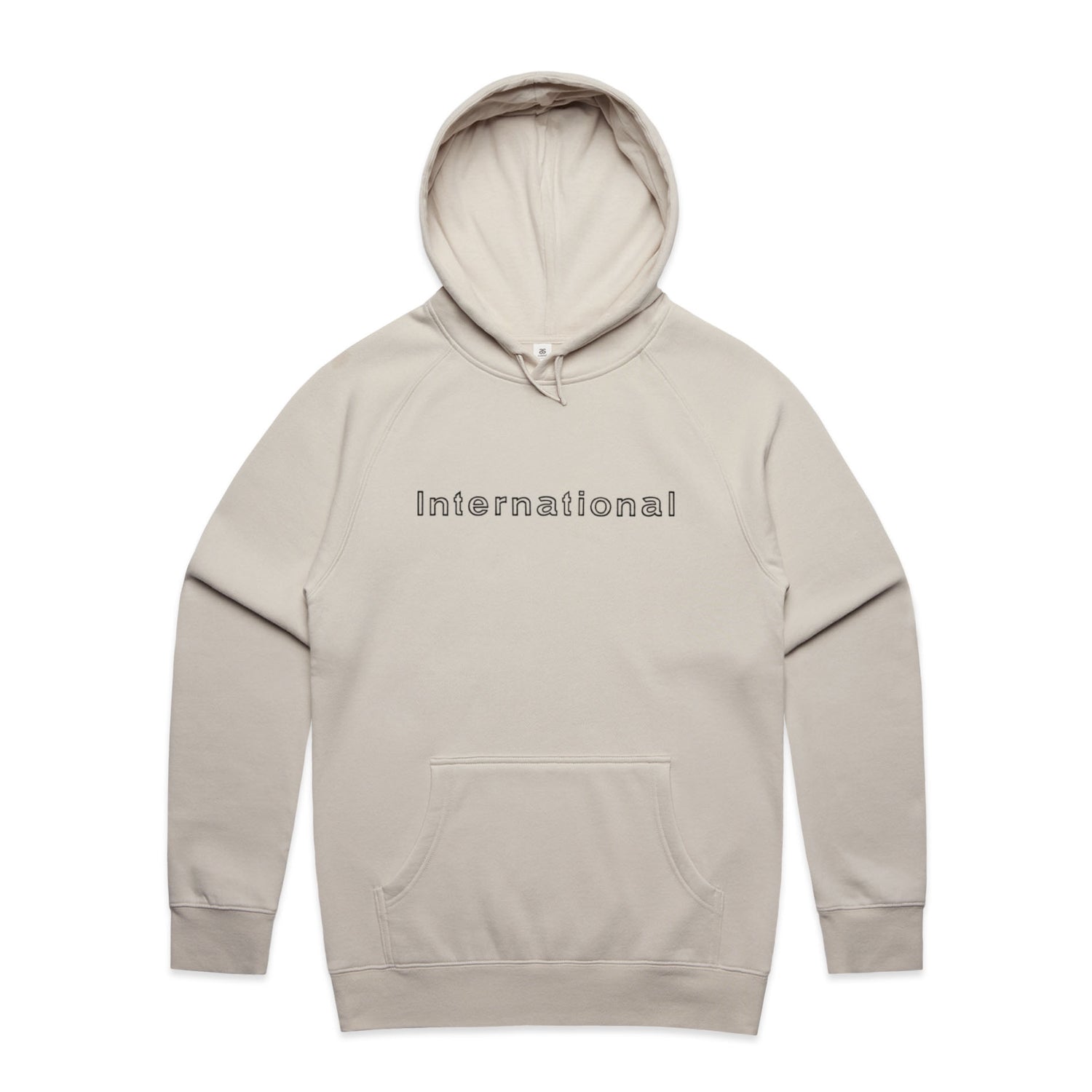 The Hoodies International – Men's Hooded Sweatshirt is a high-quality men's hooded sweatshirt, printed with black ink on the trusted AS Colour Supply Hood 5101. With a regular fit and mid-weight feel, it's crafted from a premium blend of 80% cotton and 20% polyester anti-pill fleece, making it a durable and comfortable staple for any wardrobe. The pullover design features raglan sleeves, a lined hood with tonal drawcord, ribbed sleeve cuffs, and a roomy kangaroo pocket — all designed to keep you warm while looking effortlessly sharp.